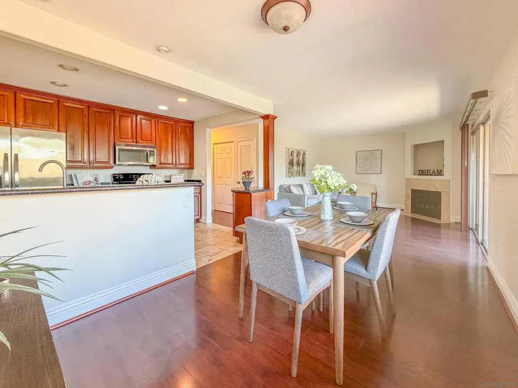Beautiful Move-In-Ready Home with Views! This lovely 2-bedroom, 2-bathroom home has great views and is located in the popular Villa Tuscana community. Built in 2000, this upper-level unit gets lots of natural light and fresh air. Both bedrooms are on the quiet side of the building, offering extra peace and privacy. The kitchen features granite countertops and stainless steel appliances and opens to a bright living room with a cozy fireplace. Enjoy the large patio with open views and a nice breeze - perfect for relaxing or entertaining. Great location close to UCSD, the trolley, freeways, shopping, the beach, and more!