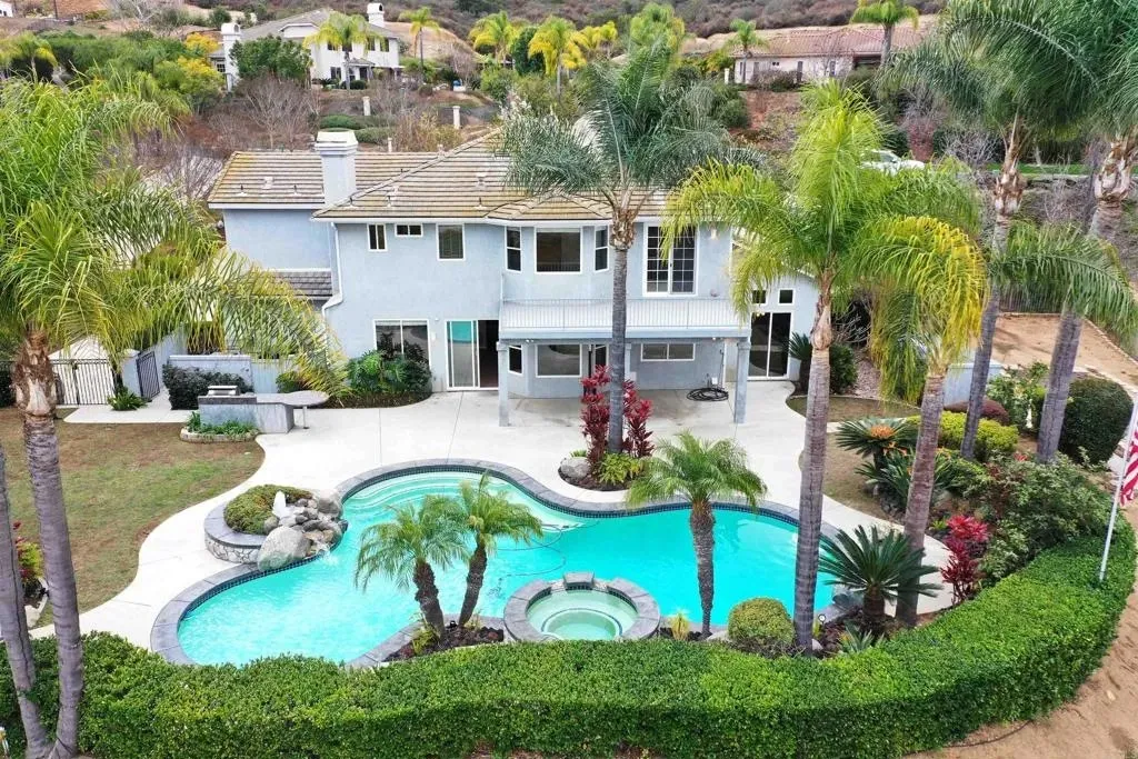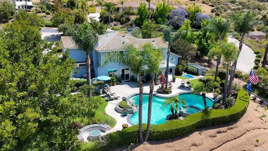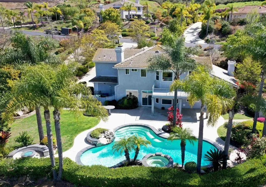 3219 Greystone Drive is a single owner custom built home that lies within the prestigious gates of Steele Canyon Estates. This stunning residence sits on one of the most usable lots in the community: 1.05 acres of endless potential. Whether you envision extending the driveway down to the rear of the property and building a guest house there, adding a sport court, or expanding your dream outdoor living space, this property offers room to grow in every sense. Step inside and enjoy elegant natural lighting in a space designed for comfort and entertaining. The home features soaring ceilings, an expansive layout, and four spacious bedrooms including a downstairs den (perfect as a private home office or guest room). A huge upstairs bonus loft adds flexibility for a game area, media spot, or additional living area. The primary retreat is a showstopper with a large view balcony, dual-sided fireplace, and a luxurious ensuite bath with soaking tub and walk-in shower the perfect place to unwind as the sun sets over Rancho San Diego. The heart of the home flows seamlessly through the kitchen, living, and dining areas, ideal for family living or hosting friends. Tasteful finishes, custom cabinetry, and a refined touch throughout. Step outside to your own private oasis: a custom-designed pool with waterfall and spa, mature landscaping, large patios for outdoor dining, and unmatched privacy thanks to the generous lot and thoughtful placement. Its a true entertainers dream whether youre throwing a summer pool party or enjoying a peaceful evening under the stars. Additional highlights include a three-car epoxy-finished garage. This is your opportunity to own a one-of-a-kind estate in one of Jamuls most sought-after neighborhoods, with room to personalize, expand, and build equity. Dont miss this rare chance to experience estate living with room to grow.