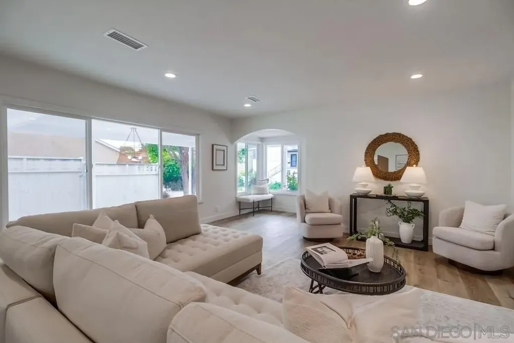 NEWLY REMODELED & REDESIGNED! Discover unparalleled charm in this breathtaking 4-bedroom, 2-bathroom masterpiece, complete with a 1-bed, 1-bath Jr ADU, nestled just steps from the iconic La Playa Trail and the serene San Diego Bay. This gem has sophisticated modern upgrades, offering a move-in-ready haven that's as functional as it is stunning. Step into a gourmet chef's kitchen that's sure to inspire culinary creativity, boasting a premium Kostch 5-burner range with broiler, sleek Hisense fridge, and whisper-quiet LG dishwasher. The kitchen dazzles with white oak cabinetry, luminous quartz countertops, a stylish tile backsplash, a cozy breakfast nook, and an expansive pantry for all your storage needs. Retreat to the opulent master suite, where a marble fireplace sets a warm, inviting tone. Unwind in the spa-like bathroom featuring dual shower heads, a double vanity, and elegant white oak cabinetry, complemented by a spacious walk-in closet and sleek tile flooring. Every amenity in this home exudes quality, from a new roof in the main home, electric AC and energy-efficient vinyl dual-pane windows to modernized plumbing and electrical, chic designer light fixtures, and graceful decorative arches that add architectural flair. The open-concept layout flows effortlessly, with generous closets in all bedrooms and a dedicated laundry room for ultimate convenience. The attached Jr ADU is a modern gem of its own, featuring a contemporary kitchenette with white oak cabinets, quartz counters, a 4-burner stove, a fridge, and a mini-split AC/heating system for year-round comfort, plus a full bathroom perfect for guests, family, or rental potential. Outside, a 2-car garage with an attached workshop and ample parking, including a covered space for your RV or boat, ensures all your lifestyle needs are met. This Point Loma treasure is more than a home. It's a coastal lifestyle, blending beauty and comfort in an unbeatable location.