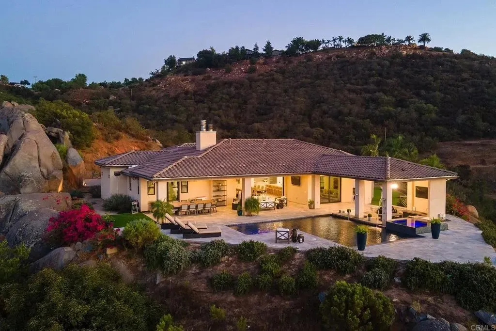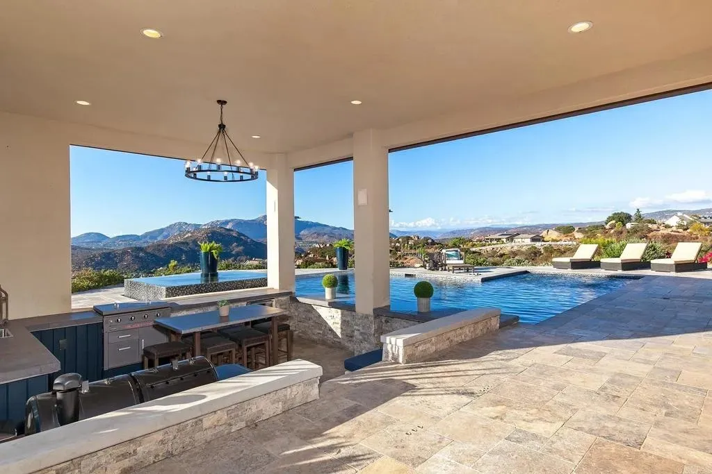 RESORT STYLE LIVING IN PRESTIGIOUS ALPINE RANCH ESTATES AND THIS SINGLE STORY 4 BEDROOM, 3.5 BATH HOME BUILT IN 2019 ON 4.11 ACRES IS ABSOLUTELY BEAUTIFUL AND FEATURES PANORAMIC VIEWS, AN OPEN FLOORPLAN, GORGEOUS KITCHEN WITH A HUGE CENTER ISLAND WITH BREAKFAST BAR, PANTRY, TONS OF CABINETS AND COUNTER SPACE, STAINLESS APPLIANCES, WATERFALL QUARTZ COUNTERS, FAMILY ROOM WITH FIREPLACE AND FLEETWOOD DOORS THAT SLIDE INTO THE WALL THAT CREATES AN INCREDIBLE OUTDOOR/INDOOR LIVING SPACE, LARGE GUEST BEDROOMS, HUGE PRIMARY BEDROOM WITH A FIREPLACE, WALK IN CLOSET WITH ORGANIZERS AND GYM AREA, LUXURY PRIMARY BATH WITH DUAL VANITY AND ONE OF THE LARGEST WALK-IN SHOWERS YOU WILL EVER SEE WITH A SOAKING TUB AND MULTIPLE RAIN SHOWERHEADS, OFF THE GRID LIVING WITH PAID FOR SOLAR, 3 TESLA BATTERIES, WELL WITH A 10,000 STORAGE TANK AND POOL SOLAR. RESORT STYLE POOL WITH WATER FALLS, BUBBLERS, BAJA SHELF, INFINITY EDGE JACUZZI AND IN POOL SEATING WITH SWIM UP BAR AREA, PROFESSIONALLY LANDSCAPED WITH PAVERS, TRAVERTINE DECKING AROUND THE POOL, APPROX 1600 SQ FT OF COVERED PATIO AREA, COOLER BUILT INTO THE DECK NEAR THE POOL, BUILT IN BBQ WITH BEVERAGE FRIDGE, SURROUND SOUND INSIDE AND OUT, LONG PRIVATE DRIVEWAY ADORNED BY HUGE NATURAL BOULDERS, 4 CAR GARAGE WITH DRIVE THROUGH, RV PARKING, LOADS OF PRIVACY, LOCATED ON A CUL DE SAC AND MUCH MORE