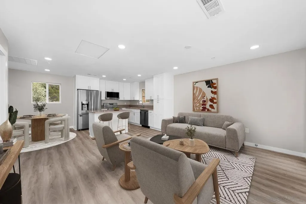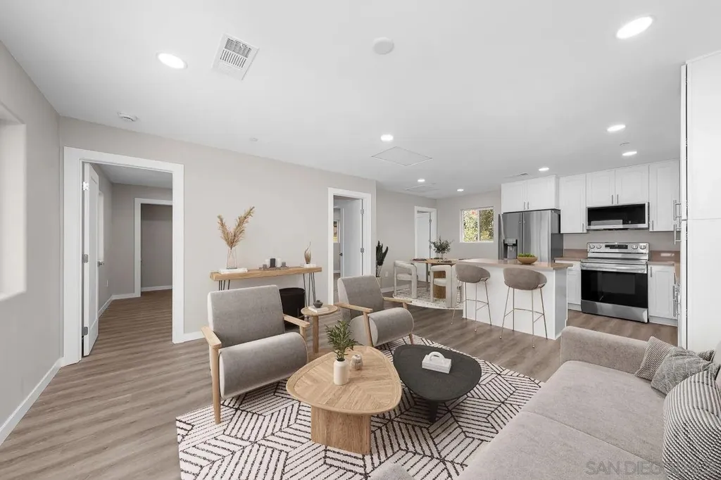 Variance granted Detached. TWO HOUSES for the price of ONE!!! THE HOTTEST DEAL IN SAN DIEGO! Do not miss out! BRAND NEW*2025 CONSTRUCTION*!! TWO NEW, Beautiful, detached HOUSES on One Lot!! Located in the highly desirable, always breezy, Casa De Oro. The Primary home is a 3 bed 2 bath 1,200 sq. ft. HOUSE--Featuring LARGE bedrooms. Beautiful, GRAND OPEN layout with giant Quartz Kitchen Island with waterfall finish. Enjoy Breathtaking views of Mt. Helix from throughout the home. The HUGE subfloor/basement is a must see to believe. Use your imagination and customize the space for your max enjoyment. The second home/ADU is a comfortable 720 sq. ft. 2 bed, 1 bath, HOUSE. This freestanding home sits on a cement slab, featuring its own private backyard for the fur babies. This home is cool most of the time, since its under the shadow of the primary home. BOTH of these AMAZING homes are fully equipped with: AC/central heat; High 8ft. Ceilings. All-electric system, no gas lines. Paid-off solar 16 panel system; Vinyl Dual-pane Windows; Electric Water Heaters; LED recessed lighting; Quartz countertops; GAF Timberline HDZ Cool Shingle Roof; Fire sprinkler system. Plus,Top of the line appliances: Dishwasher; Refrigerator; Stove; and Microwave. Gorgeous spring valley property that is surrounded by beautiful custom homes. Casa de Oro is considered the gateway to Mt. Helix. Financing incentives available. Contact broker. This is the best opportunity in San Diego! THE only NEW construction DETACHED 2-Unit property. NOT MANUFACTURED! No shared walls! NO mello roos or CFD fees! And, NO HOA fees! This is a truly unique property that has various uses. Make the move! Sell that used SFR/Condo! Buy this new Construction and pay the same or less! We can help with financing. Possible future option to perform SB 9 split. Make two lots out of one! Comparable (existing) 1200 sq. ft homes are selling for over $800K. 2 bedroom homes are selling for over $600K. This property is a money maker!!!