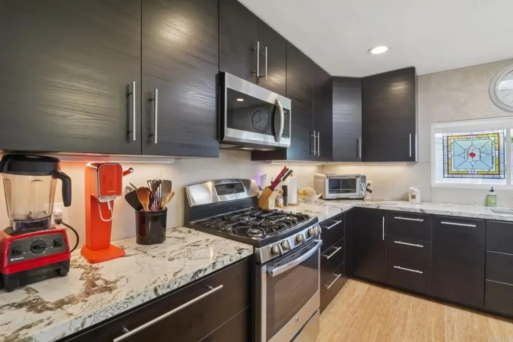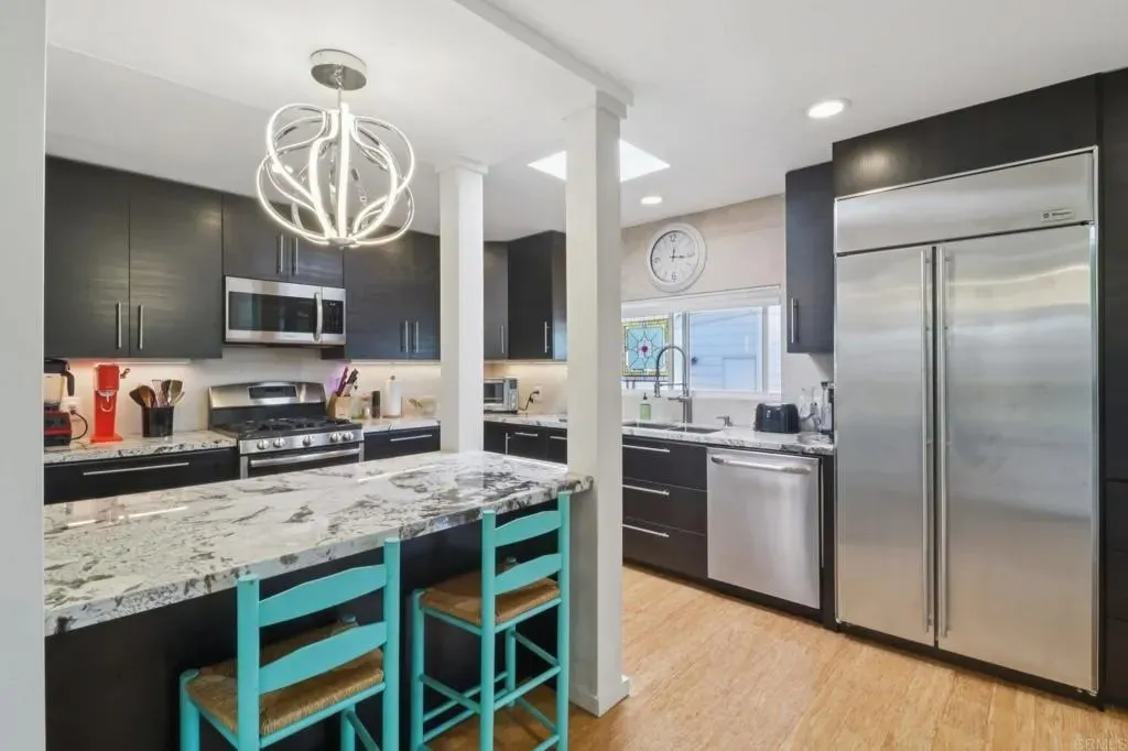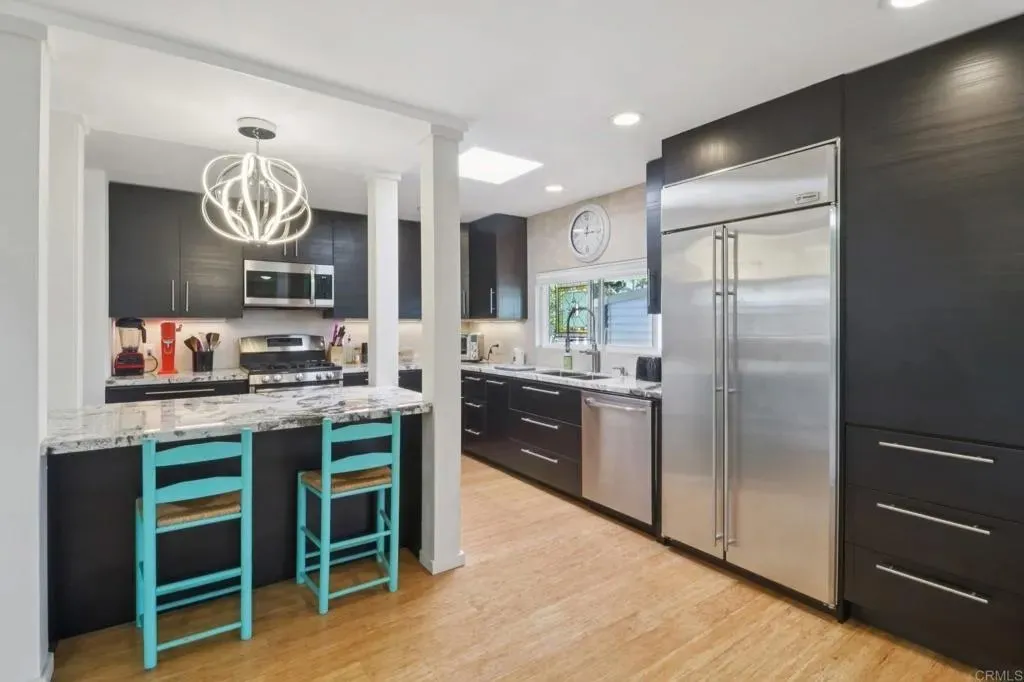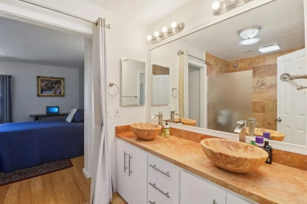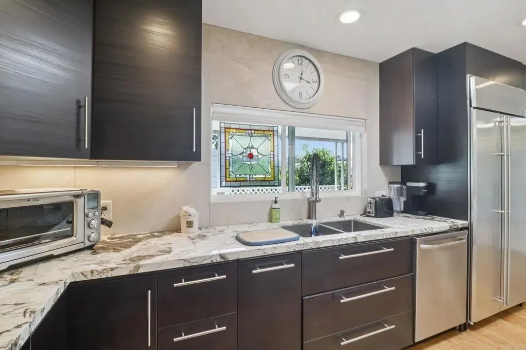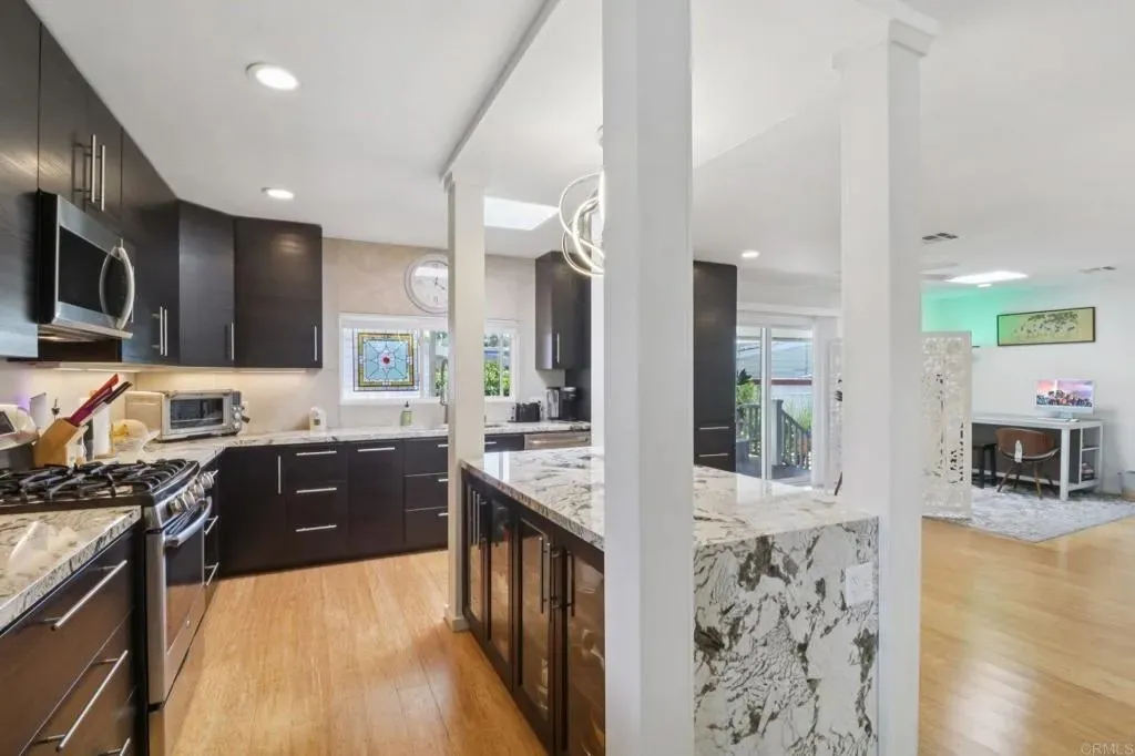 This Is the One You Cant Miss Beautiful Interiors & a Privileged Location in the Park! Welcome to 3340 Del Sol Blvd SPC 215, a stunningly updated home in the highly desirable Ocean Bluffs Estates 55+ gated community, where modern comfort meets peaceful coastal living. From the moment you step inside, youll be captivated by the bright, open layout, soaring vaulted ceilings, and bamboo flooring that add a sense of elegance and warmth. The chefs kitchen is a true showpiece featuring granite countertops, sleek dark cabinetry, stainless steel appliances, and a stylish modern light fixture that elevates every meal into an experience. Enjoy two spacious living areas perfect for entertaining or relaxing, plus a large primary suite with ample storage and a beautifully remodeled bathroom. Step outside to your private patio retreat, surrounded by greenery and tranquility ideal for morning coffee or sunset conversations. Youll love the privileged location within the park, offering extra privacy, peaceful surroundings, and easy access to the communitys resort-style amenities including a heated pool, spa, fitness center, clubhouse, and walking paths.