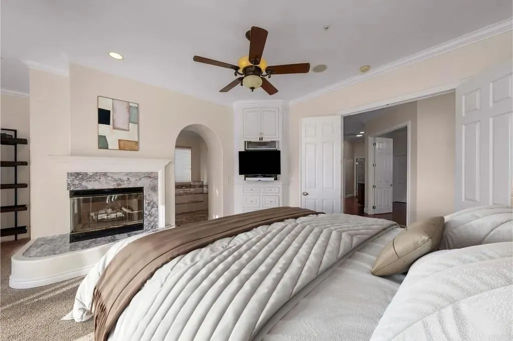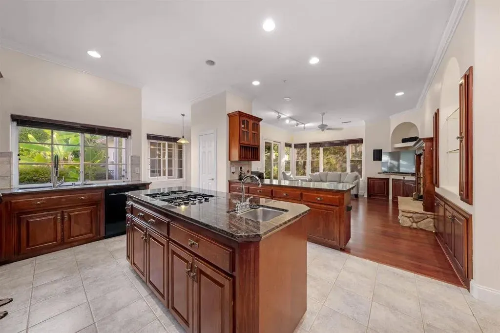 Welcome to this stunning single-level home in the highly sought-after Steele Canyon Estates, perfectly situated on the custom side of the golf course. This elegant residence offers an ideal blend of luxury and comfort. Step inside to a spacious living room with soaring high ceilings and a beautiful dining room. A double-sided fireplace creates a warm ambiance between these two inviting spaces. The large kitchen features a generous island, granite counters, and is open to the family room, making it perfect for entertaining. The primary suite is a true retreat, complete with a sitting area and fireplace, spa-like ensuite with soaking tub and walk-in shower, and a large walk-in closet. Additional spacious bedrooms provide ample room for family or guests. Enjoy outdoor living with shaded seating areas, lush landscaping, and a detached guest suite ideal for visitors or extended family. This home also features paid solar (24 panels) and a 3-car garage. Experience refined living on the golf course in one of East Countys premier gated communities.