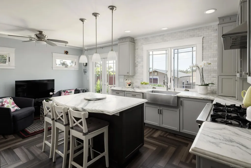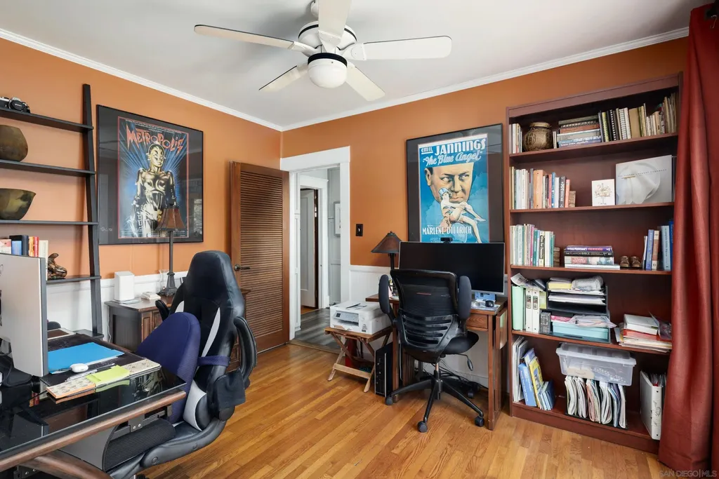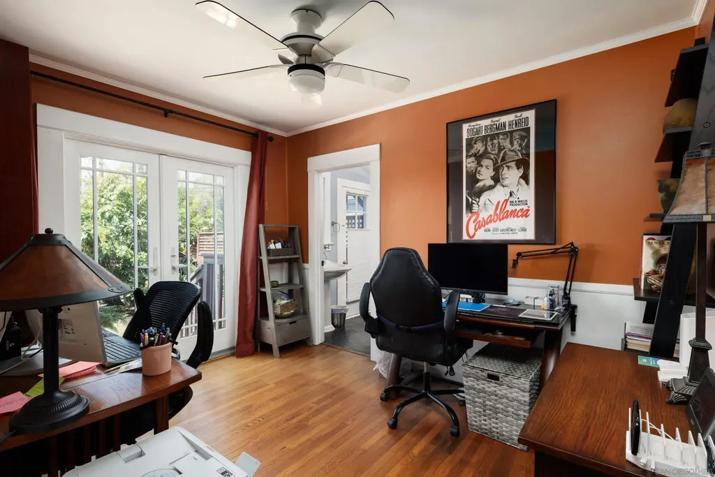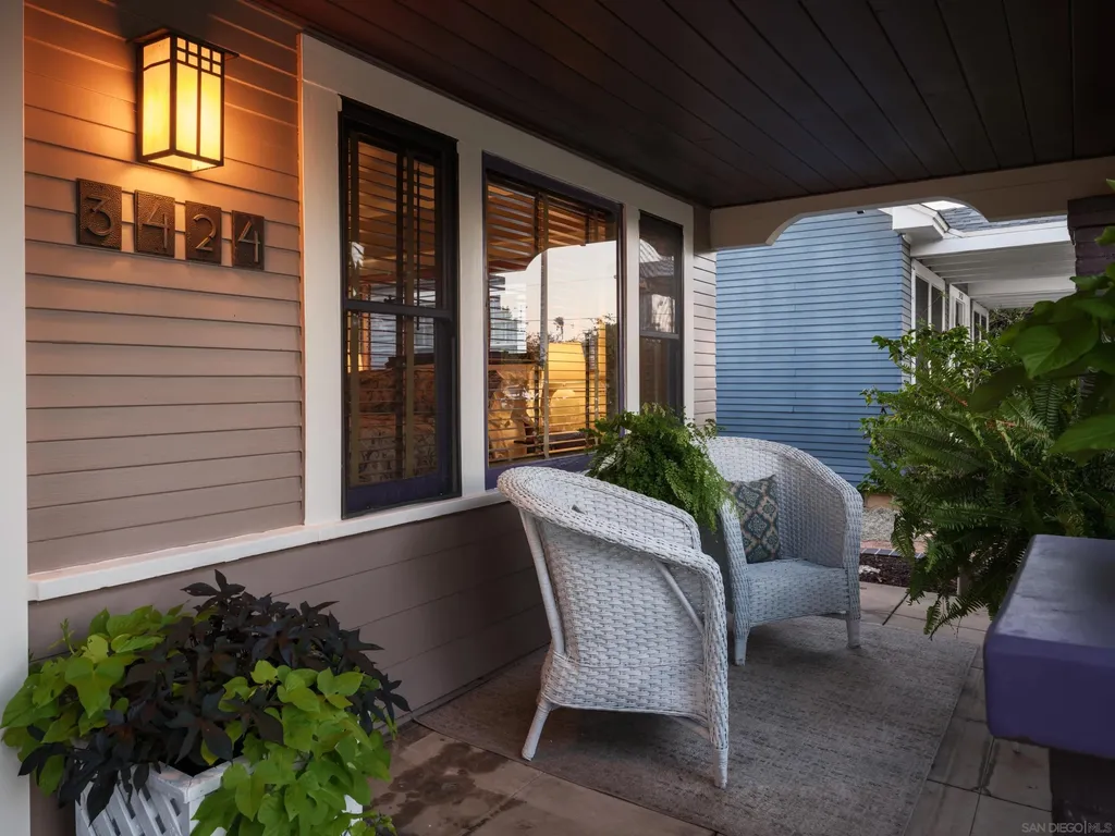 Welcome to 3424 Pershing Avenue, a rare 1918 Craftsman gem located in the North Park Dryden Historic District. This classic beauty combines beautiful architectural details w/modern comfort. Vintage character shines with original gumwood trim & built-ins, tiled fireplace & gleaming hardwood floors. Thoughtful updates include a remodeled kitchen w/charming corner fireplace. French doors to the large backyard. Original vintage tiled bathroom. New roof and air conditioning. A welcoming front porch with room to relax. French doors in the dining room open to the sun porch and provide easy access to the large sunny backyard. Alley access too! Enjoy mature pomegranate, fig, citrus & avocado trees. Located steps to Morley Field, Balboa Park, downtown San Diego, and Petco Park. Experience the North Park lifestyle: Michelin acknowledged restaurants, craft breweries, cocktail clubs and boutique shopping. This is your opportunity to own a piece of San Diego history, while experiencing everything one of San Diego's most vibrant and walkable neighborhoods has to offer. {Supplement} Step into a piece of San Diego history with this 1918 Craftsman. Located in the celebrated North Park Dryden Historic District, this residence showcases timeless craftsmanship with preserved gumwood trim, original built-ins, a tiled fireplace, and vintage tiled bath. Modern updates complement the historic charm, including a thoughtfully remodeled kitchen with a rare corner fireplace, French doors that open to a sunny porch, and a seamless indoor-outdoor flow. The home sits on a generous 6,300 sq. ft. lot, offering a true urban oasis. The backyard is filled with mature fruit trees - pomegranate, fig, citrus and avocado - while coveted alley access adds versatility for gardening, entertaining, or expansion. North Park itself is known for its vibrant mix of Michelin-recognized restaurants, craft breweries, cocktail lounges, boutique shops, schools, and parks. With its walkability and sense of community, North Park is one of San Diego's most desirable neighborhoods.