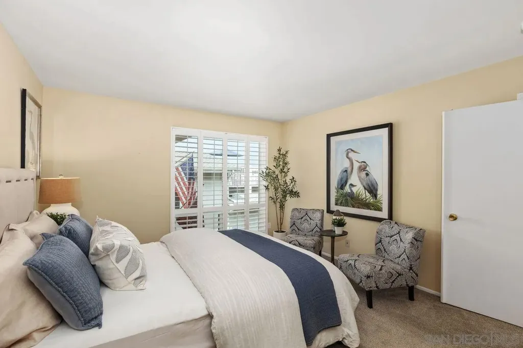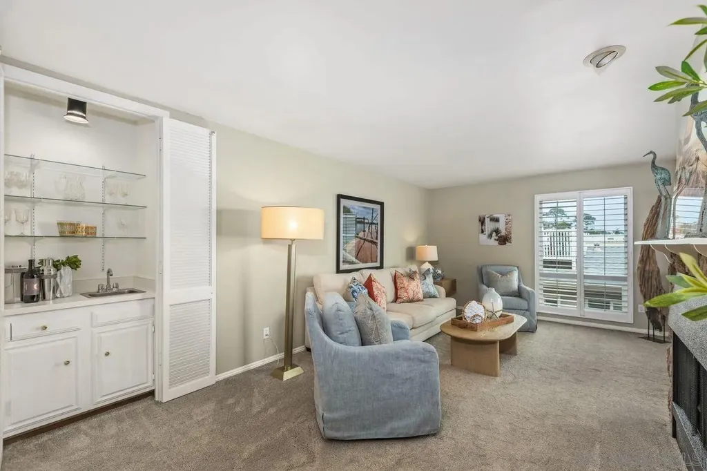 Welcome to a wonderful, single level condo located in the heart of the desirable neighborhood of La Playa in Point Loma. This top floor, corner unit offers views of the San Diego Harbor, the downtown skyline and Shelter Island. Enjoy water views from the balcony, living room and from both bedrooms. The kitchen is complete with granite counters, a walk-in pantry and opens to a dining area with a skylight. The spacious living room has a fireplace and a built in wet bar. Perfect for relaxing or entertaining. Features include newer windows with wood shutters, ample storage throughout, an in-unit laundry room and AC. The secured parking garage includes one dedicated parking spot with a metered outlet for EV charging and a storage closet, plus access to the community gym and sauna. Here is your opportunity to live in this fantastic coastal community just one block from Kellogg Beach, with close proximity to Yacht Clubs, the La Playa Trail and the shops and restaurants of Point Loma Village and Shelter Island.