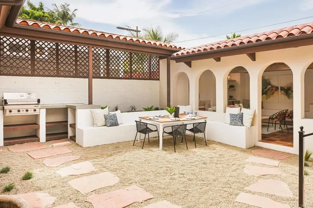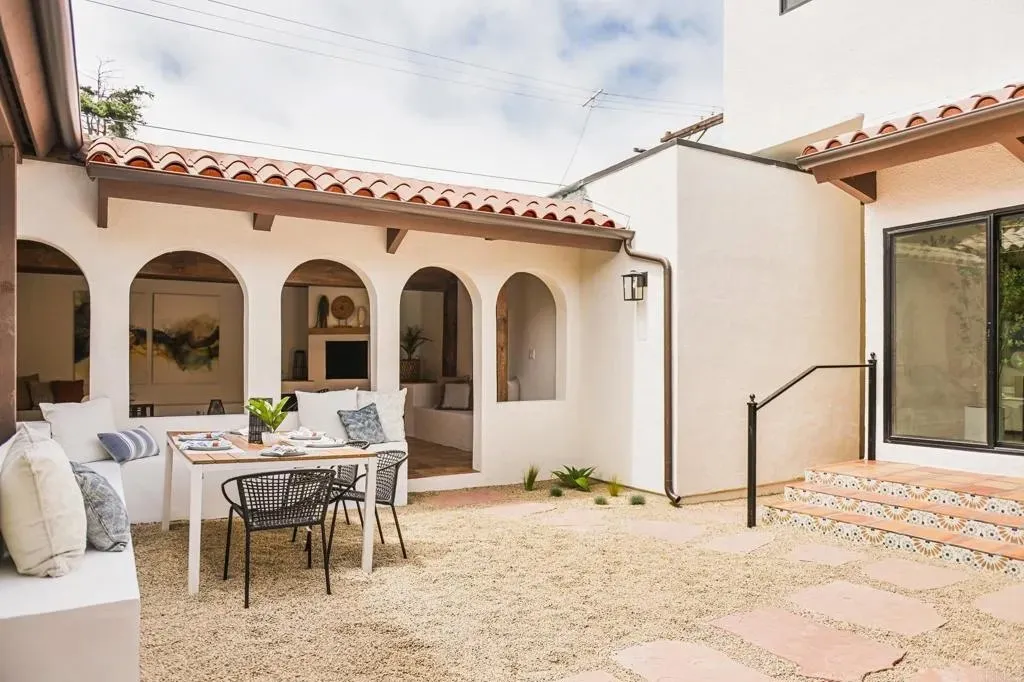 Located in the highly desirable Point Loma Heights neighborhood, this beautifully updated 3,278 sq. ft. Spanish-style home blends the charm of classic Point Loma architecture with modern elegance and functionality. Every inch of the home has been thoughtfully reimagined, creating a perfect balance of warmth, sophistication, and effortless indoor-outdoor living. The open-concept floor plan flows seamlessly, anchored by a chef-inspired kitchen featuring premium appliances, sleek cabinetry, and a spacious center island designed for both cooking and connection. Tucked just beyond the kitchen is a butlers pantryideal for added storage, prep space, or staging for entertaining. Natural light fills the main living areas, highlighting refined finishes while drawing you toward the homes crown jewel: a private central courtyard retreat, perfect for al fresco dining, morning coffee, or hosting under the stars. The primary bedroom is conveniently located on the main floor, offering privacy and comfort with easy access to the heart of the home. Upstairs, generously sized secondary bedrooms provide flexibility for family, guests, or a home office. Step outside to enjoy a fully reimagined yard, including an expansive covered outdoor veranda that creates an additional 750 sq. ft. of indoor-outdoor living space, making this home truly an entertainers dream. A rare and valuable bonus to this property is the detached 450 sq. ft. room, complete with its own separate climate control system. Whether you envision an office, guest suite, art studio, fitness space, or peaceful yoga retreat, this flexible area expands your lifestyle possibilities with ease. All major systems have been upgraded for peace of mind, including a new roof, new HVAC system, and all-new energy-efficient windowsensuring comfort and longevity for years to come. Perfectly positioned just minutes from San Diegos vibrant Liberty Station, this home offers the best of coastal living with easy access to top-rated dining, boutique shopping, art galleries, parks, and scenic waterfront recreation. While nestled in a quiet, established neighborhood, you're close to everything that makes Point Loma one of the city's most desirable and enduring communities. Schedule your private showing today and experience the beauty of this exceptional home firsthand.