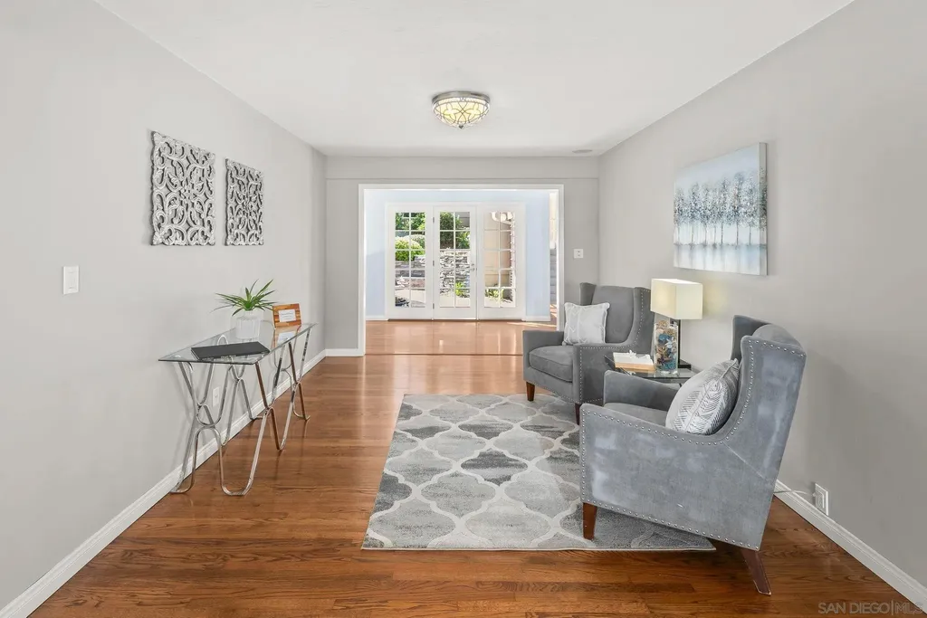 Cape Cod gem on La Cresta Loop, thoughtfully remodeled to blend classic charm with modern California living. Enjoy sweeping views of sunlit rolling hills in one of the area's most sought-after enclaves, known for its peaceful streets and close-knit community. The home welcomes you with timeless architecture, manicured landscaping, and rich hardwood floors. Inside, light-filled spaces feature curated built-ins, spacious rooms, and a serene primary suite with a beautifully updated spa-like bath. A flexible layout allows the front two bedrooms and full bath to serve as a private guest wing with separate entry. The open kitchen and dining area flow to a covered courtyard - perfect for al fresco dining or weekend gatherings. Terraced gardens with mature citrus and avocado trees lead to an upper lawn retreat. Upgrades include new plumbing, HVAC, mini-split in the primary suite, water softener, alkaline filtration, Nest thermostat, integrated speakers, landscape lighting, irrigation, and built-in gas BBQ. A walk-in attic with 14-foot ceilings offers bonus storage or creative potential. A special home combining style, comfort, and tranquility - don't miss it.