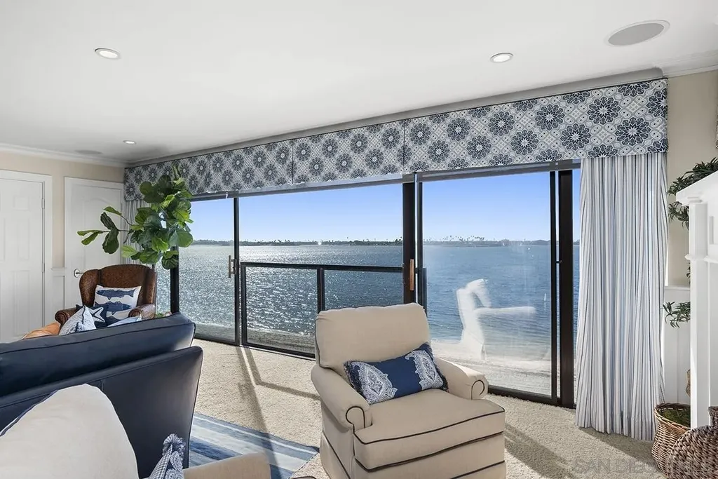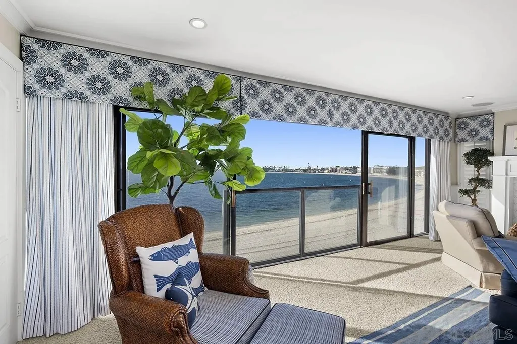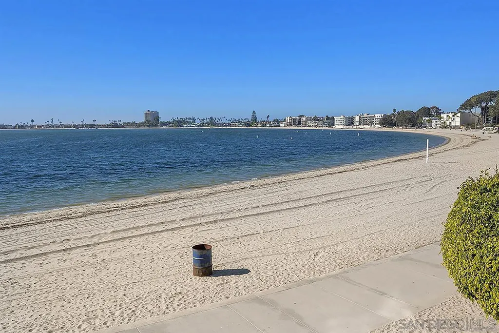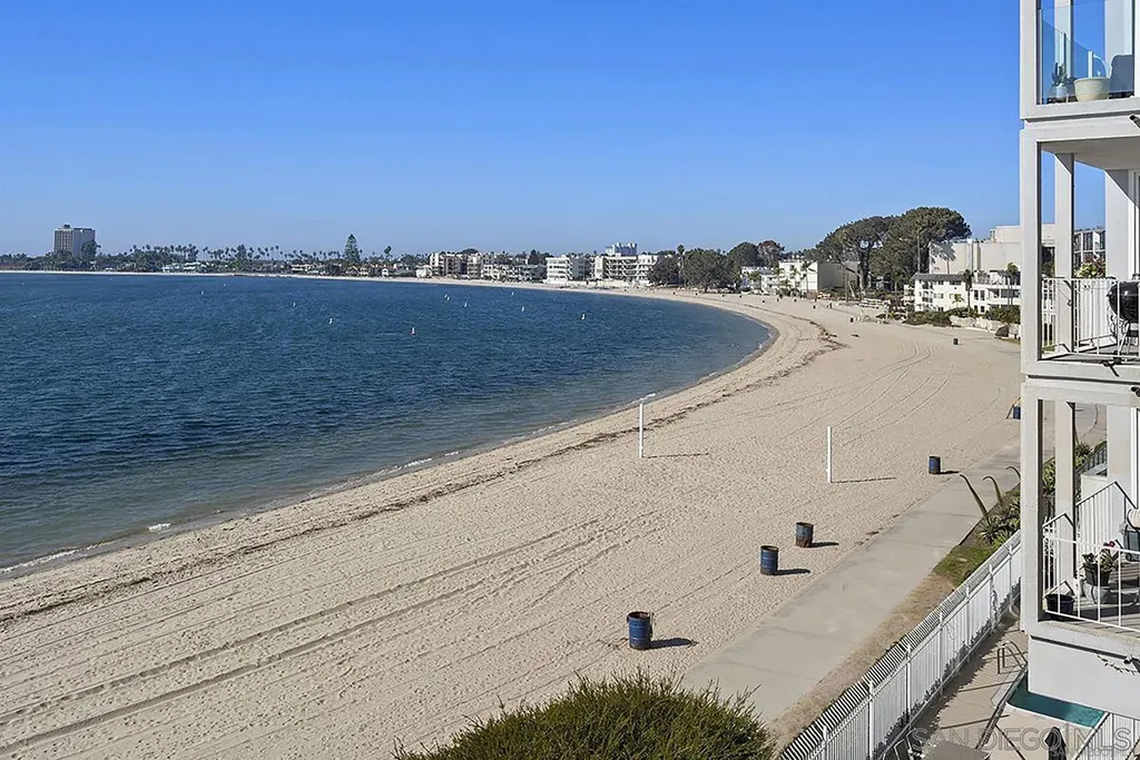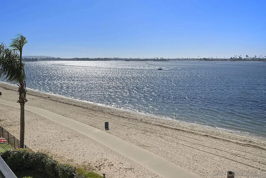 Breathtaking Mission Bay Retreat. This stunning 2-bedroom, 2-bathroom home offers unparalleled luxury with unobstructed, expansive views of Mission Bay! Thoughtfully upgraded throughout, this residence combines modern elegance with a serene beachside ambiance. Step into the heart of the home - a spacious, beautifully designed kitchen outfitted with a premium gas Wolf range and high-end appliances, perfect for the culinary enthusiast. The inviting living room boasts crown molding and a custom bar with a mini-fridge, creating the perfect space for gatherings or simply unwinding while enjoying the sweeping bay views. Open the impressive 20-ft of windows to let in the gentle coastal breeze and listen to the soothing sound of waves clapping along the shore - an experience that makes every moment feel like a vacation.Your private retreat awaits in the oversized primary suite, complete with a walk-in closet and a luxurious en suite bathroom featuring a separate soaking tub, walk-in shower, and dual vanities. A second generously sized bedroom and an additional upgraded bathroom offer comfort and versatility for guests or family. Situated in a prime location, this home provides not just a residence but a lifestyle, with Mission Bay's beauty as your backdrop.