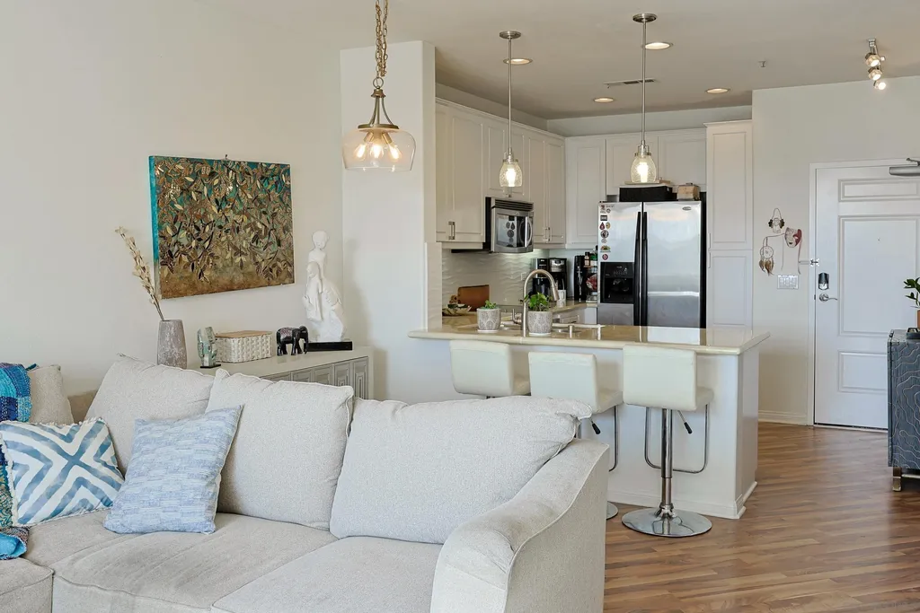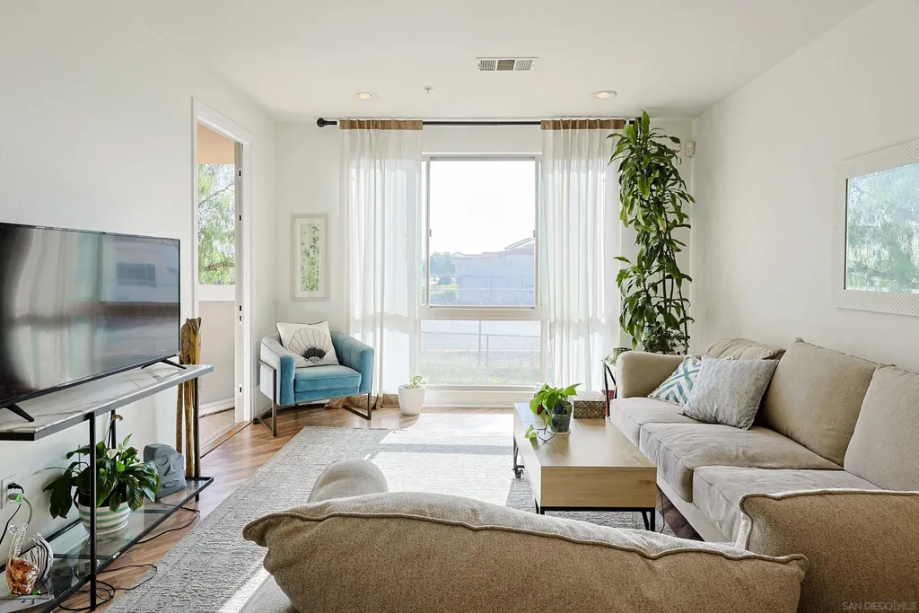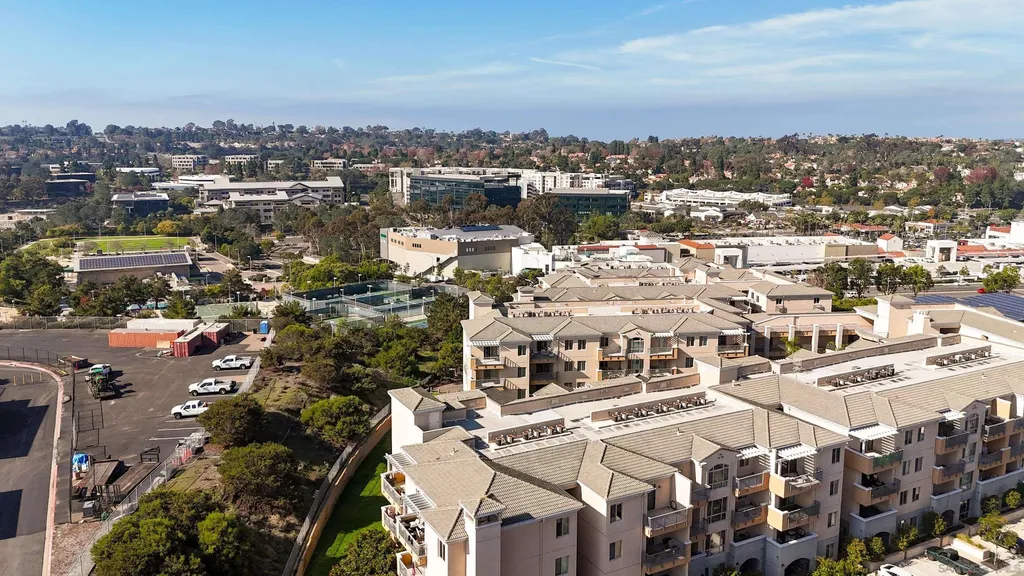 Located in the heart of Carmel Valley, walk across the street to Del Mar Highlands & One Paseo for boutique shopping, fitness studios, city library, parks, cozy coffee shops, and a dynamic mix of restaurants. Experience comfort & convenience in one of Carmel Valley's most central communities. This 2nd floor unit has an open floor plan with a U-shaped kitchen with tons of counter & cabinet space. Open to the large living room with floor to ceiling windows. The spacious balcony is extra private facing the back of the complex with no neighbors behind. The comfortable bedroom has a nice walk-in closet. The sizable bathroom has even more cabinets for storage, and features a full size washer and dryer. Pell Place is a fully gated & secured community with modern access systems for your guests and deliveries. Experience the exciting amenities including state of the art fitness center, dog run, BBQ area, plentiful EV car charging, putting green, and an active social community with an on-site HOA office. There is 1 assigned gated garage parking spot. Make this unique condo your home and start enjoying the vibrant & active community!