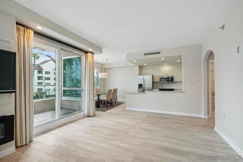 Welcome to 3890 Nobel Dr Unit 207, a 2-bedroom, 2-bathroom condo in the Pacific Regent community. Conveniently located on the second floor. Updated with a custom remodel, this unit boasts a spacious open floor plan. Pacific Regent is a luxury retirement community for those aged 62 and up, offering an array of amenities. Enjoy 24-hour security, a salon, and a library for convenience. The HOA includes access to a fitness center, heated pool and spa, and meeting rooms for events. Indulge in gourmet restaurant-style dining and room service.