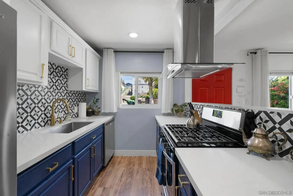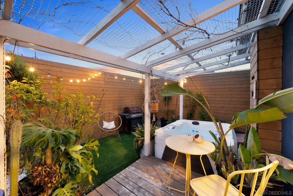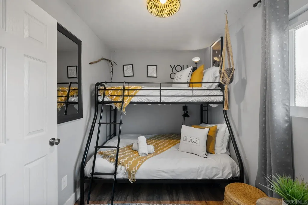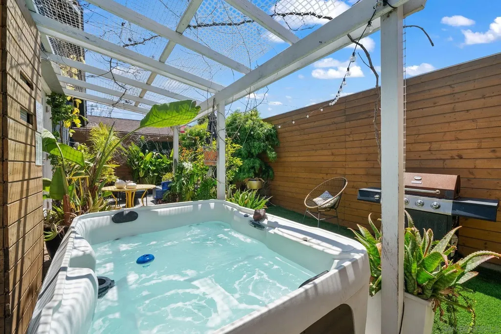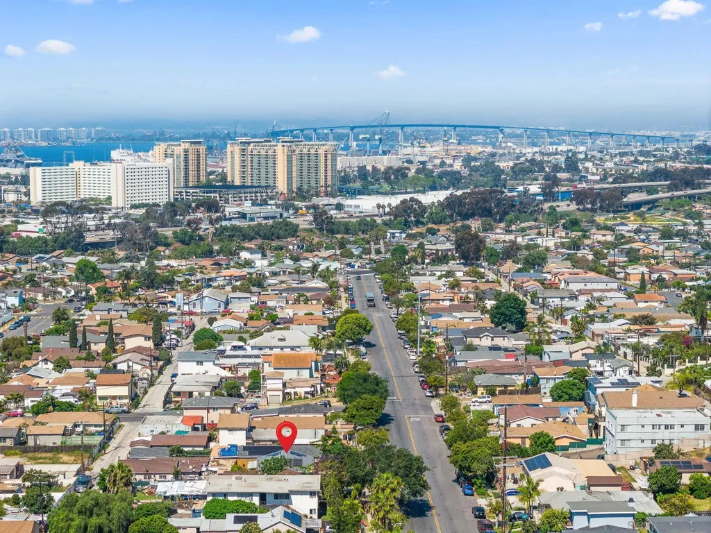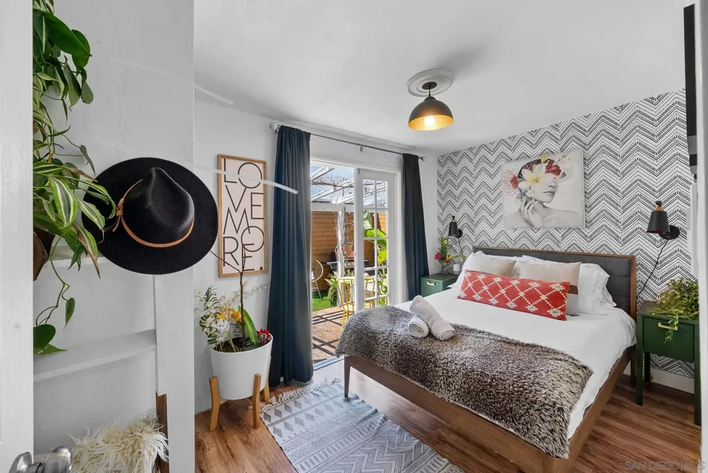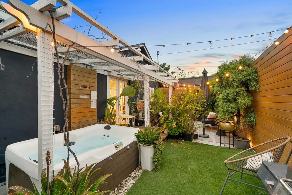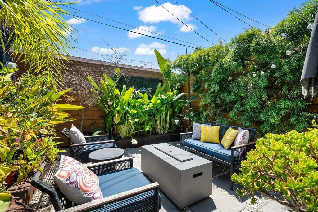 Fully furnished single-story home east of Downtown San Diego with short-term rental income already in place. This 3-bed, 2-bath home is currently operating as a successful Airbnb with strong reviews and consistent bookings. Inside, the open layout includes a bright living area, dining space, and a kitchen with a gas range, stainless steel appliances, and a tile backsplash. The primary bedroom has its own bathroom and French doors that open to the backyard. The second bedroom includes bunk beds and a built-in desk, ideal for kids or remote work. Both bathrooms are updated, and there's in-unit laundry. Outside, step into your own private tropical retreat with lush greenery, a spa, fire pit, and outdoor seating - perfect for relaxing or entertaining. Gated driveway and leased solar. Located minutes from Downtown, Coronado, Balboa Park, and major freeways. Whether you want a family home or an investment property, this one is move-in ready and flexible for both.