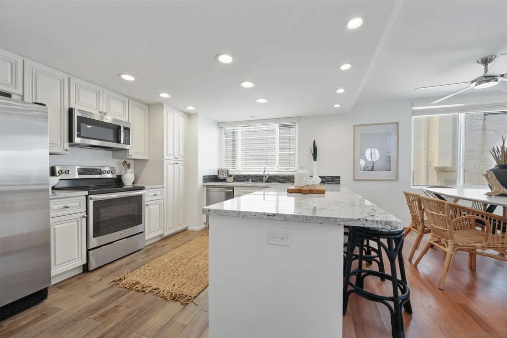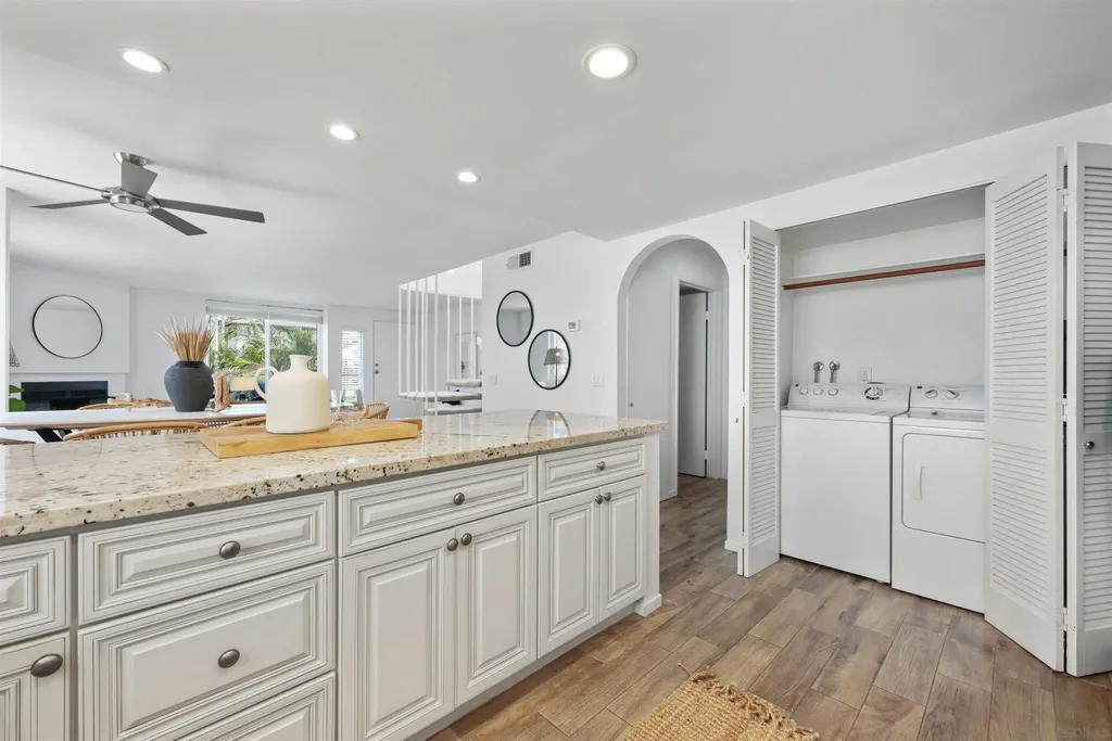 Great location in the heart of Crown Point! Just 2 blocks from Sail Bay and less than a mile from the Pacific Ocean. This bright condo features an open concept living area, a half bath downstairs, and in-unit laundry. Upstairs you will find 2 spacious bedrooms, each with its own en suite bathroom. There are 2 assigned parking spaces and a large storage closet in an underground, gated garage with direct access to the unit.