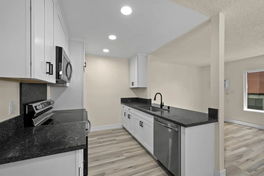 Newly renovated and ready to move in! This 1 bedroom /1 bathroom condominium is located in the heart of San Diego, placed between San Diego's vibrant urban communities of North Park, Kensington, and City Heights. With convenient access to the I-8 and I-15, this unit is perfect for young professionals and young families starting out and looking to plant roots here in San Diego. Upgrades include new cabinets, flooring, stainless steel appliances, windows, HVAC system, and more. Features a spacious and open living room with direct access to the kitchen to entertain, while the bedroom is tucked away privately behind the kitchen. Do not miss out on this opportunity!