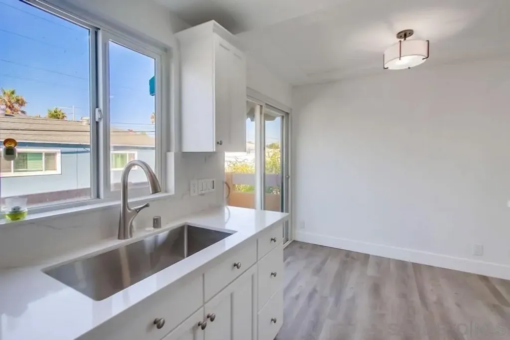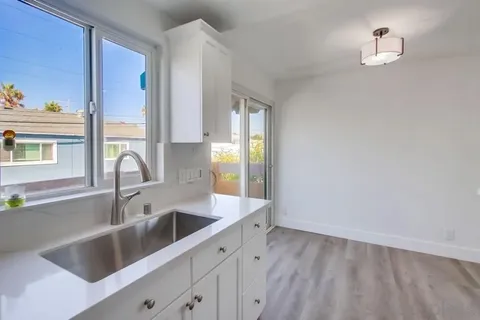 VA Approved! Move in ready! Light & Bright! Small complex. Newly remodeled top-floor corner unit. Vinyl wood flooring throughout, New kitchen cabinets, quartz countertops, stainless steel appliances, newer windows, recessed lighting, upgraded bathrooms with tiled showers, and ceiling fans. Large deck that extends the entire length of the unit at dinning/living room area. One-car garage with additional parking. Centrally located, easy freeway access, 15 minutes from downtown, SDSU, USD, and beaches. Centrally located, 15 minutes from the beach, USD, SDSU, stores, and restaurants.
