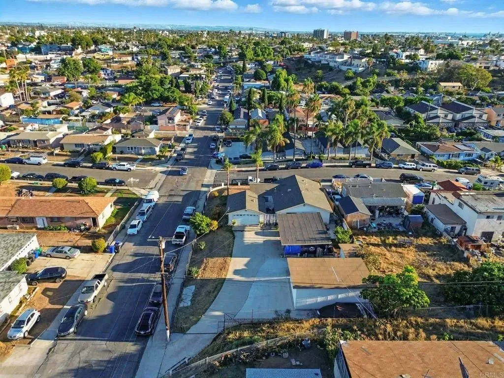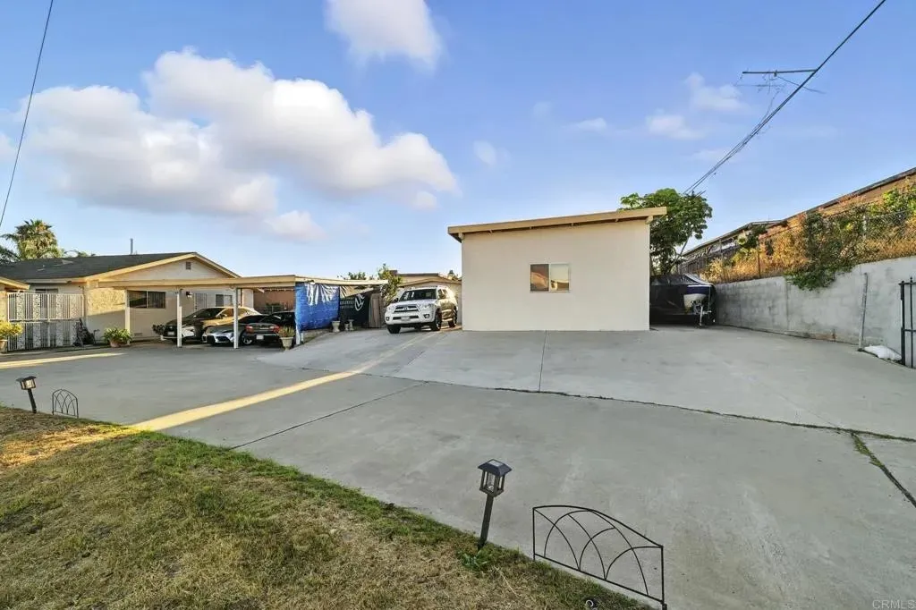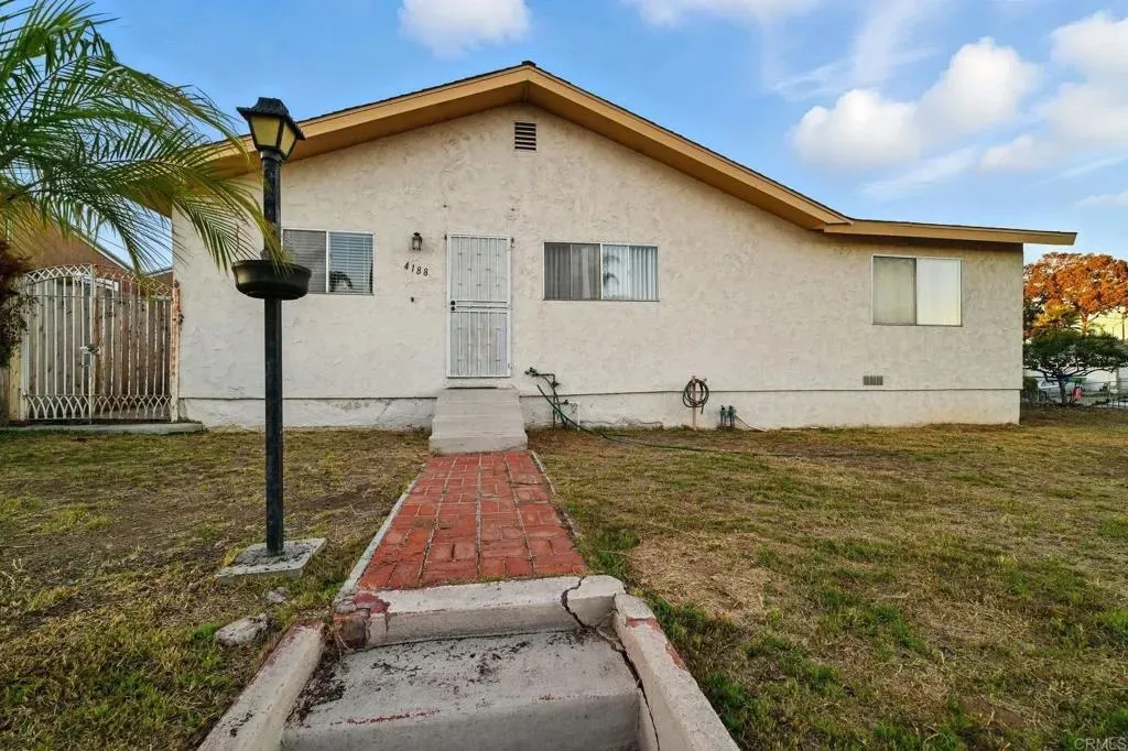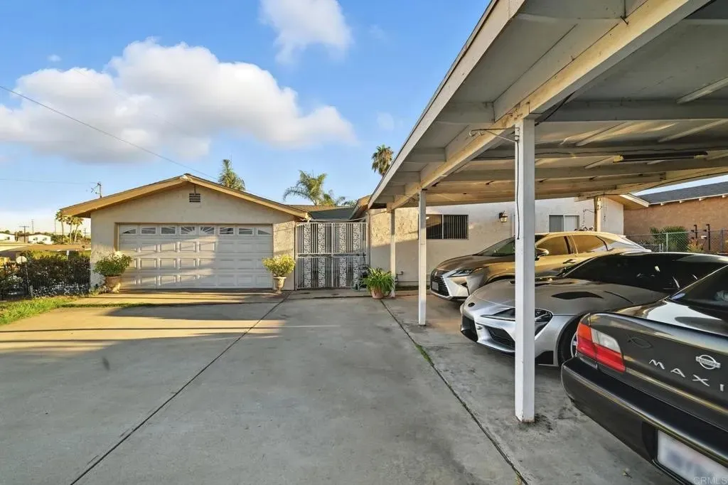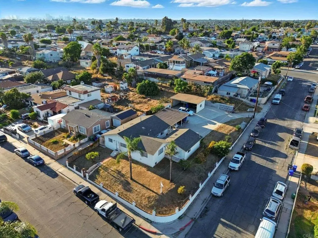 Discover this inviting 4-bedroom, 2-bathroom home offering 1,452 sq ft of comfortable living space, situated on an expansive 8,129 sq ft lot. Perfect for families, investors, or those looking to customize their dream home, this property boasts incredible potential due to its R2 zoning, allowing for future expansion or the addition of an income-producing unit. The home has been updated with laminated wood floors throughout the home and ceiling light fans in all bedrooms, kitchen and living room. Bathrooms have tiled shower enclosures and 3 of the bedrooms have closet organizers. The backyard offers an attached two-car garage, a charming patio courtyard, and three covered carports that double as a shaded patio for family gatherings. Additionally, there's a storage shed, four more carports with three-sided enclosures and boat storage behind, plus six open parking spaces, all on a spacious concrete driveway secured by a private electric gate. The fully fenced property provides ample space for RV parking. Centrally located with easy access to major freeways, this home is just minutes from shops, restaurants, downtown San Diego, and scenic beaches. Amazing opportunity first time buyers with large family, room to grow, add ADU. Whether you're envisioning a spacious family home, a personalized outdoor oasis, or a savvy investment, this home offers endless possibilities.