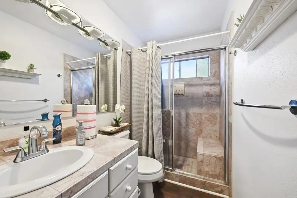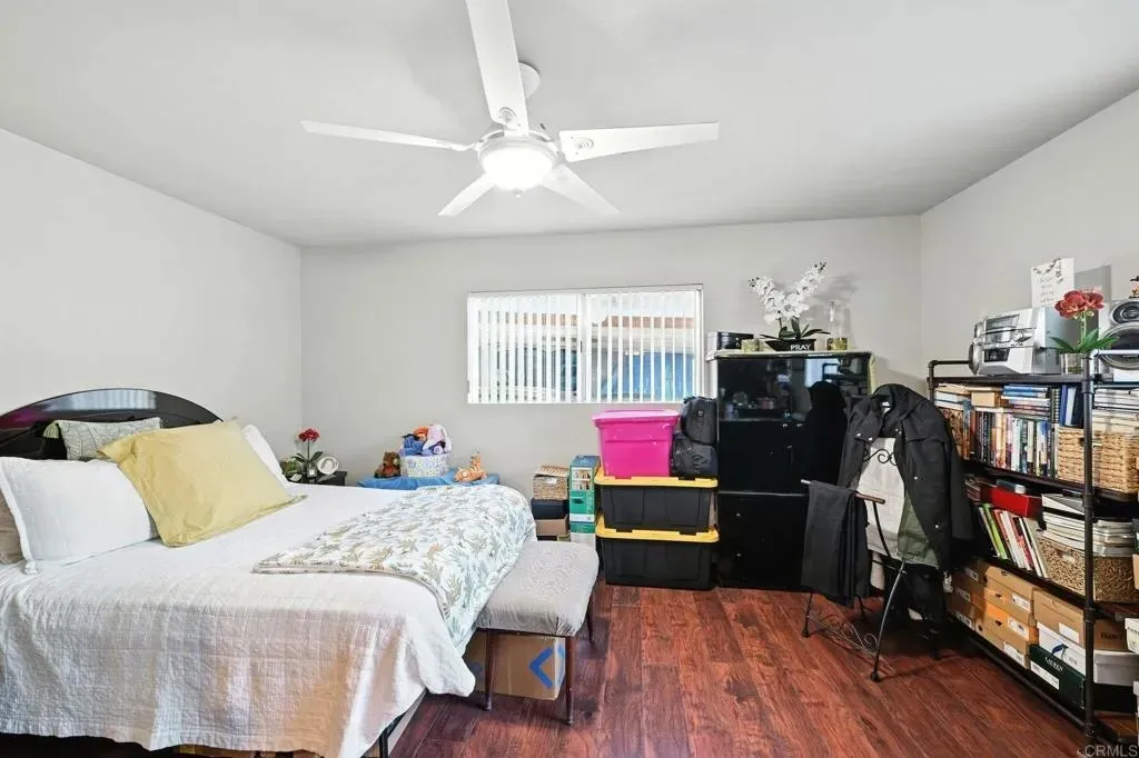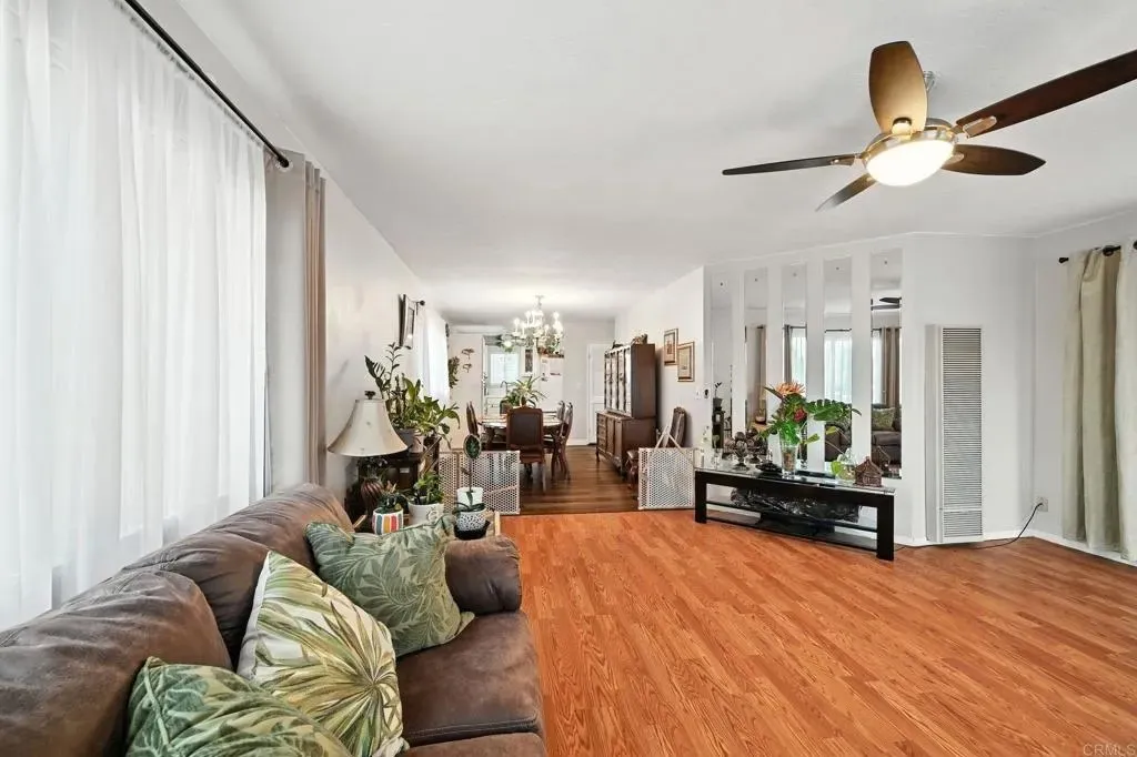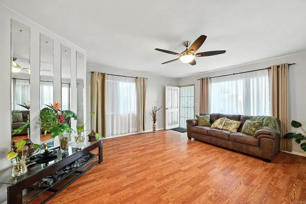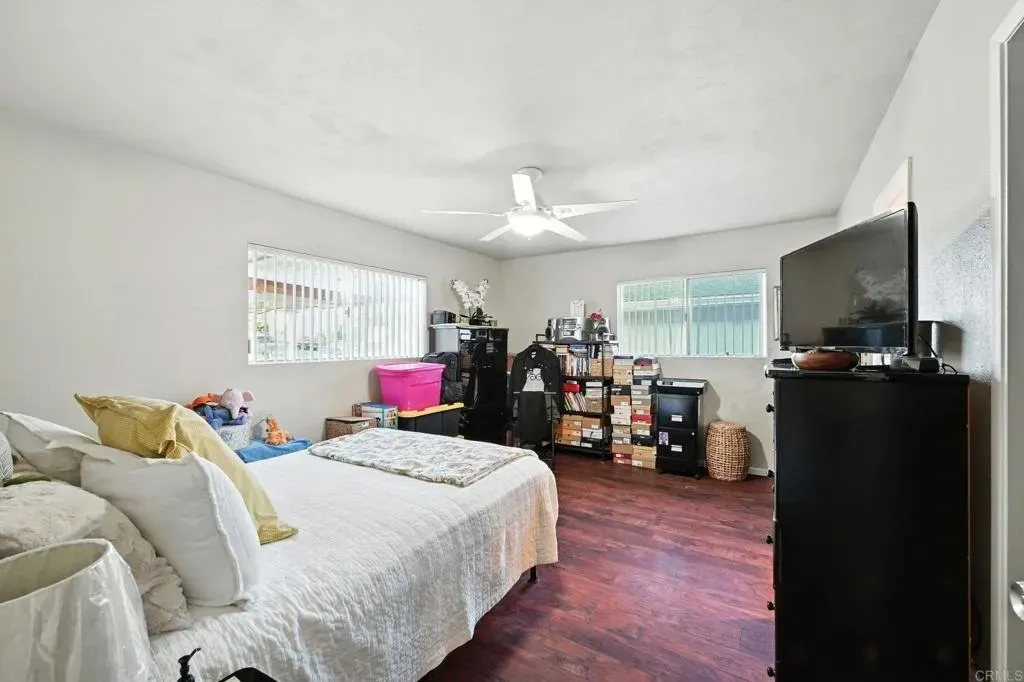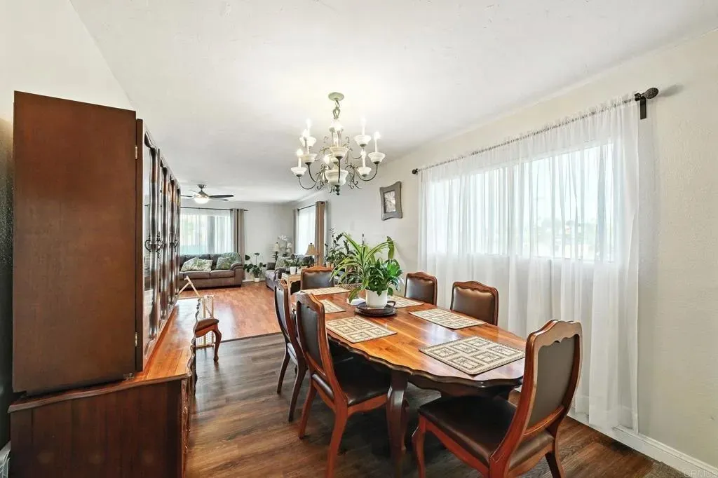 Discover this inviting 4-bedroom, 2-bathroom home offering 1,452 sq ft of comfortable living space, situated on an expansive 8,129 sq ft lot. Perfect for families, investors, or those looking to customize their dream home, this property boasts incredible potential due to its R2 zoning, allowing for future expansion or the addition of an income-producing unit. The home has been updated with laminated wood floors throughout the home and ceiling light fans in all bedrooms, kitchen and living room. Bathrooms have tiled shower enclosures and 3 of the bedrooms have closet organizers. The backyard offers an attached two-car garage, a charming patio courtyard, and three covered carports that double as a shaded patio for family gatherings. Additionally, there's a storage shed, four more carports with three-sided enclosures and boat storage behind, plus six open parking spaces, all on a spacious concrete driveway secured by a private electric gate. The fully fenced property provides ample space for RV parking. Centrally located with easy access to major freeways, this home is just minutes from shops, restaurants, downtown San Diego, and scenic beaches. Amazing opportunity first time buyers with large family, room to grow, add ADU. Whether you're envisioning a spacious family home, a personalized outdoor oasis, or a savvy investment, this home offers endless possibilities.