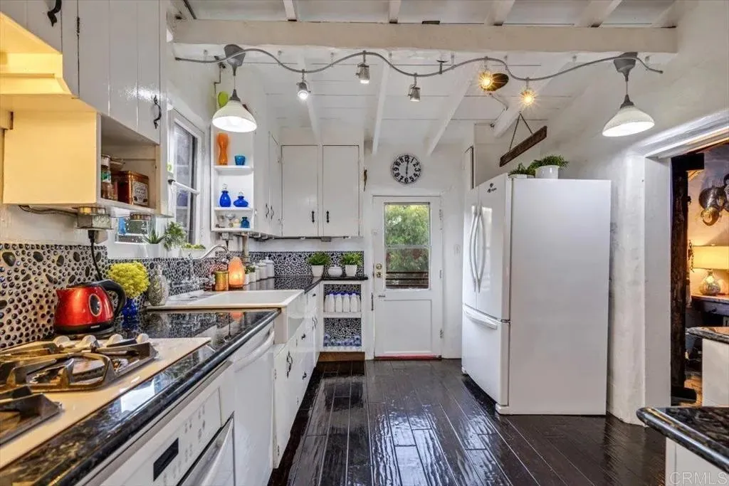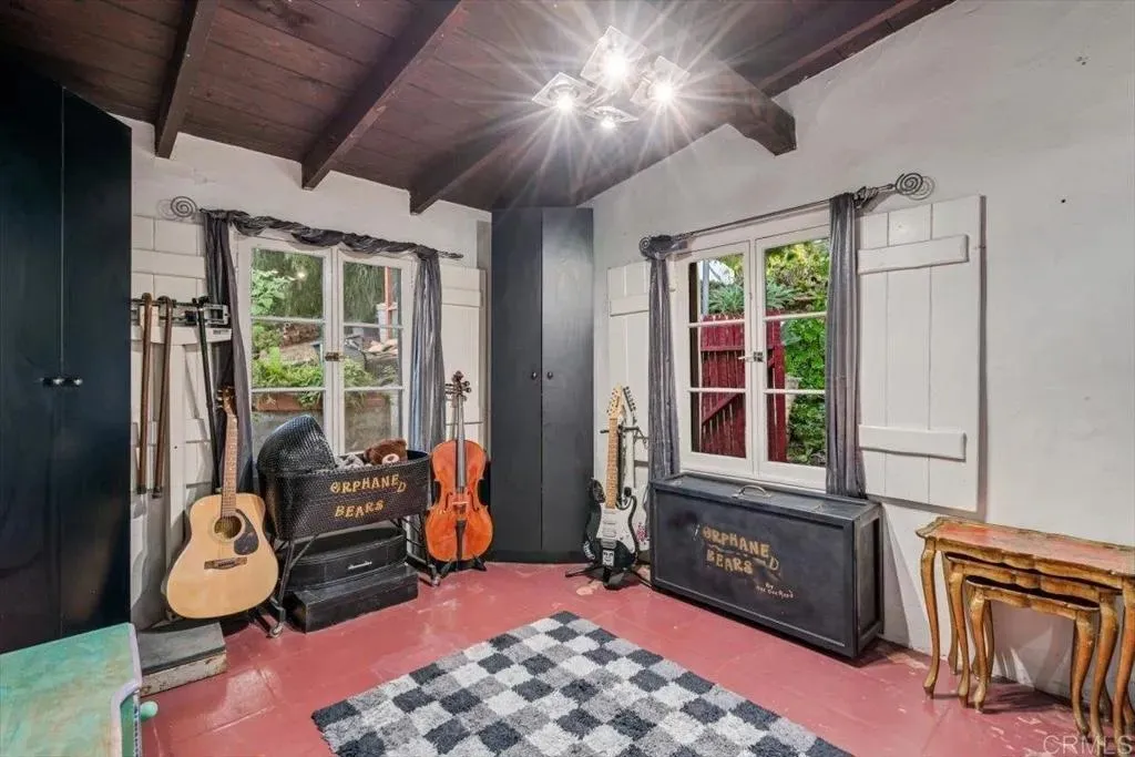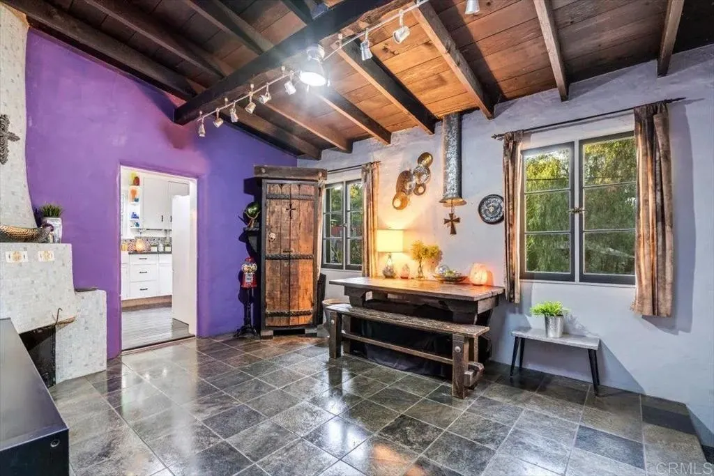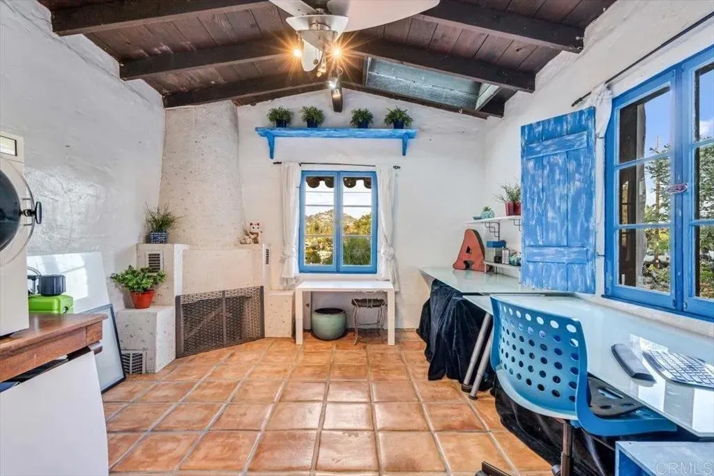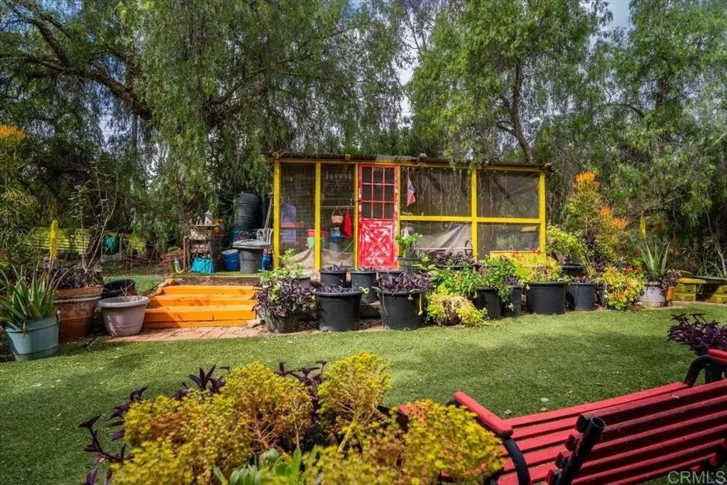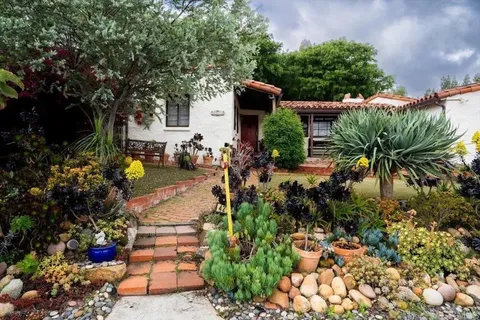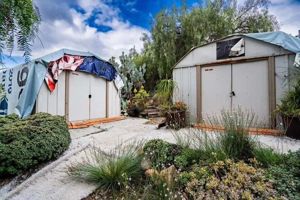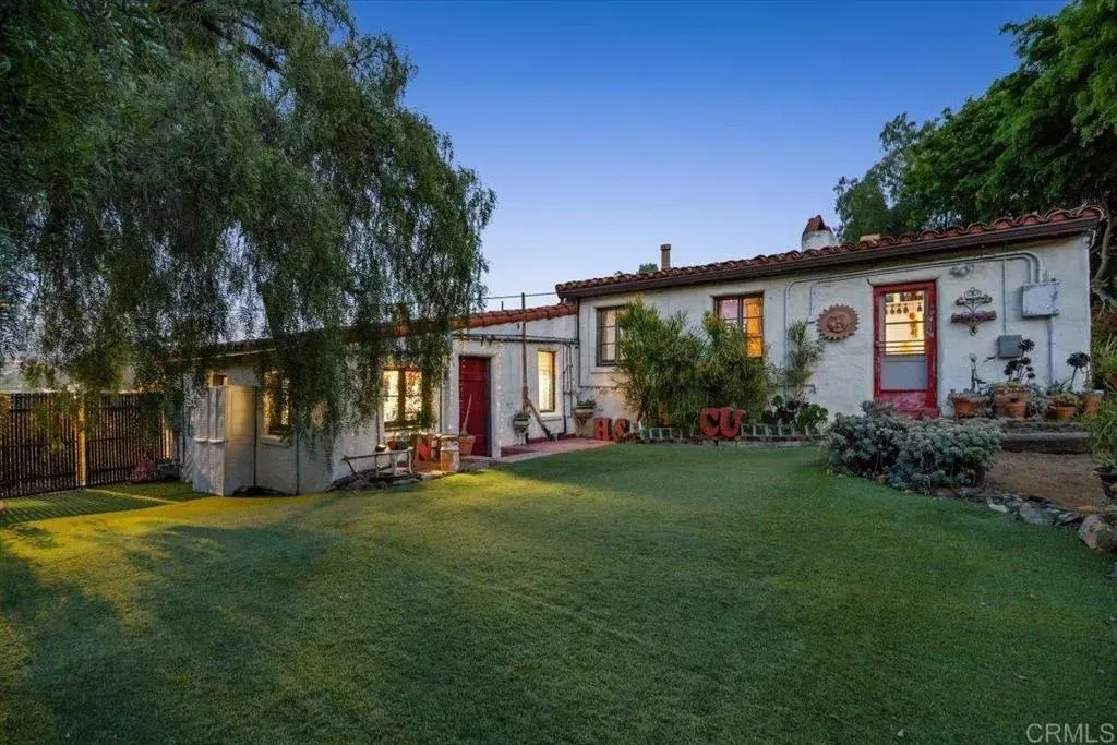 SELLER MAY CONSIDER A 2/1 INTEREST RATE BUY DOWN WITH THE RIGHT OFFER!!! Appraised: $1.1M. Enchanting 1939 Authentic adobe cottage on cul-de-sac on of an acre. Vintage charm and tranquil privacy intertwine at this truly unique property. Hacienda style front porch with peaceful water fountain. Hidden Gem, Just A few minutes walk to Charming Historic La Mesa Village that hosts weekly Farmers Market yearly street community events, shops and restaurants. This secluded and serene property feels worlds away, yet has quick access to freeways and trolley. French windows throughout and back Dutch Door. This one-of-a-kind villa chalet is an artists retreat, an urban gardener, nature lover and homesteading dream. The enchanting yard feels like a private forest with Breathtaking Views of Mt. Helix. Home features 18 inch Adobe walls which provide temperature control and a quiet tranquil indoor atmosphere , beamed ceilings, 3 beehive fireplaces, sun room and custom scraped maple flooring, Iceland granite Kitchen countertops and custom hand made artistic backsplash. Dining room floor quartz from India. Bedroom/office floor handmade Saltillo Terracotta Tiles imported from Mexico. Laundry and bath located downstairs in the garage. Step outside to a red brick patio ideal for alfresco gatherings, an entertaining paradise complete with a resurfaced in-ground SWIMMING POOL (2009), Artistic Colorful Chicken Coop with live chickens (convey with property), Dome Greenhouse, multiple sheds, water storage containers, rain barrels, a raised entertainment stage, Fire Pit area and outdoor shower. Inside and out, the home has been lovingly cared for with updated electrical, copper plumbing, (2025 ) energy efficient variable speed pool pump , (2024) dishwasher and a 50+ year clay tile roof (installed 2007) with UVA protected skylights that open. Huge fully fenced multi-tiered expansive back yard behind gated entry. Mystical setting with Lush mature trees, vegetable garden ,beautiful low maintenance drought tolerant landscaping including artificial turf strolling pathways and fruit bearing trees Mills Act Historic Designation potential