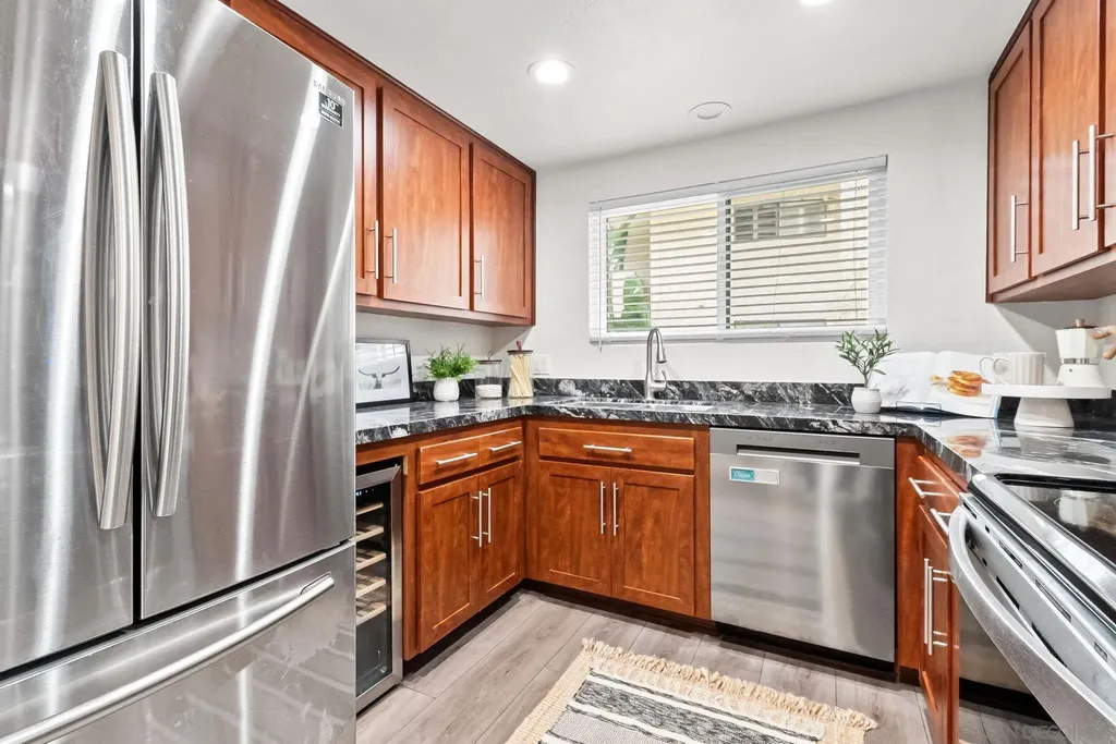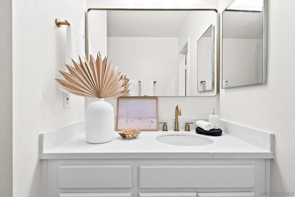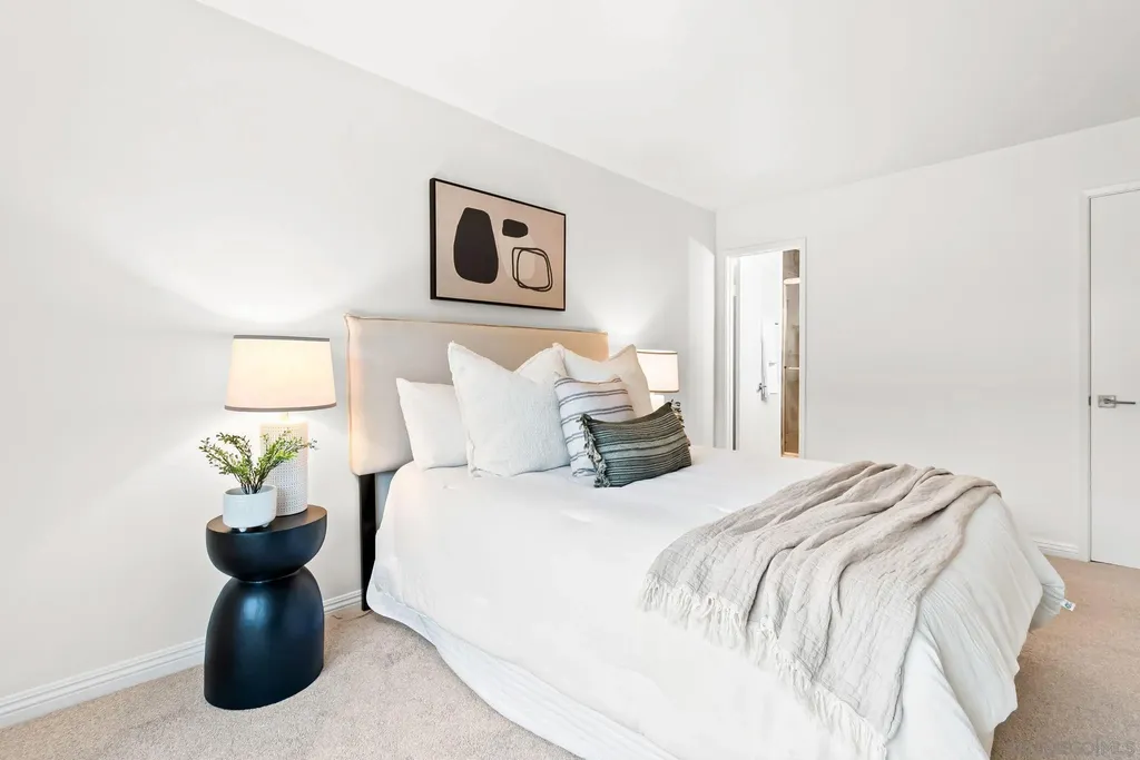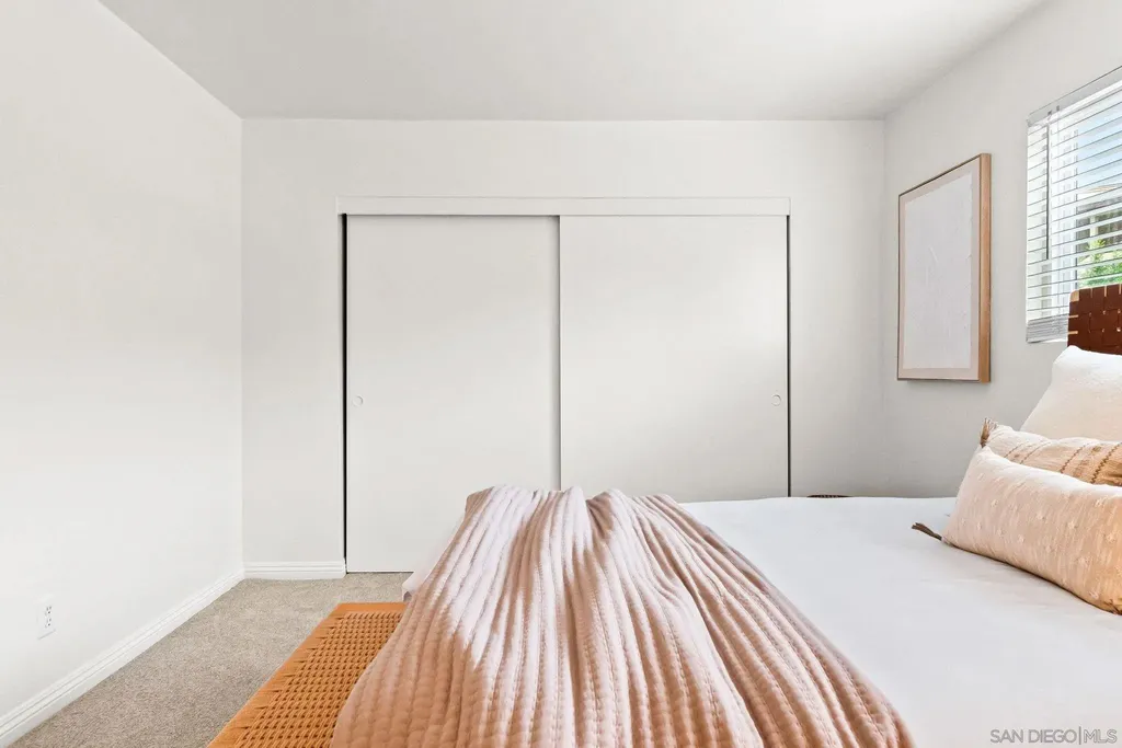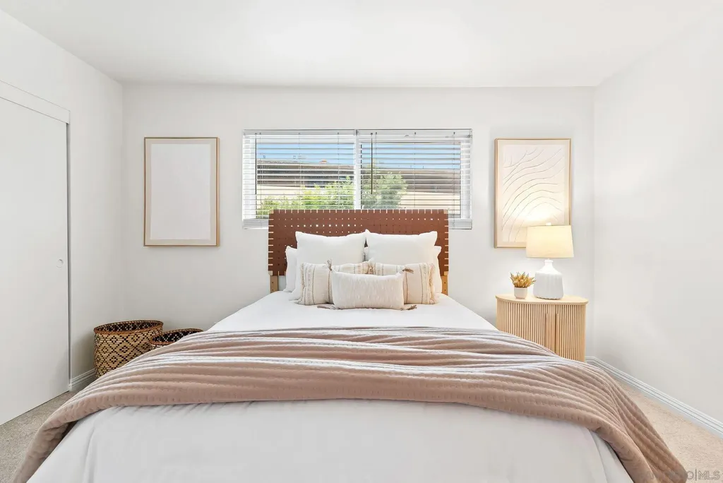 Discover effortless living in this spacious, ground-floor Bay Park condo - perfect for pet owners and those who love easy access to the community pool. Step inside to fresh paint, stylish new bathroom countertops, modern fixtures, and plush carpeting throughout, creating a pristine and inviting space. Corner unit adds additional window and natural light as well as only 1 shared wall. The primary bedroom has a peek-a-boo view of Mission Bay and Seaworld fireworks. Two generous parking spaces await - one covered and one uncovered - with an elevator for hassle-free trips to and from your vehicle. This home's unbeatable location places shopping, dining, public transportation, and major freeways just minutes away, making daily errands and commutes a breeze. Experience comfort, style, and supreme convenience in a sought-after neighborhood that truly feels like home.