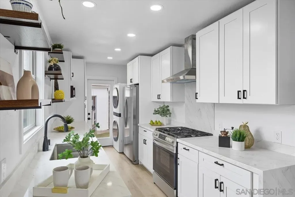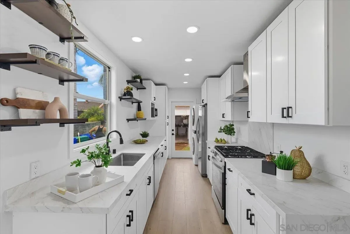 Fully renovated bungalow blending modern elegance with Japanese-inspired design. Exterior upgrades include new roof, exterior paint, plumbing, and landscaping. Inside, enjoy a redesigned kitchen with quartz countertops, quartz backsplash, and stainless steel appliances. The spacious primary bedroom has been thoughtfully redesigned with a new sliding door that opens to a private deck - your personal outdoor sanctuary. The expanded en-suite bathroom features a walk-in shower with a lighted shampoo cavity, modern fixtures, and a large walk-in closet for effortless organization. Updated hallway bath with quartz vanity and smart layout. Additional highlights: AC splitters, fireplace, recessed lighting, retextured ceilings/walls. Thoughtfully designed for comfort, style, and tranquility.