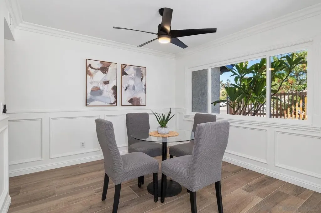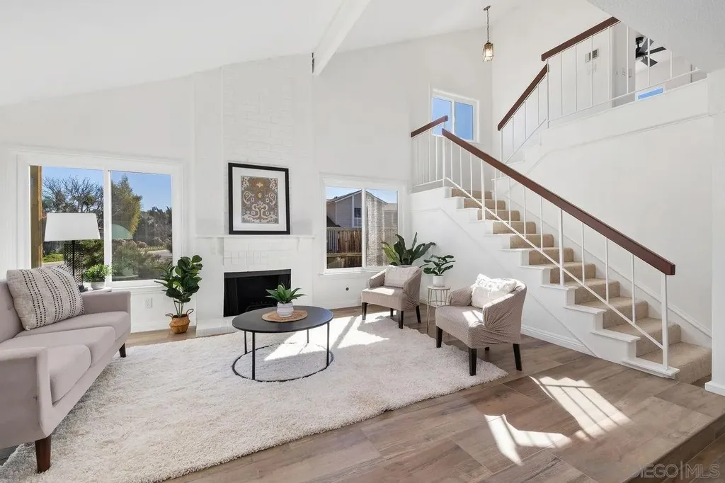 Beautifully updated 4 bedroom, 2.5 bath Tierrasanta home on a quiet cul-de-sac with a prime central San Diego location. This move in ready residence features a chef's kitchen with built-in appliances and a large wine fridge, completely remodeled bathrooms, updated flooring, fresh interior paint, dual-pane windows, and an upgraded HVAC system. The spacious family room is enhanced by a versatile loft, offering flexible living space and additional storage. An owned solar power system with battery adds energy efficiency and lower costs. Step outside to a large covered patio overlooking a spacious backyard with mature landscaping and fruit trees - perfect for relaxing or entertaining. Additional highlights include a finished garage with large attic storage and a newly designed front patio. Enjoy easy access to nearby walking trails and Mission Trails Regional Park, all while being minutes from everything San Diego has to offer.