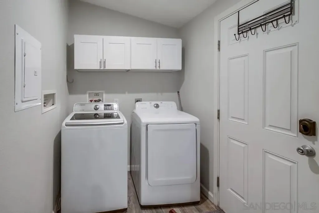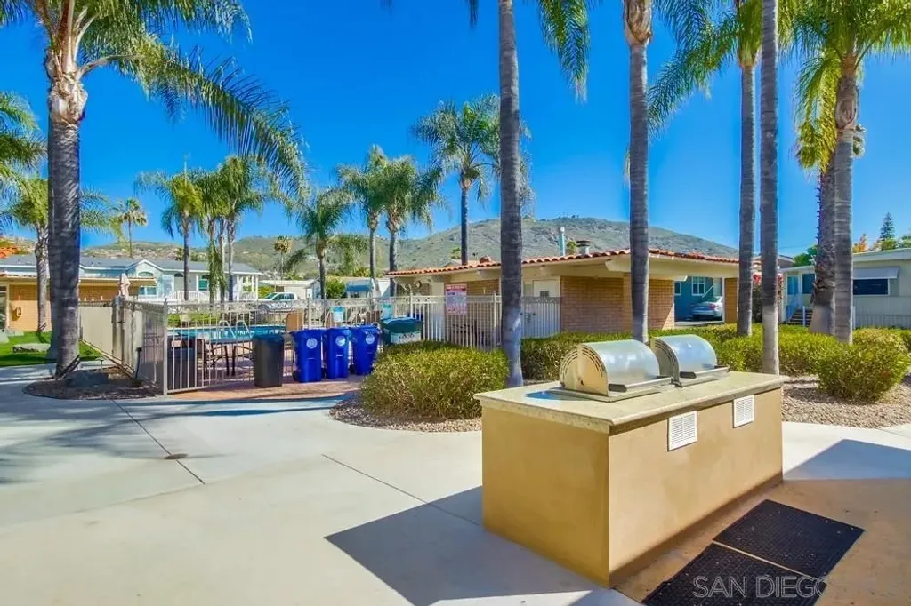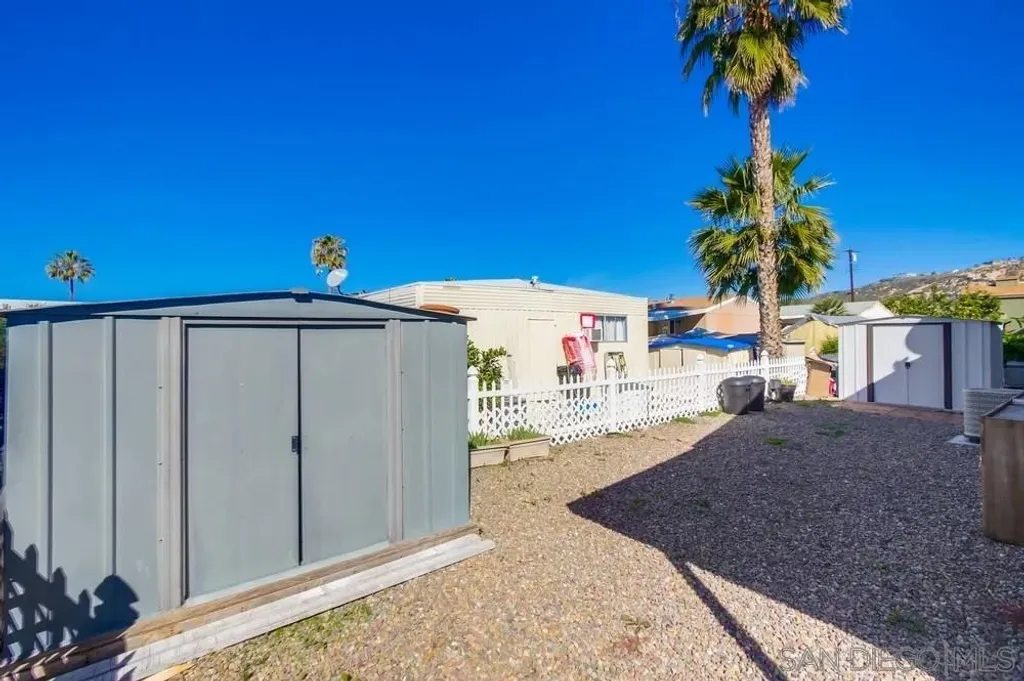 Beautifully maintained 3-bedroom, 2-bath manufactured home in 55+ community of Rancho Mesa in El Cajon offers 1,136 sq ft of comfortable living space. An open-concept layout with vaulted ceilings, a modern kitchen with quartz countertops, soft-close cabinets, and vinyl flooring throughout. The bright and airy floor plan creates a welcoming atmosphere. 2-car carport, and an in unit convenient washer/dryer. Multiple sheds provide extra storage space for your needs. Located in a vibrant 55+ community, this home offers a wealth of amenities, including a BBQ area, clubhouse, exercise room, and a gated entrance for added privacy and security. Residents also have access to a laundry facility, swimming pool, recreational area, and RV/boat parking. Enjoy weekly food assistance on Saturdays, transportation services, and a variety of social and recreational activities. With opportunities for volunteerism and an overall strong sense of community, this is a place you'll be proud to call home.