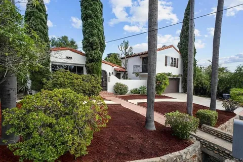 Discover the timeless charm of this Spanish-style home in the heart of Mount Helix, La Mesa. Nestled on a spacious .38 acre corner lot, this 3 bedroom, 2 bathroom retreat offers a unique blend of timeless character and endless potential. From the inviting courtyard to the private backyard patio, every space feels like a peaceful sanctuary. Whether you're dreaming of a garden expansion, a pool, or an ADU, this oversized lot offers endless possibilities. Step inside to find two separate living areas, each boasting dramatic beamed ceilings and cozy fireplaces, perfect for relaxing or entertaining. Fresh paint throughout highlights the homes natural warmth, complemented by classic hardwood floors. Whether youre drawn to the vintage charm or see the opportunity to upgrade and personalize, this property has it all. Enjoy the quiet, serene setting of Mount Helix while being just minutes from downtown La Mesas quaint shops and restaurants, Grossmont Center, and quick freeway access to downtown San Diego. Don't miss this incredible opportunity to own a slice of paradise in La Mesa, schedule your showing today!