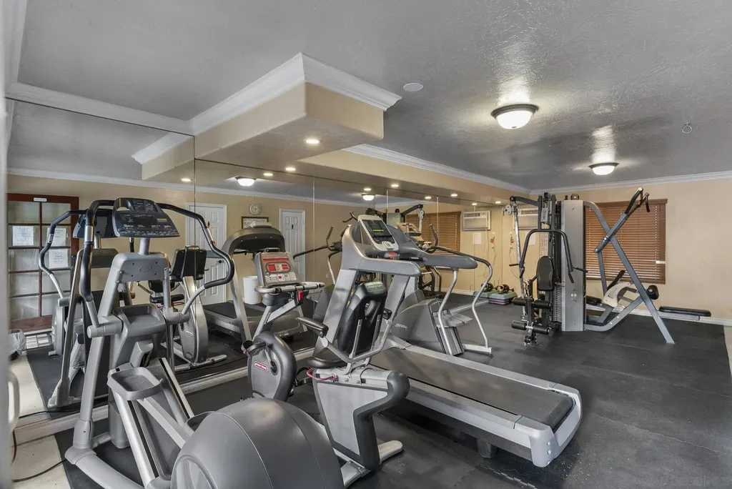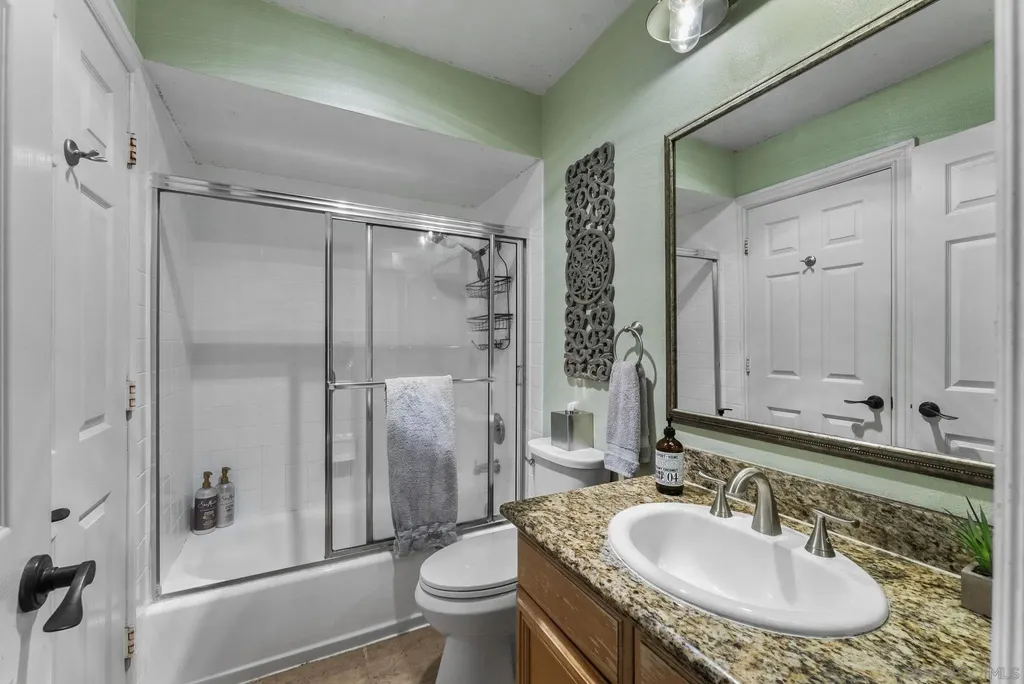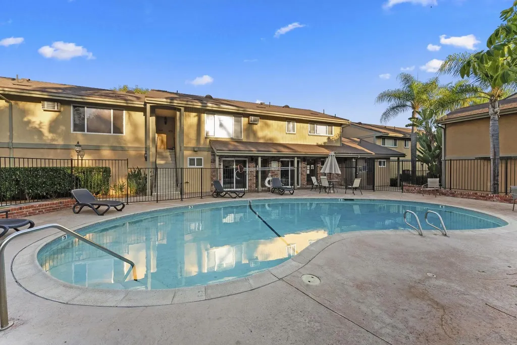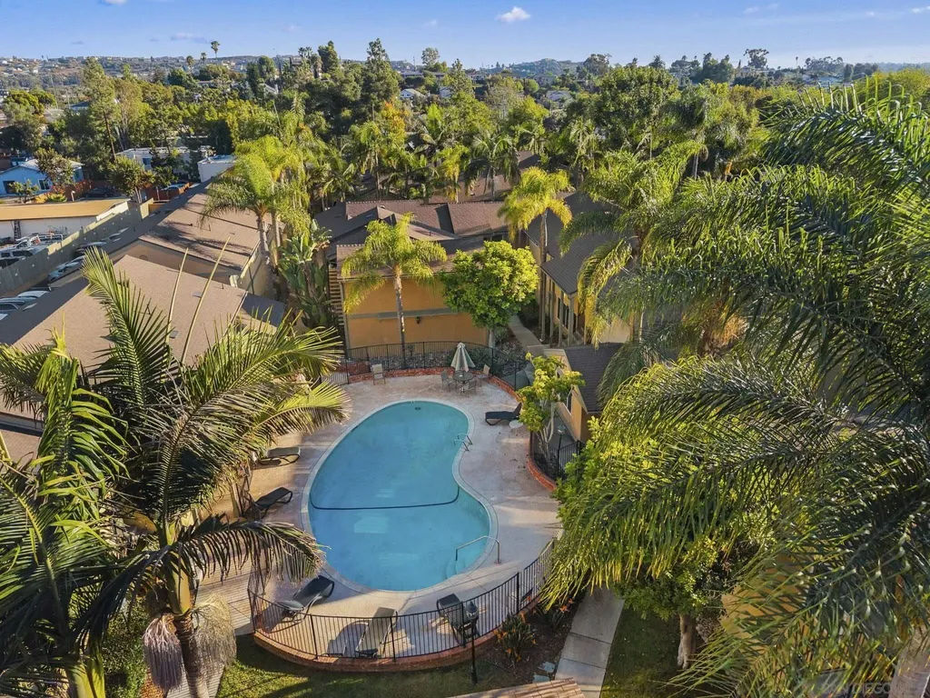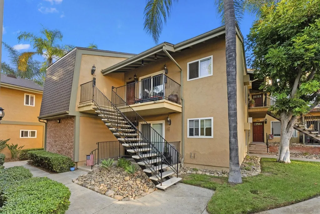 Looking to call the community of La Mesa "Jewel of the Hills" home? Check out this upper level corner unit 1bed/1bath 760sqft condo w/private entry, balcony with view of the pool area, in unit laundry, & 2 assigned parking spaces! Step inside the living room with crown molding, recessed lighting & slider to the outdoor space to unwind & relax. Separate dining area with ceiling fan and wall A/C unit. The kitchen features warm maple cabinets, granite counters, & a window over sink to let the natural light in. SS appliances w/electric stove, dishwasher, microwave, & fridge. Well sized bedroom w/west facing window lets the sun shine in as you enjoy the sunset view. Interior French doors open to a bonus walk in closet/laundry room area (Washer/Dryer inc) off bedroom that leads into the dual entry bathroom, this provides access to the bathroom from the bedroom separate from the living space for guests. Dual pane windows & attic space for ample storage. Williamsburg Square complex offers wonderful amenities including well kept lush grounds, gym, men & women's sauna & showers, a clubhouse with kitchen that can be reserved to host gatherings, & lot for visitor parking behind the complex. Low HOA fee of $355/month inc water, trash, & sewer. Enjoy the high walkability of this central location just S of 8 fwy on a cul-de-sac street. Near local favorites like Next Door Wine Bar, Himalayan Cuisine, Better Buzz Coffee, Carnitas Uruapan, & Riviera Supper Club. Short Distance to La Mesa Village, Cowles Mtn, Lake Murray, Grossmont Center & Hospital, Costco & SDSU. Close to public transit. Units in this complex do not come on the market often! Great way to step into your path of homeownership or add to your investment portfolio!