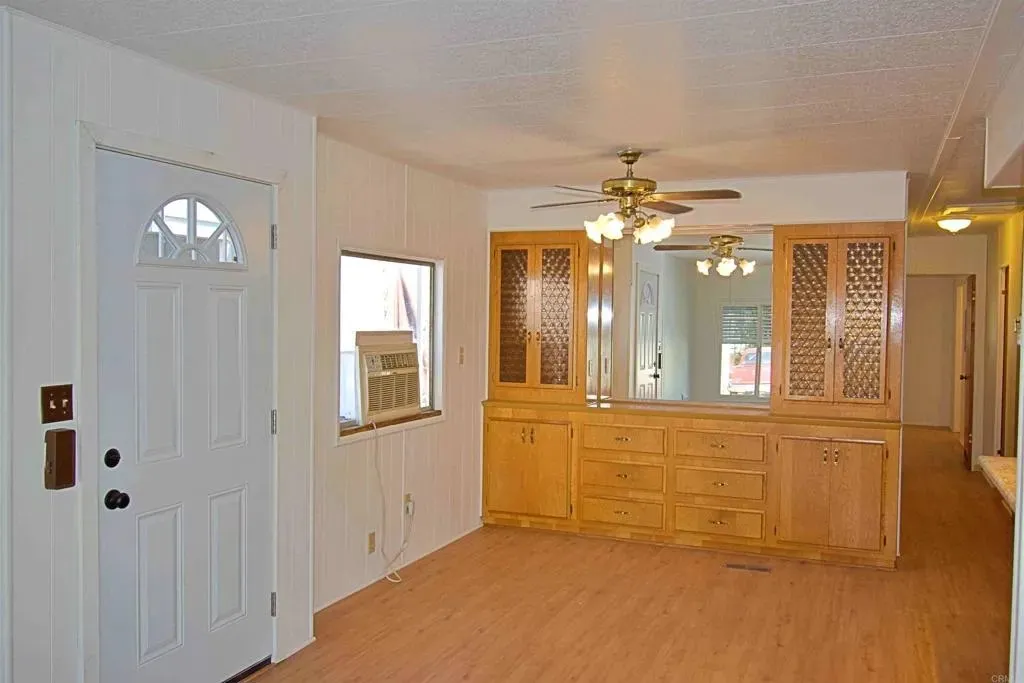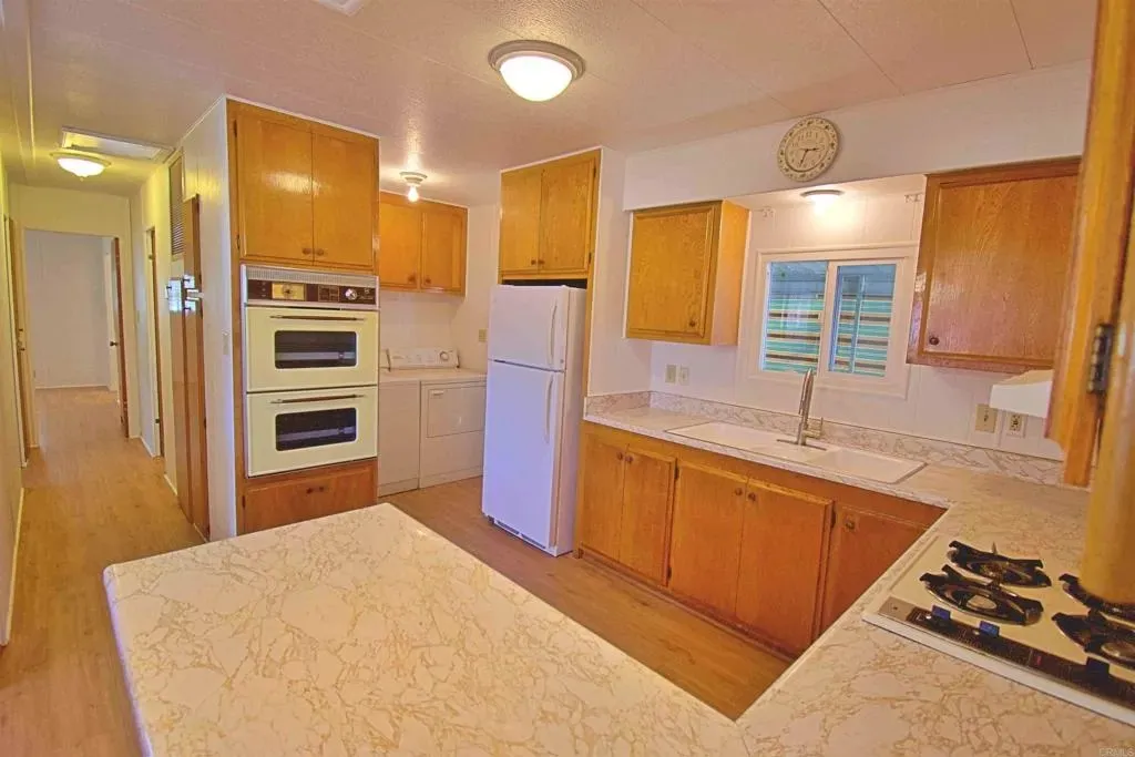 Located in the heart of Chula Vista next to i-5 and 54 freeways this well-maintained move-in ready mobile home offers exceptional value with a space rent of just $1,075/month plus utilities. Enjoy a spacious kitchen with remodeled sink, dining area, indoor laundry, and included appliances. Dual-paned windows, ample storage, and a covered 2-car carport. This 55+ community also offers free access to a community room with kitchen.