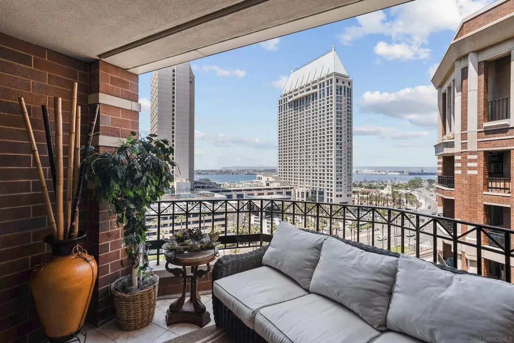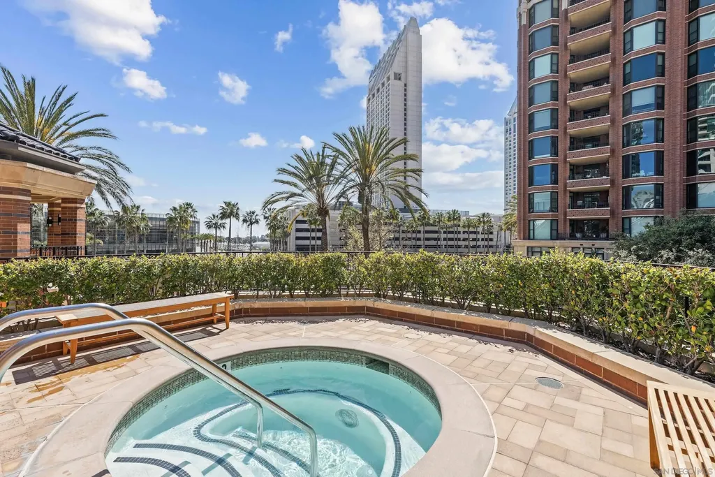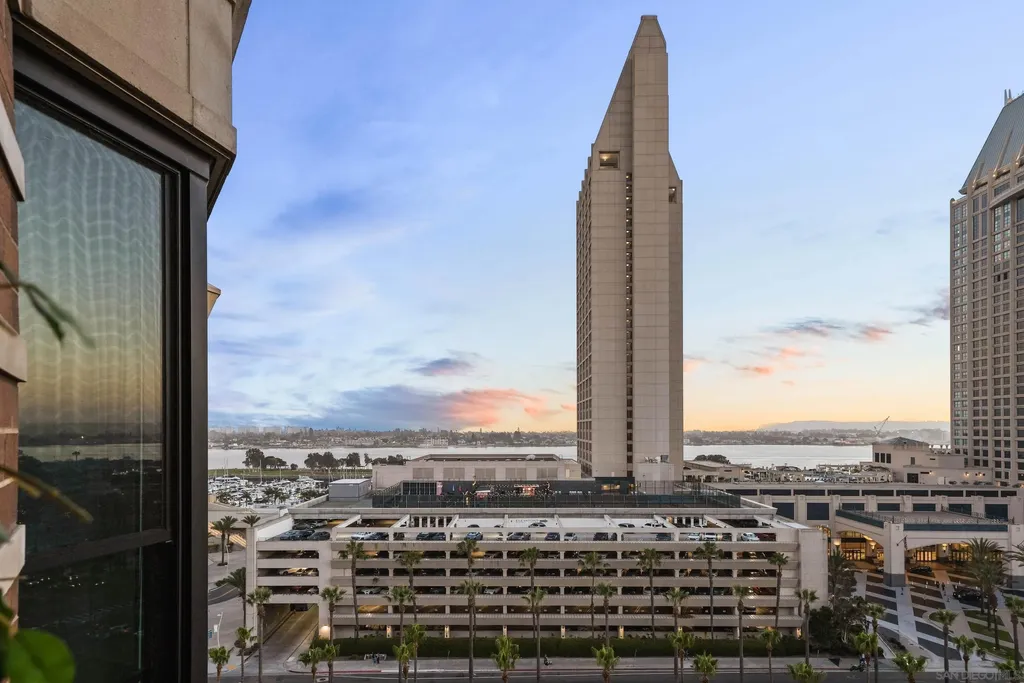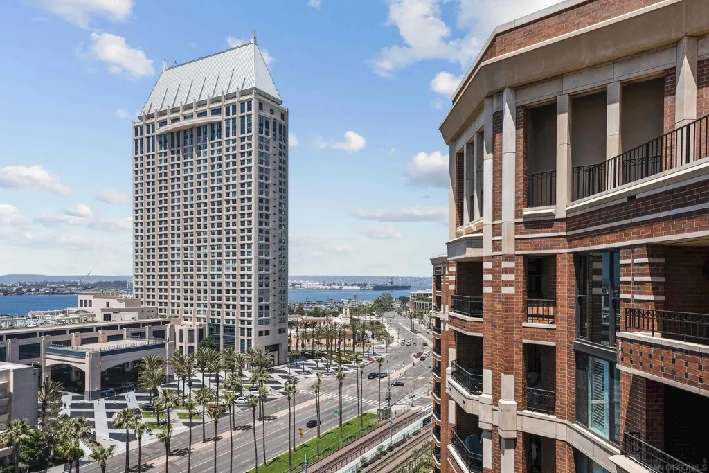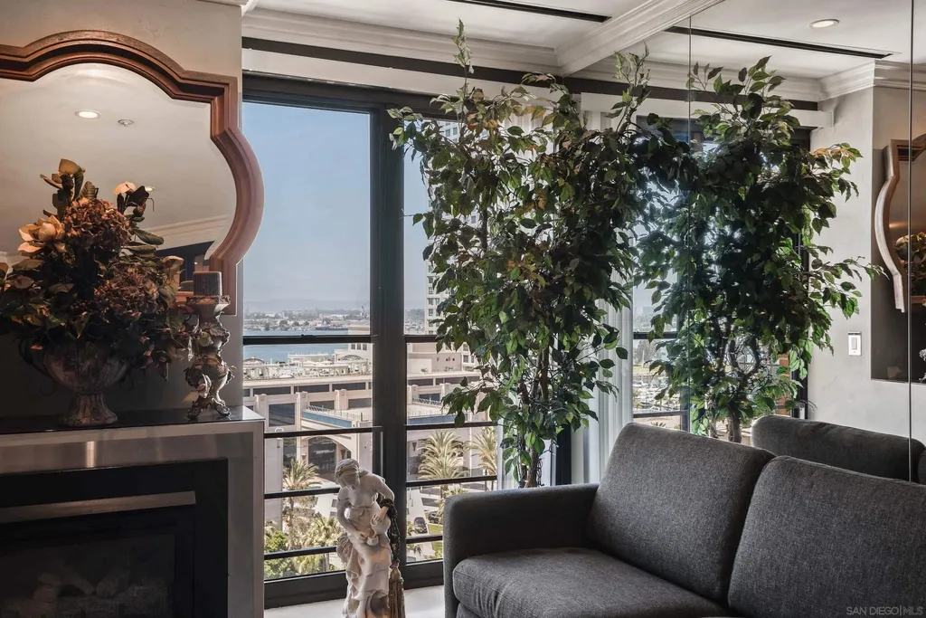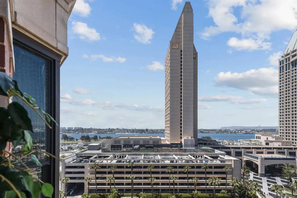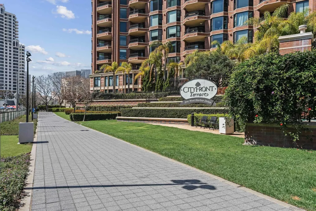 Stunning 1BR + bonus room, 1BA penthouse in the prestigious CityFront Terrace. Located on the 13th floor with no units above, this home offers sweeping bay views from the bedroom, living room, and spacious private patio for unmatched sunsets and views all the way to Point Loma. Virtually soundproof, the unit features a top-of-the-line kitchen with premium stainless steel appliances, in-unit laundry, a cozy fireplace, and a flexible bonus room perfect for guests or a home office. Unit has patio access from bedroom or living room. The spacious, open floor plan offers seamless indoor-outdoor living, ideal for relaxing or entertaining. Includes three assigned parking spaces plus valet - an exceptionally rare offering in downtown San Diego. Just steps to Petco Park, Seaport Village, the Convention Center, and the city's best dining, shopping, and entertainment. CityFront Terrace is a full-service luxury community in the heart of the Marina District. Amenities include two heated pools, (a 75-ft lap pool and splash pool), spa, saunas, and a 3,500 sq ft fitness center. Residents enjoy the award-winning Urban Canyon: two acres of lush gardens, majestic oak trees, a 90-ft waterfall, BBQ area, gazebo, fire pit, and walking paths. The building also offers a business center, conference room, EV charging stations, bike storage, secure underground parking, 24-hour concierge, and premium services including package handling, dry-clean drop-off, and in-home maintenance. A rare opportunity to own a top-floor residence in one of San Diego's most iconic and amenity-rich communities.