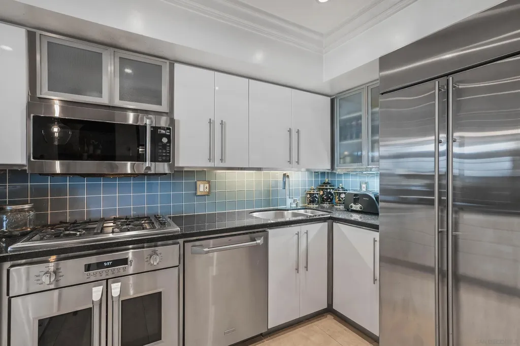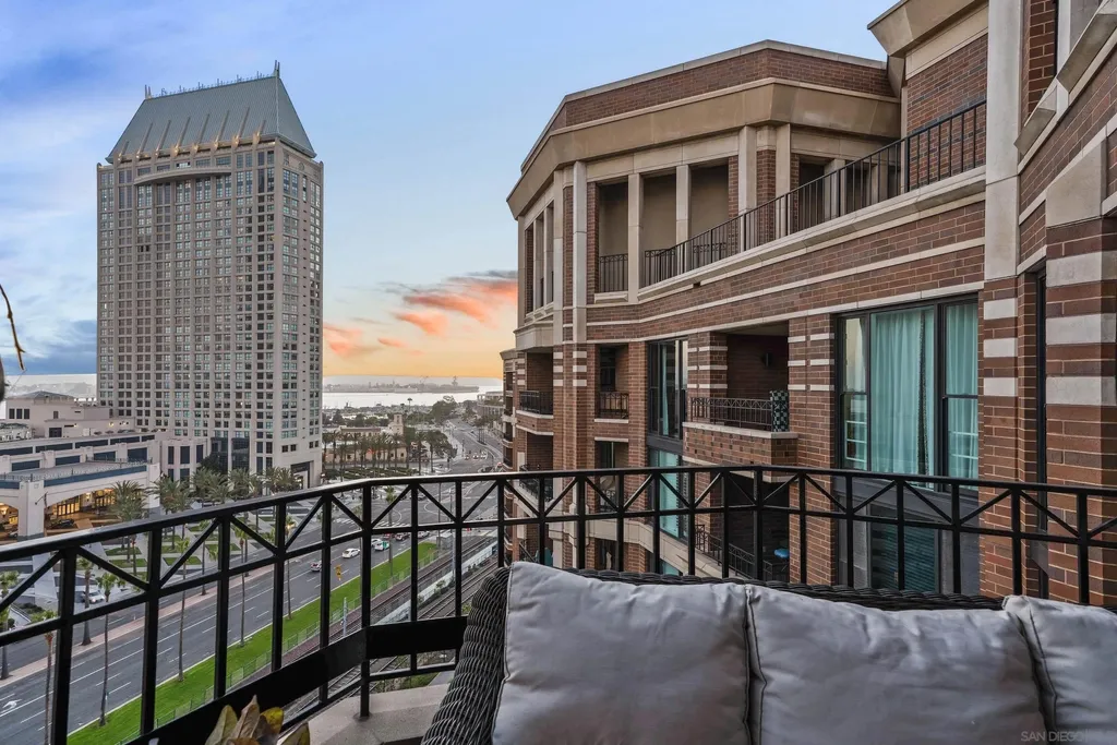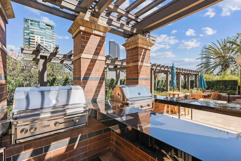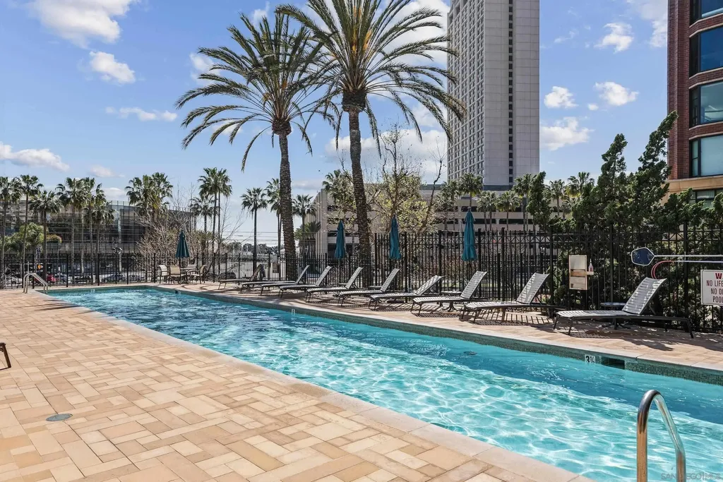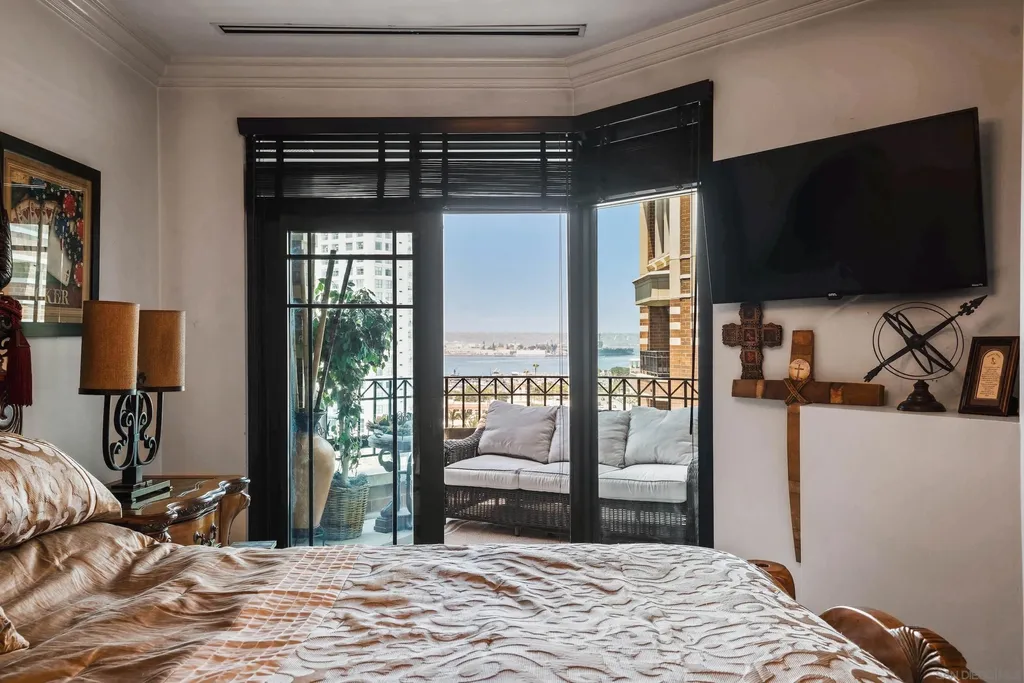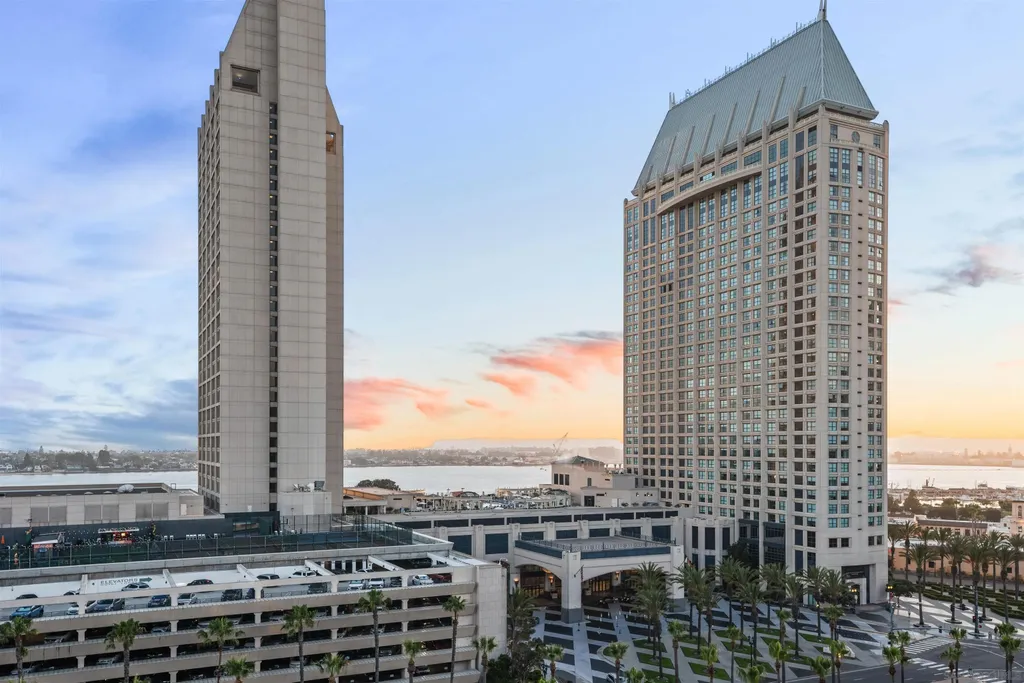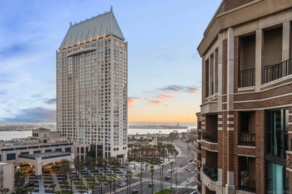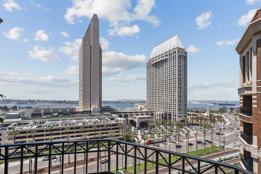 Stunning 1BR + bonus room, 1BA penthouse in the prestigious CityFront Terrace. Located on the 13th floor with no units above, this home offers sweeping bay views from the bedroom, living room, and spacious private patio for unmatched sunsets and views all the way to Point Loma. Virtually soundproof, the unit features a top-of-the-line kitchen with premium stainless steel appliances, in-unit laundry, a cozy fireplace, and a flexible bonus room perfect for guests or a home office. Unit has patio access from bedroom or living room. The spacious, open floor plan offers seamless indoor-outdoor living, ideal for relaxing or entertaining. Includes three assigned parking spaces plus valet - an exceptionally rare offering in downtown San Diego. Just steps to Petco Park, Seaport Village, the Convention Center, and the city's best dining, shopping, and entertainment. CityFront Terrace is a full-service luxury community in the heart of the Marina District. Amenities include two heated pools, (a 75-ft lap pool and splash pool), spa, saunas, and a 3,500 sq ft fitness center. Residents enjoy the award-winning Urban Canyon: two acres of lush gardens, majestic oak trees, a 90-ft waterfall, BBQ area, gazebo, fire pit, and walking paths. The building also offers a business center, conference room, EV charging stations, bike storage, secure underground parking, 24-hour concierge, and premium services including package handling, dry-clean drop-off, and in-home maintenance. A rare opportunity to own a top-floor residence in one of San Diego's most iconic and amenity-rich communities.