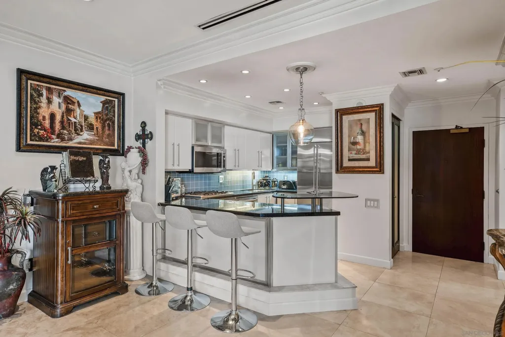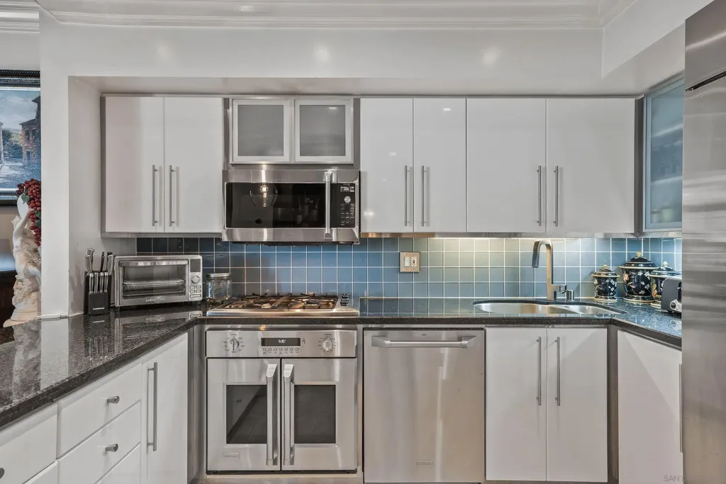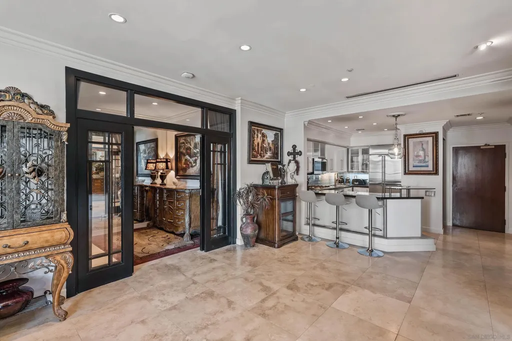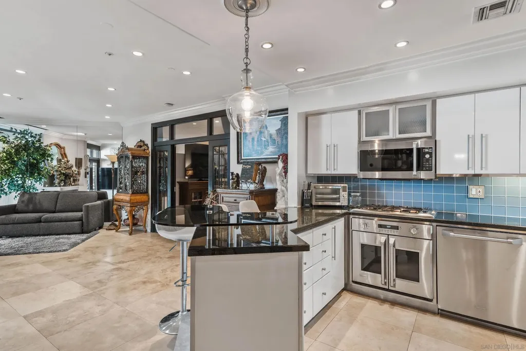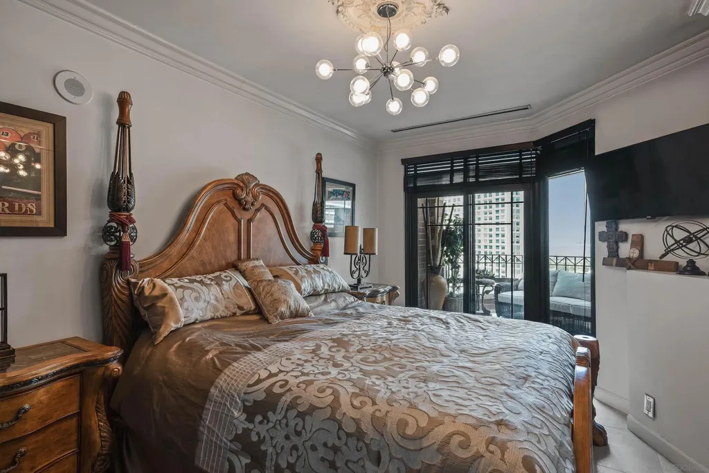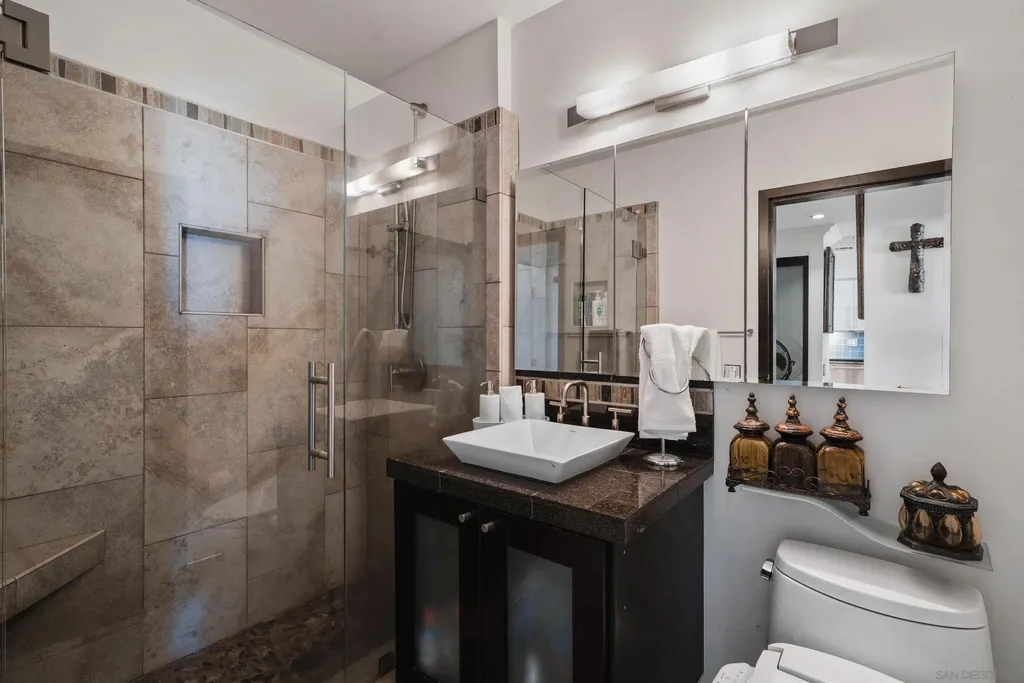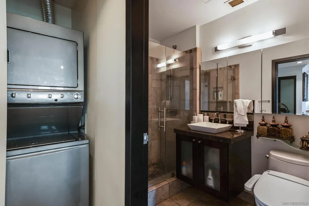Stunning 1BR + bonus room, 1BA penthouse in the prestigious CityFront Terrace. Located on the 13th floor with no units above, this home offers sweeping bay views from the bedroom, living room, and spacious private patio for unmatched sunsets and views all the way to Point Loma. Virtually soundproof, the unit features a top-of-the-line kitchen with premium stainless steel appliances, in-unit laundry, a cozy fireplace, and a flexible bonus room perfect for guests or a home office. Unit has patio access from bedroom or living room. The spacious, open floor plan offers seamless indoor-outdoor living, ideal for relaxing or entertaining. Includes three assigned parking spaces plus valet - an exceptionally rare offering in downtown San Diego. Just steps to Petco Park, Seaport Village, the Convention Center, and the city's best dining, shopping, and entertainment. CityFront Terrace is a full-service luxury community in the heart of the Marina District. Amenities include two heated pools, (a 75-ft lap pool and splash pool), spa, saunas, and a 3,500 sq ft fitness center. Residents enjoy the award-winning Urban Canyon: two acres of lush gardens, majestic oak trees, a 90-ft waterfall, BBQ area, gazebo, fire pit, and walking paths. The building also offers a business center, conference room, EV charging stations, bike storage, secure underground parking, 24-hour concierge, and premium services including package handling, dry-clean drop-off, and in-home maintenance. A rare opportunity to own a top-floor residence in one of San Diego's most iconic and amenity-rich communities.