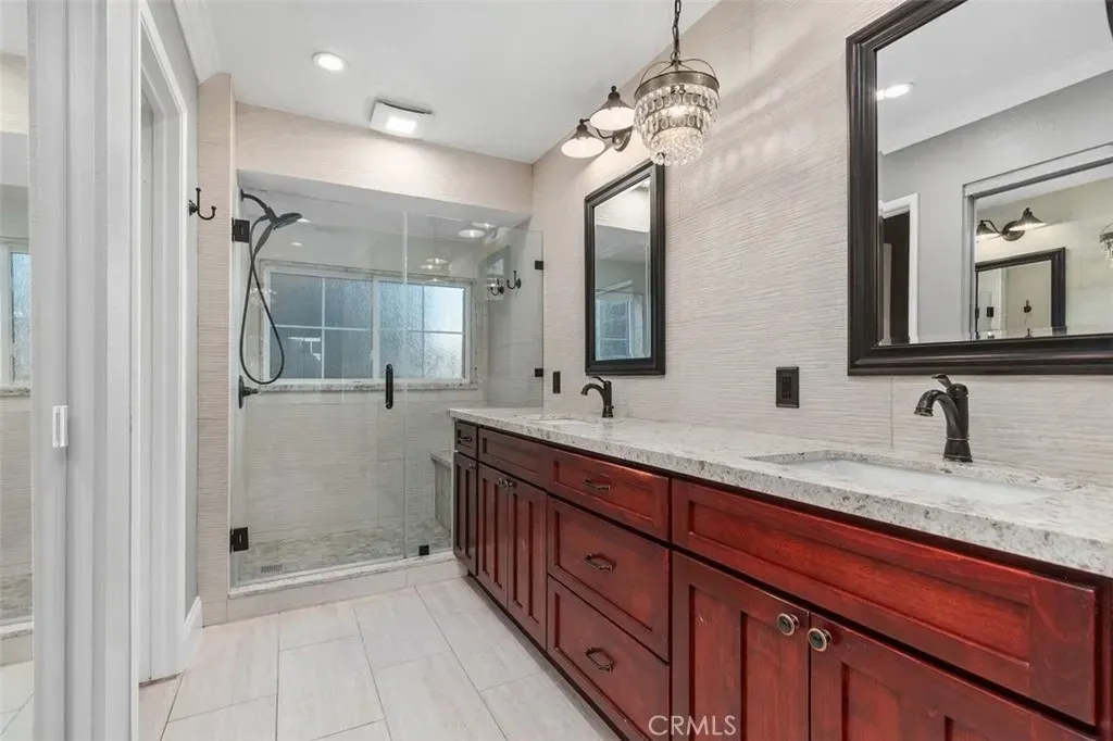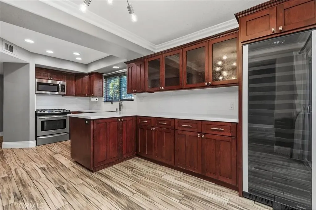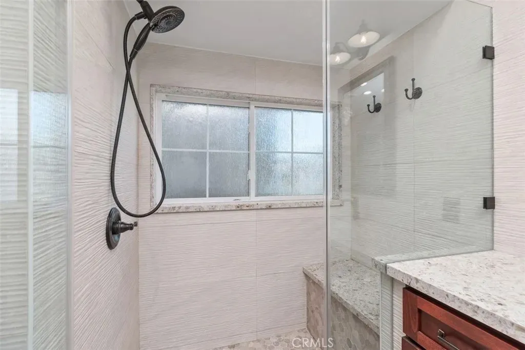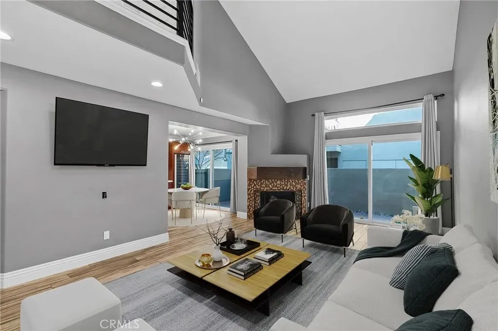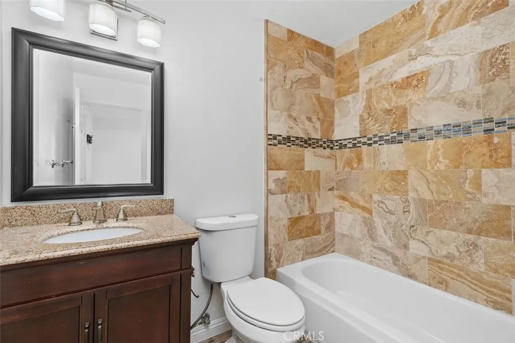 Welcome to the Laurelwood Community, where comfort, style, and a touch of finally, a place that checks all the boxes come together. This beautifully upgraded 3-bedroom, 3-bathroom end-unit townhome offers 1,615 square feet of smartly designed living space, starting with the wood-look tile flooring that spans the entire first level. The kitchen delivers on both form and function with quartz counters, ample cabinetry, and stainless steel appliancesbecause yes, you can have good taste and good storage at the same time. A main-floor bedroom and full bath offer ideal flexibility for guests, in-laws, or that home office you swear youre going to use. Upstairs, youll find two spacious en suite bedrooms, including a remodeled primary suite featuring dual sinks, a cedar-lined walk-in closet, and a walk-in shower that basically begs you to linger. Fresh brand-new carpet keeps the second floor feeling plush, while the enclosed patio out back is perfect for relaxing or squeezing in some outdoor time without leaving home. Located at the quiet rear portion of the community with ample guest parking, this home also enjoys access to two sparkling community pools and spas, because California living just hits different with options. Top it off with a 2-car attached garage, inside laundry room and walk-ability to restaurants, grocery stores, and other destinations and youve got a turnkey home that blends convenience, comfort, and elevated style in all the right ways.
