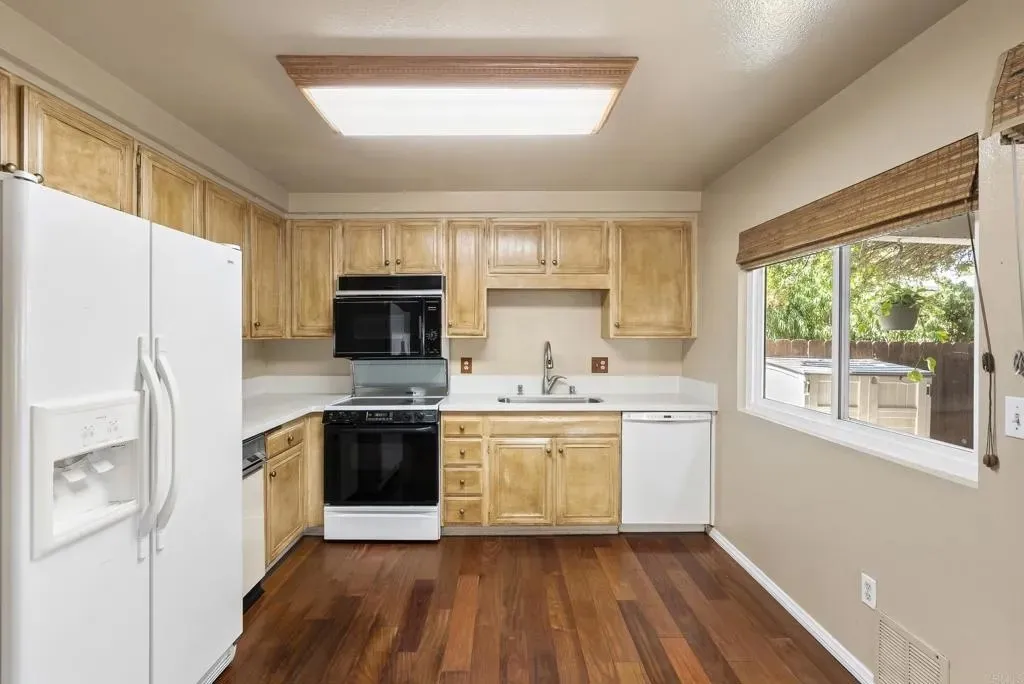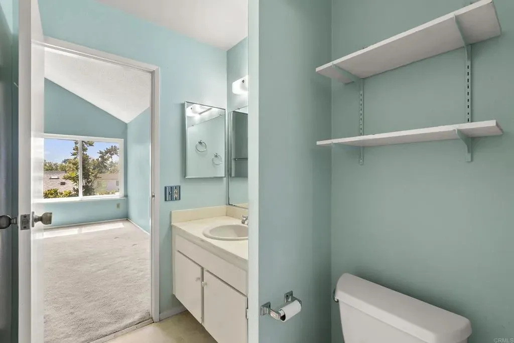 Located in the highly sought-after neighborhood of Villa Portofino in the heart of Tierrasanta, this 4-bedroom, 2-bathroom home is a blank canvas ready for your personal touch. The living room offers a warm welcome with its high vaulted ceilings, rich vinyl plank flooring, plantation shutters, and a beautiful brick fireplace as the focal point. One bedroom and a full bathroom are conveniently situated on the first floor. Upstairs, you'll find the bright and spacious primary bedroom featuring vaulted ceilings and abundant natural light, along with two additional generously sized guest bedrooms. Enjoy the private, wrap-around backyard and the communitys park-like setting, which includes a pool, spa, tennis courts, pickleball courts, basketball courts, a clubhouse, and a playground. Additional features include a two-car carport, an extra parking space, and a low HOA fee.