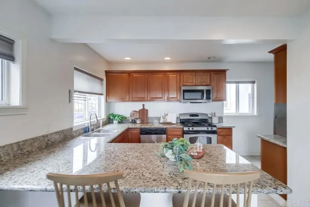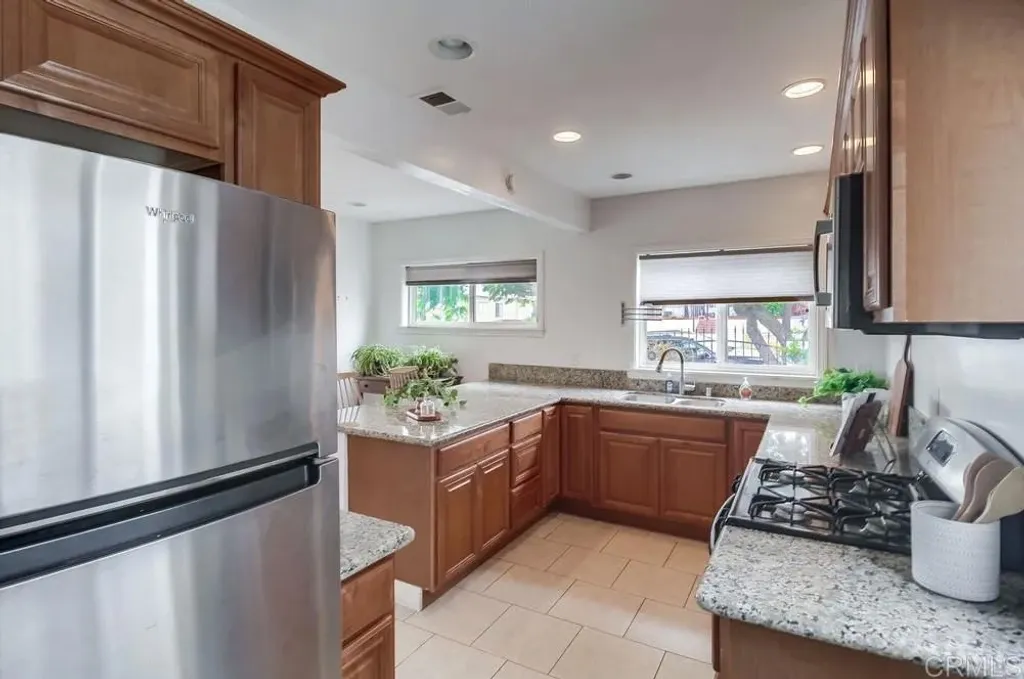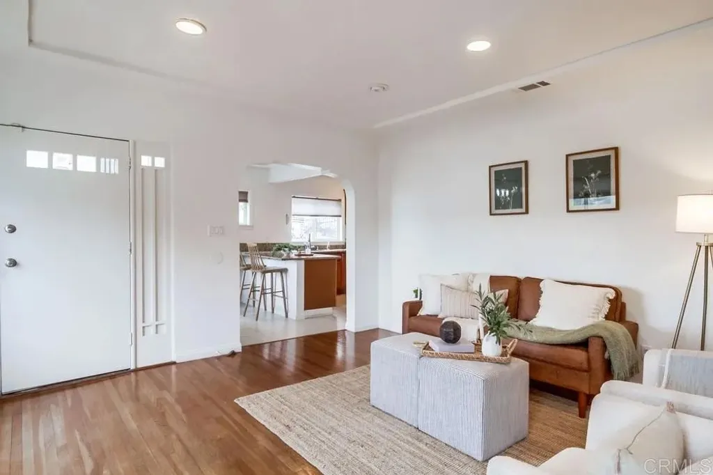 This stunning Spanish-style home in National City radiates timeless charm and elegance. From the moment you arrive, the property's curb appeal is impressive, featuring lush landscaping and vibrant colors. Inside, gleaming hardwood floors create a warm ambiance throughout, complementing the upgraded kitchen with granite countertops, custom cabinetry, stainless steel appliances, and a granite breakfast bar. The spacious family room features a grand fireplace and serene outdoor views, while the bedrooms continue the theme of beautiful flooring. The primary suite includes a walk-in closet for added convenience. The property is gated for added privacy and features a separate laundry room. The garage has been converted into a 1-bedroom, 1-bathroom studio with a walk-in closet. Permits for this conversion are unknown, as the seller purchased the property in its current condition. Outdoors, enjoy a delightful patio area complete with a storage shedperfect for relaxing or entertaining. An incredible home at a fabulous pricedont miss this opportunity! The Special Loan Program is available for this property