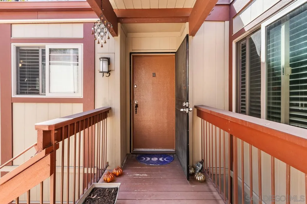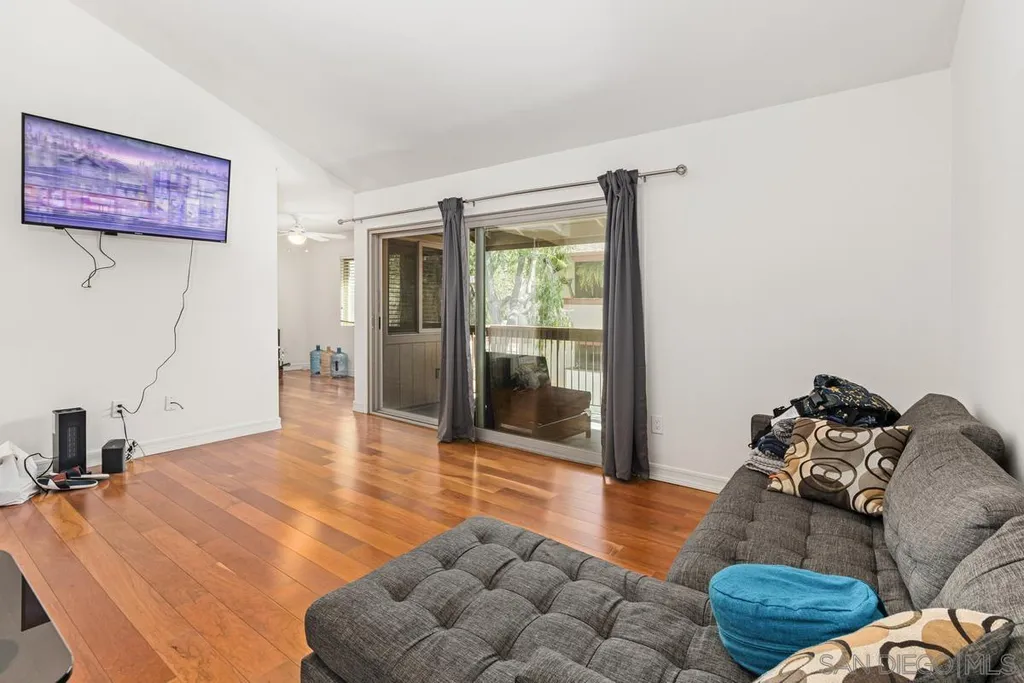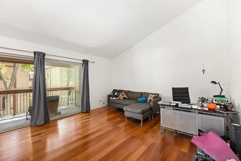 This upper unit is ready for your clients to come and make their own. Vaulted ceilings give the space a great open feeling. This two-bedroom, two-bath home already has some great features. Updated dual pane windows; Wood floors; In unit laundry hook-ups; Assigned parking space and a large, covered balcony complete with storage to mention just a few. The complex offers two pools, two spas and a community room. The location cannot be beat with easy access to Schools, Shops and Freeways.