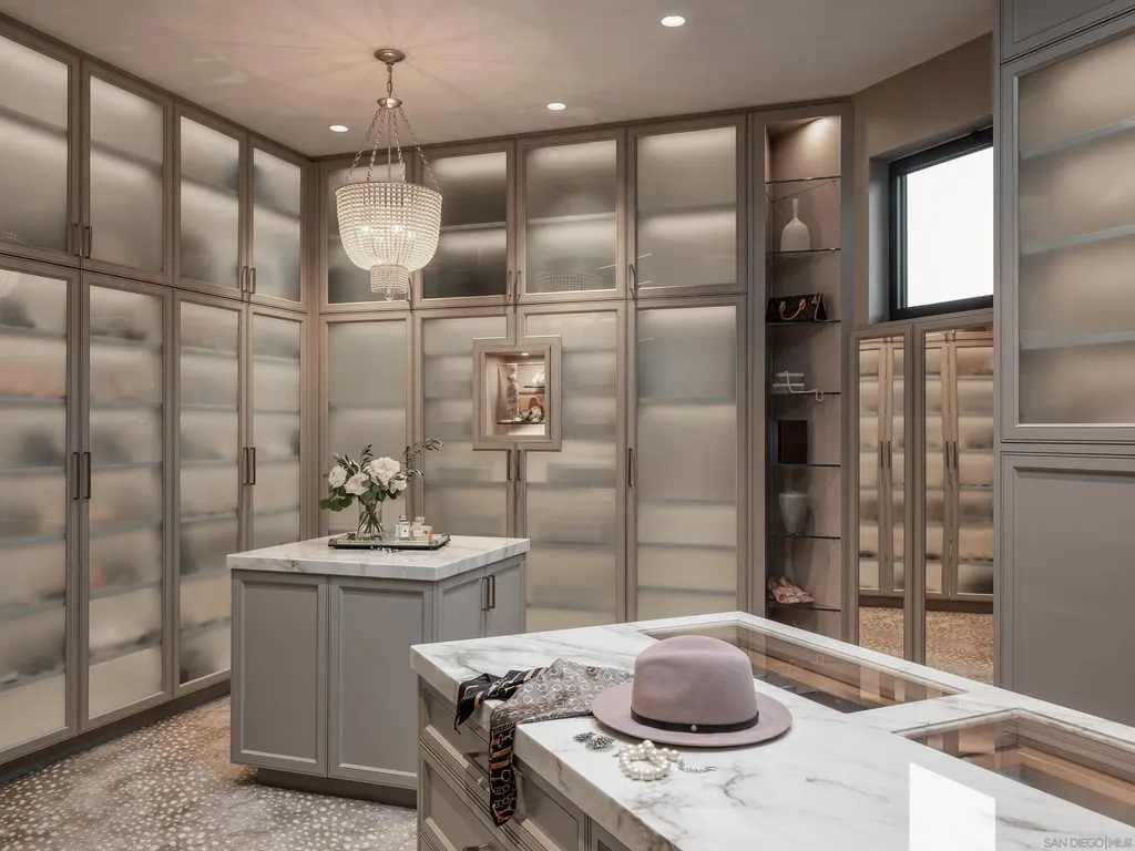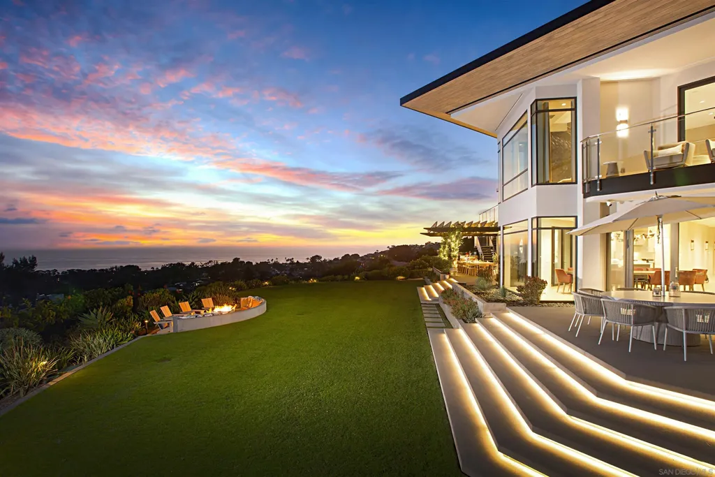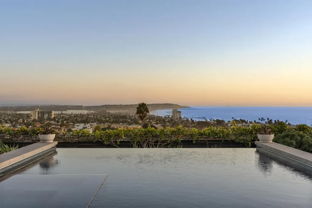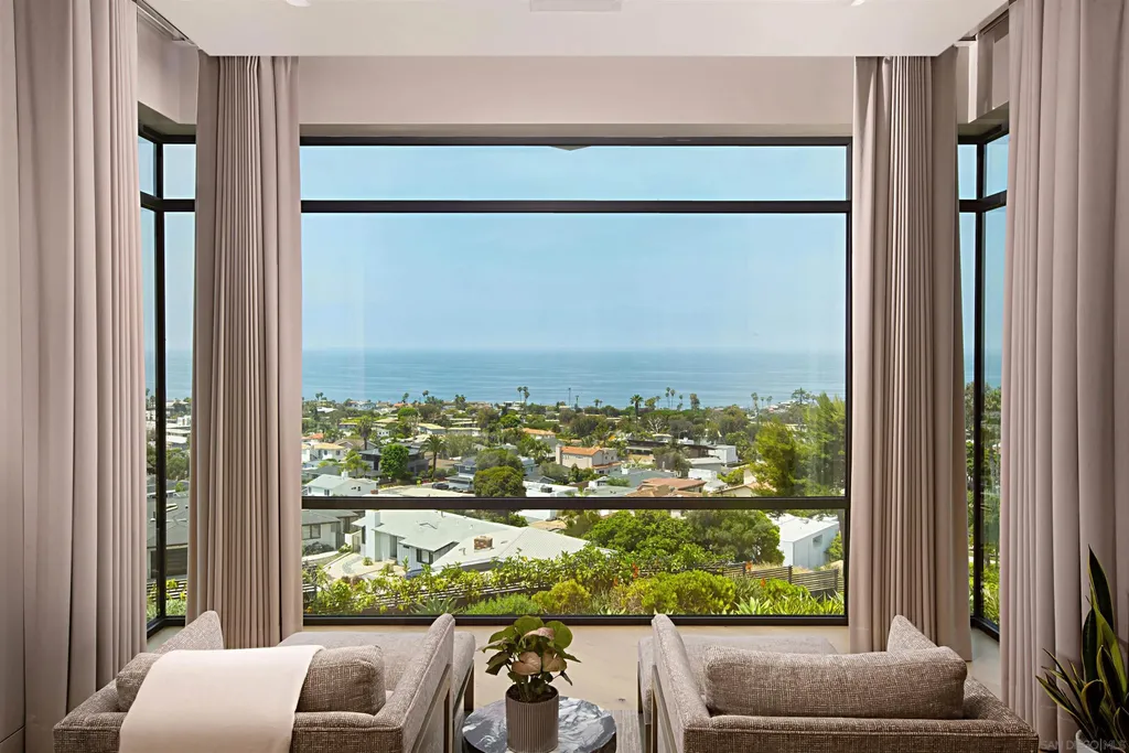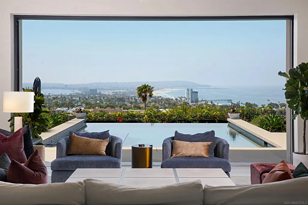 La Jolla's most expansive view features a 220-degree panorama from this almost one-acre trophy lot. A truly peerless site offers unmatched privacy and recent new construction. It is set with the most desirable southern and westerly unlimited orientation. Rebuilt in 2020, it includes the most current amenities and timeless design. Curated to create a home that lacks nothing to be desired, this serene compound is complete with a two-bedroom guesthouse, secure gated entry, home theatre, gym with infared heaters, infinity-edge pool, spa, elevator-ready setup, solar and battery system, expansive flat yard, full-size volleyball court, designated playroom, enviable his and her closets, and dueling offices. Modern amenities of convenience and comfort fill each living area, combined with unobstructed ocean, bay, island, and city-light views throughout. The interior evokes a sense of awe, while the elevation frames your vantage point for inspiration throughout the day. This is La Jolla's most complete offering.