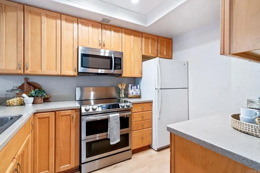 New Price! Highly sought-after Strawberry Hills townhome in central La Mesa. Living areas feature vaulted ceilings, recessed lighting, and laminate flooring, with a convenient half bath for guests downstairs. Dining area opens to a quaint front patio. Upstairs, the oversized primary bedroom offers two closetsone a walk-inplus generous hallway linen storage. Two additional bedrooms share a full bath. Attached two-car garage with laundry area, transferable solar ownership, at $198/month. The Community amenities include a pool, spa, and newer workout room, all with mature landscaping and a low $425 HOA. Easy access to Grossmont Center, hospitals, Costco, and SDSU.
