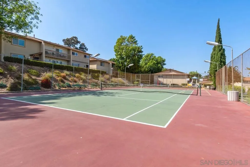 Welcome to this charming 2-story, 2-bedroom/1.5-bath townhome near serene Lake Murray with your own private garage and in-unit laundry. This beautifully updated home offers a recently renovated kitchen, complete with brand new convection oven/microwave/air fryer, oversized quartz countertops and stainless steel finish appliances. The property boasts smooth textured ceilings and upgraded vinyl plank flooring throughout the downstairs, seamlessly connecting the living, dining, and kitchen areas, which lead out to the spacious private courtyard (approx. 15' x 18') providing an ideal space for outdoor living and relaxing in style, or for your favorite gardening activities. The primary bedroom offers a private balcony where you can savor your morning coffee while enjoying a gentle breeze and picturesque surroundings, as well as views of Mount Helix in the distance. The well-maintained community amenities include a pool and spa, tennis court, basketball and pickleball, and two separate playgrounds for the kids, and a community room for larger get togethers. Conveniently located near Lake Murray, Mission Trails Regional Park and Cowles Mountain, residents can easily indulge in outdoor activities such as hiking, biking, and tennis or simply taking a leisurely stroll around the lake. With its prime location, this townhouse offers effortless access to shopping, dining, and entertainment with Grossmont Center located nearby, as well as close proximity to groceries and most of life's other necessities. Additional features include: soft-closing cabinets & drawers in the kitchen; ceiling fans in the living room and both bedrooms; dual paned windows throughout; plantation shutters; stacked stone backsplash; stainless steel finish appliances; spa bathtub; new water heater; additional storage under the stairs; upgraded upstairs bath with travertine style tile floor and shower.