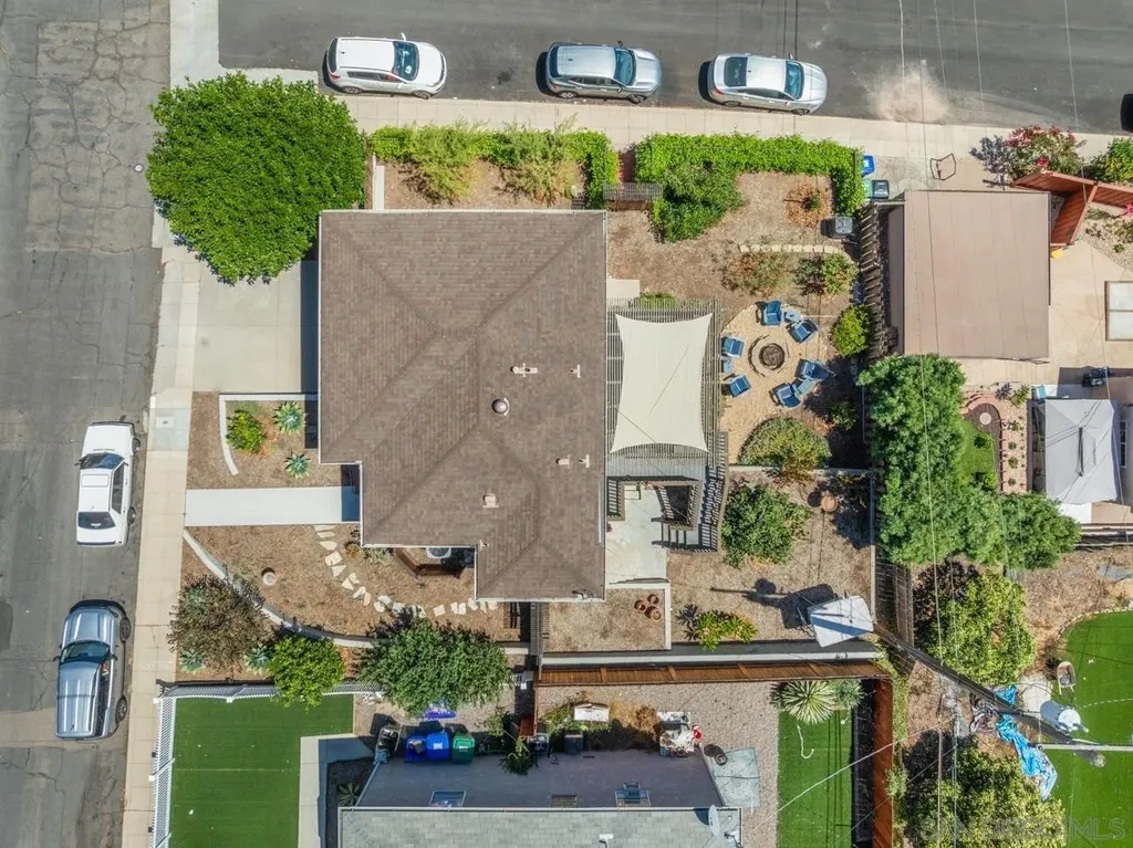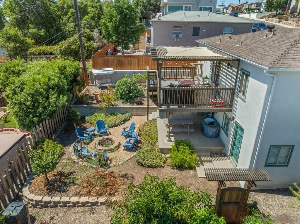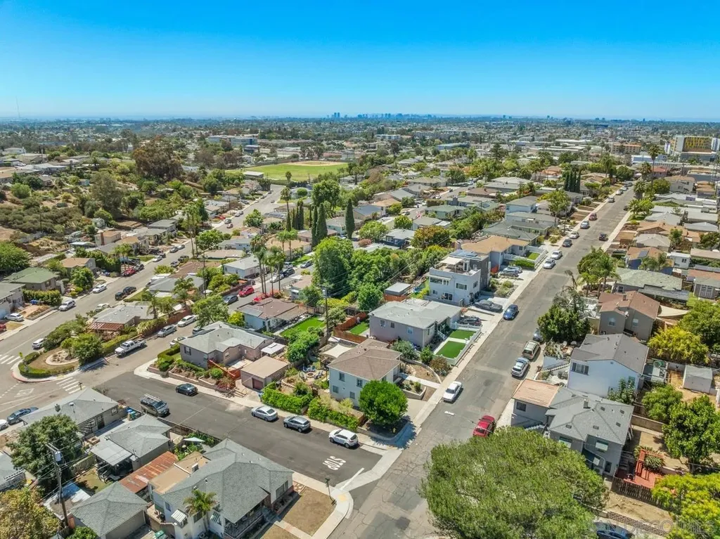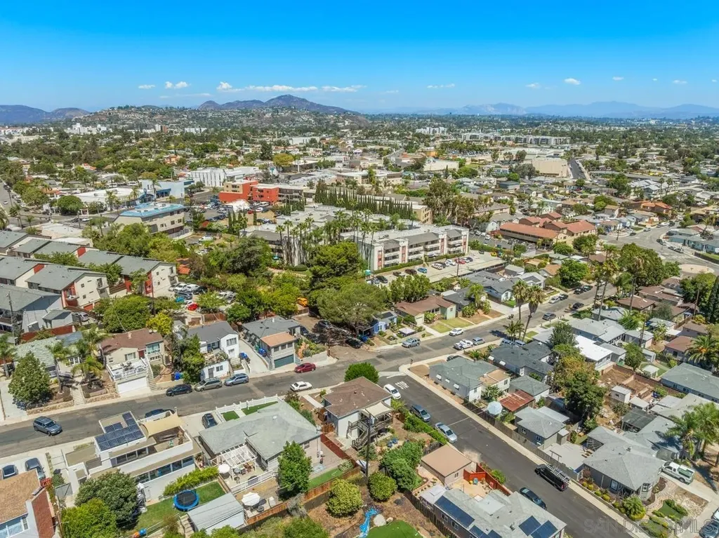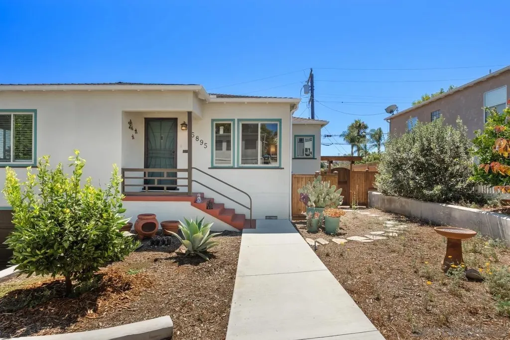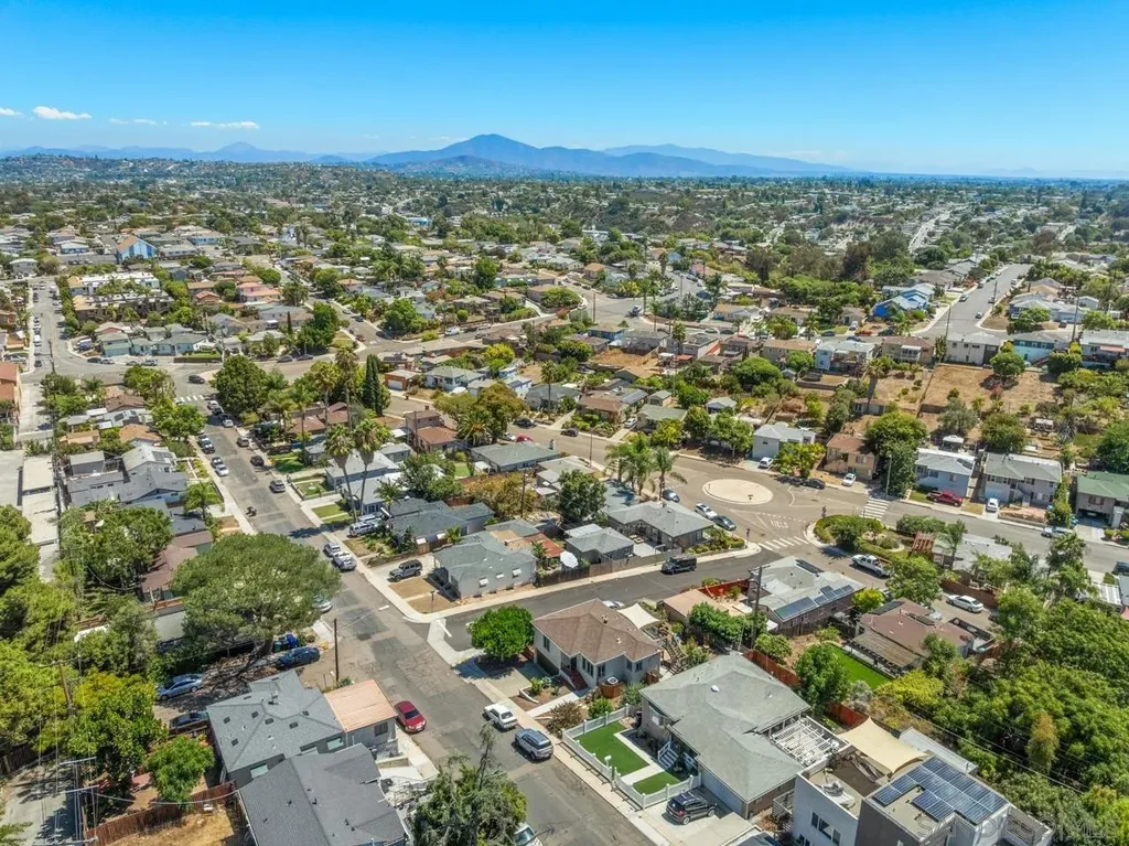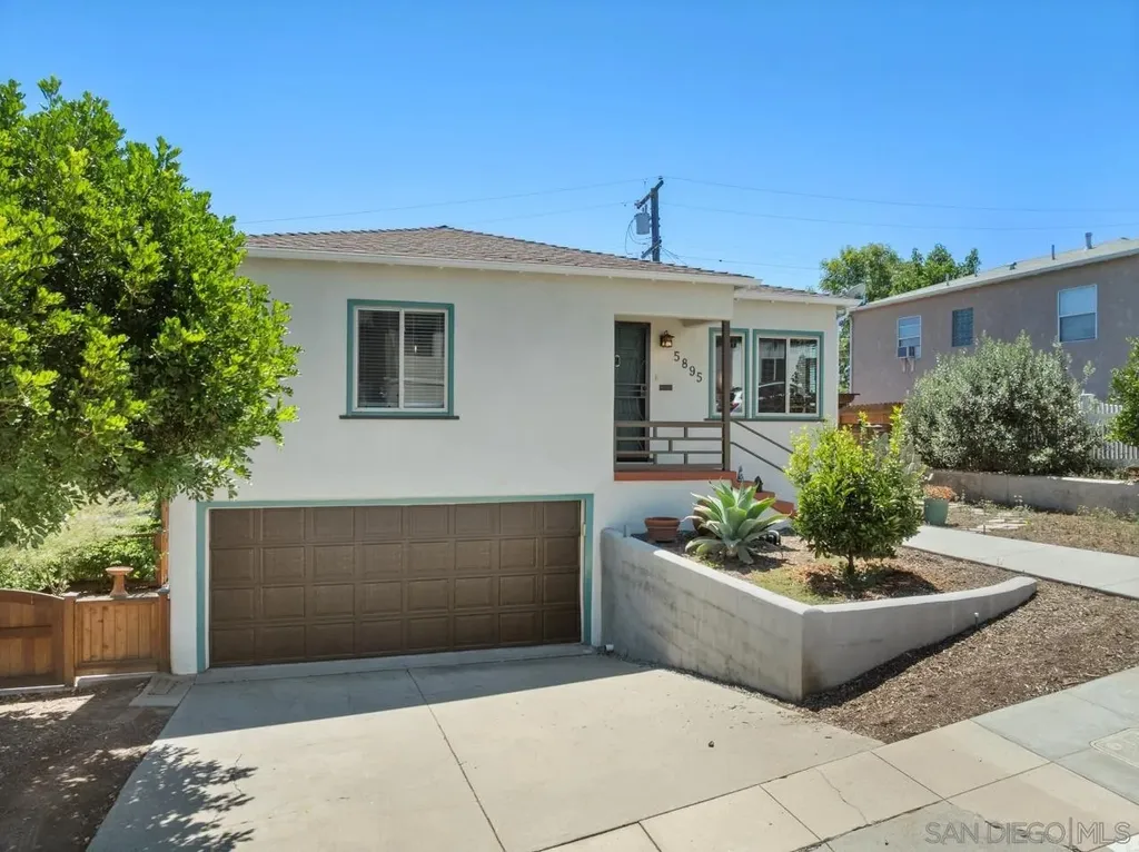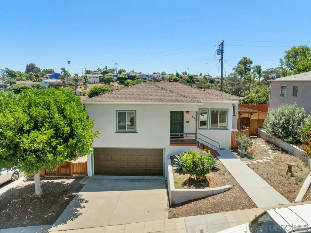 Beautiful Elevated Corner View lot Art Deco Inspired home in El Cerrito (near SDSU), lives larger than square footage, huge deck off dining room with large garden space. Light and bright throughout... Gleaming wood floors, updated kitchen stainless appliances and bath, 2 car garage with 2 off street parking spaces. Laundry inside. Room to build and ADU or 2. Unfinished room under home has outside and garage access (could be finished for Jr ADU). Some original built-ins with Bake-Lite handles, too. Fully fenced with fruit trees, fire pit and room to roam. This will not last....