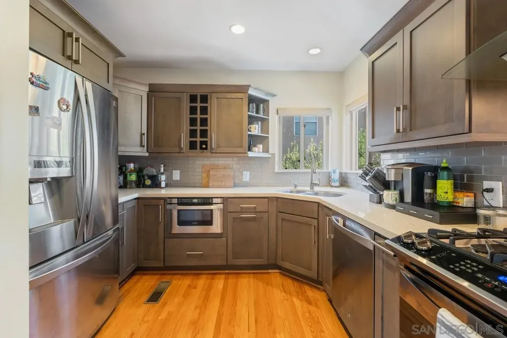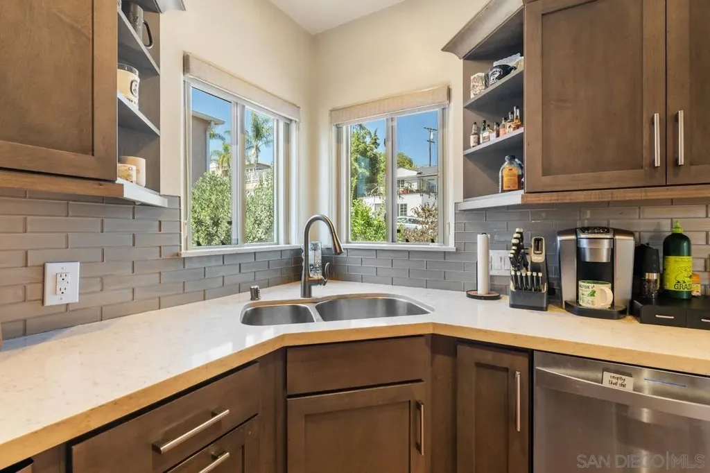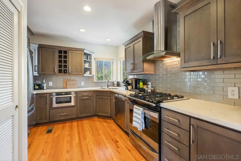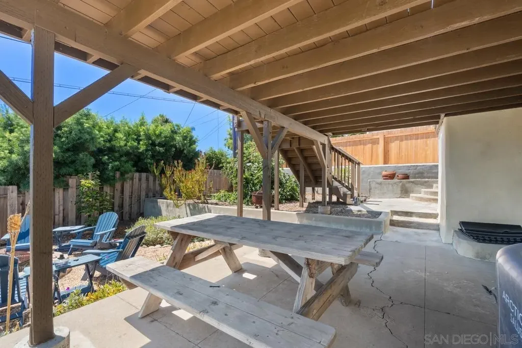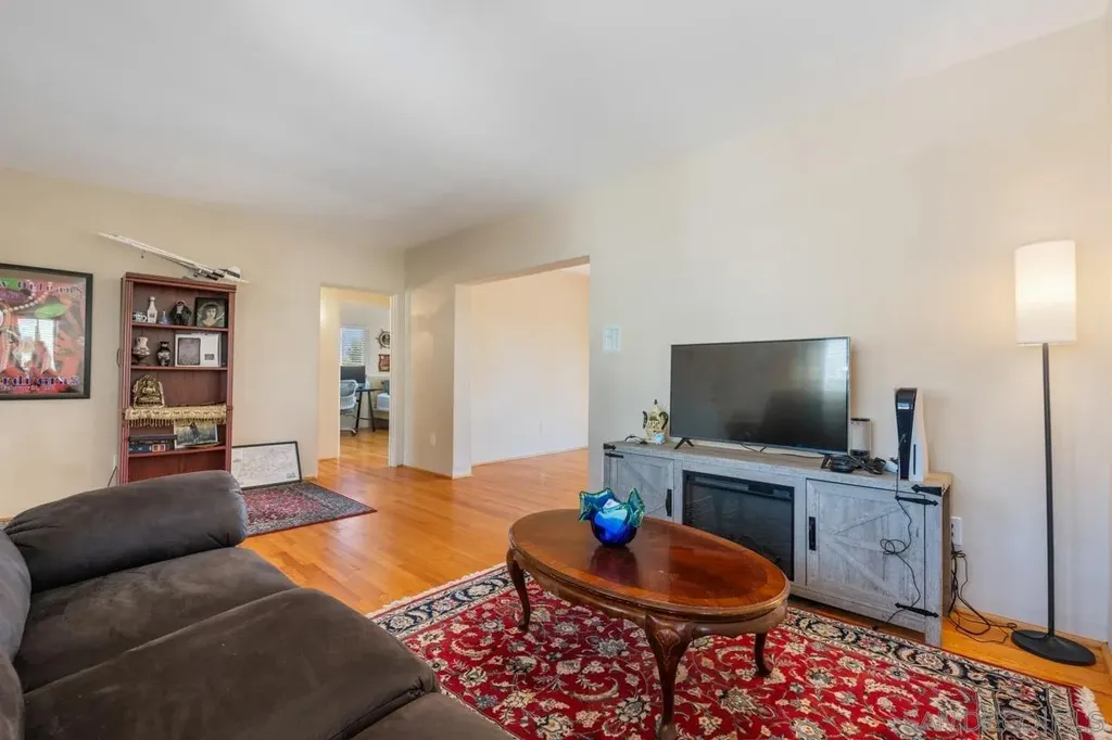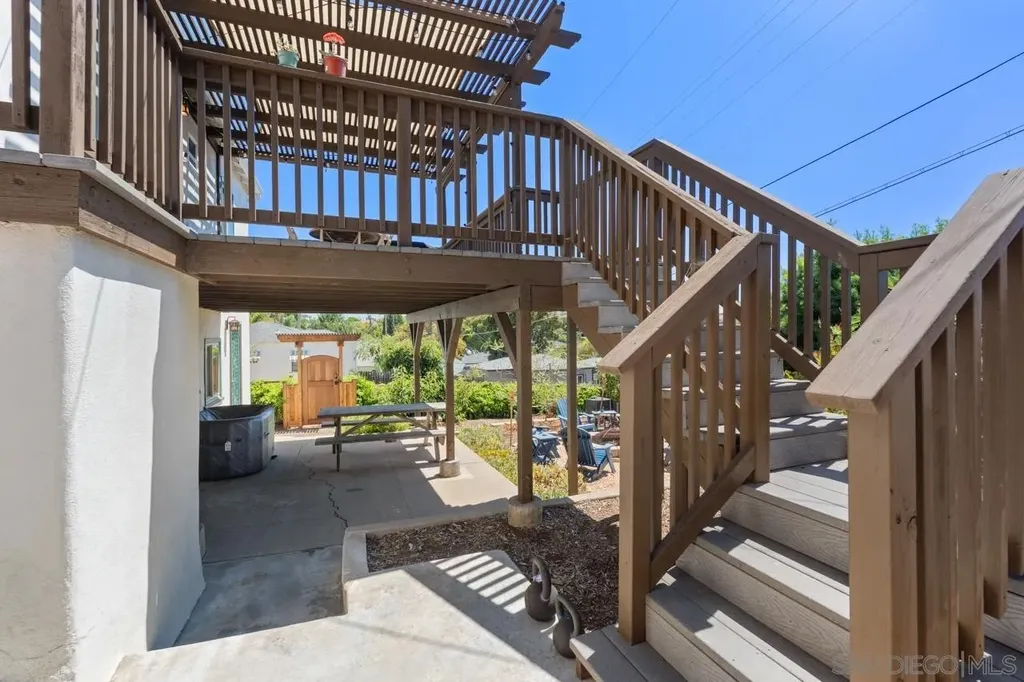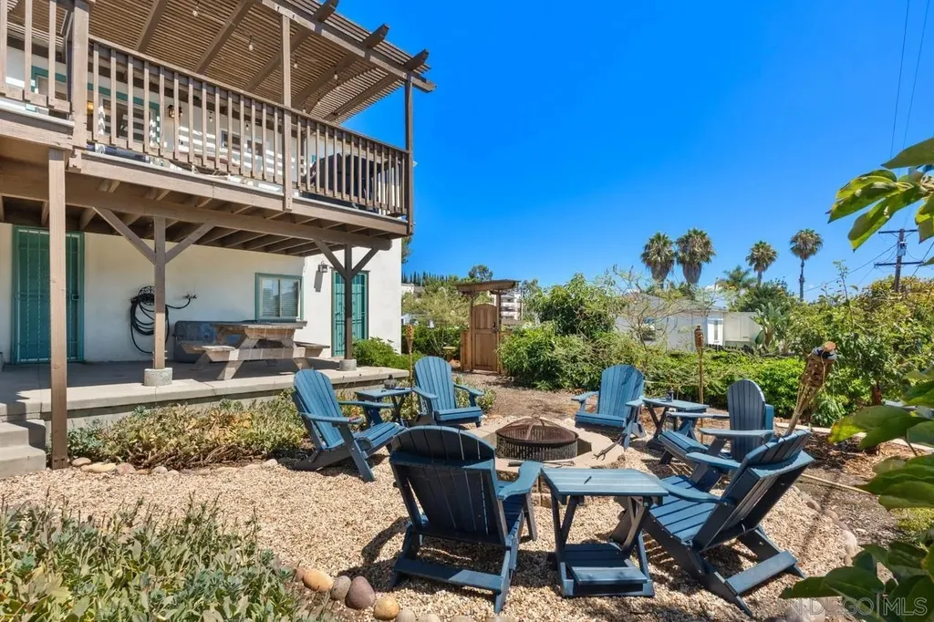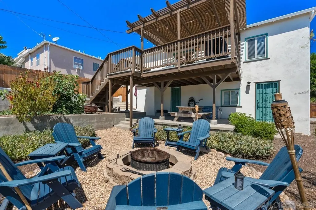 Beautiful Elevated Corner View lot Art Deco Inspired home in El Cerrito (near SDSU), lives larger than square footage, huge deck off dining room with large garden space. Light and bright throughout... Gleaming wood floors, updated kitchen stainless appliances and bath, 2 car garage with 2 off street parking spaces. Laundry inside. Room to build and ADU or 2. Unfinished room under home has outside and garage access (could be finished for Jr ADU). Some original built-ins with Bake-Lite handles, too. Fully fenced with fruit trees, fire pit and room to roam. This will not last....