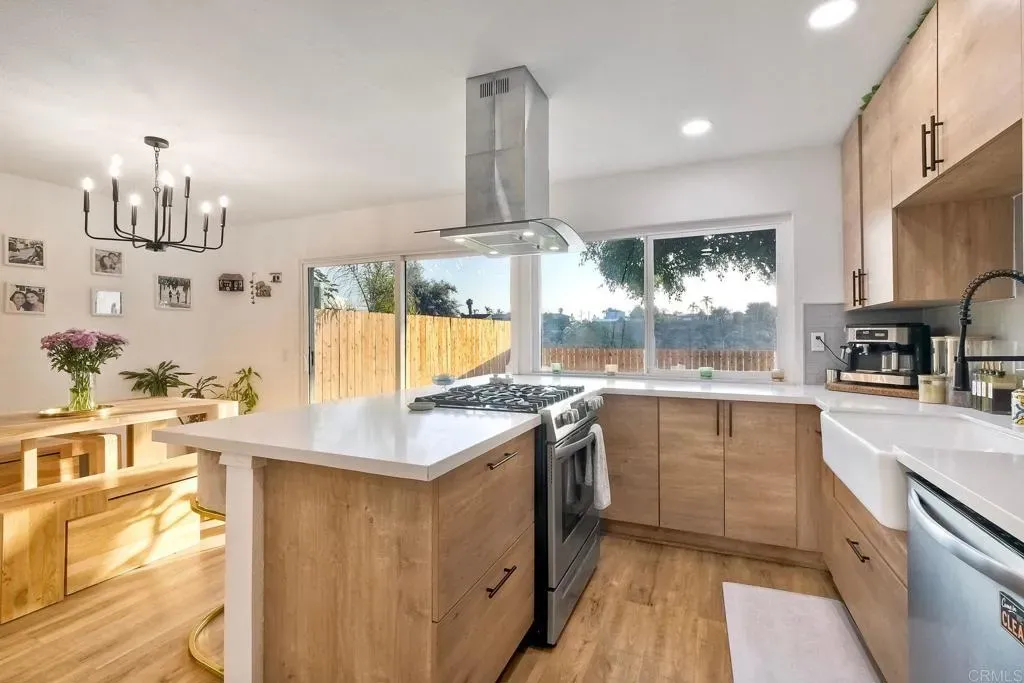 This stunning detached home offers the perfect blend of privacy, comfort, and convenience in a quiet cul-de-sac and centrally located neighborhood. Boasting four spacious bedrooms and two full bathrooms, this thoughtfully upgraded home is truly move-in ready. Step inside to discover an open floor plan filled with natural light, featuring vinyl flooring, bright interior paint, and a recently remodeled kitchen that flows seamlessly into the main living areas. The layout is designed for both everyday living and effortless entertaining. Step outside to your expansive backyard oasis with no neighbors behind you; perfect for hosting guests, relaxing in peace, and soaking in sweeping views and breathtaking sunsets. With its excellent curb appeal and attached two-car garage, this home checks every box. Located just a short drive from San Diego Bay, parks, schools, and major freeways, 5922 Flipper Drive combines lifestyle and location in one unbeatable package.