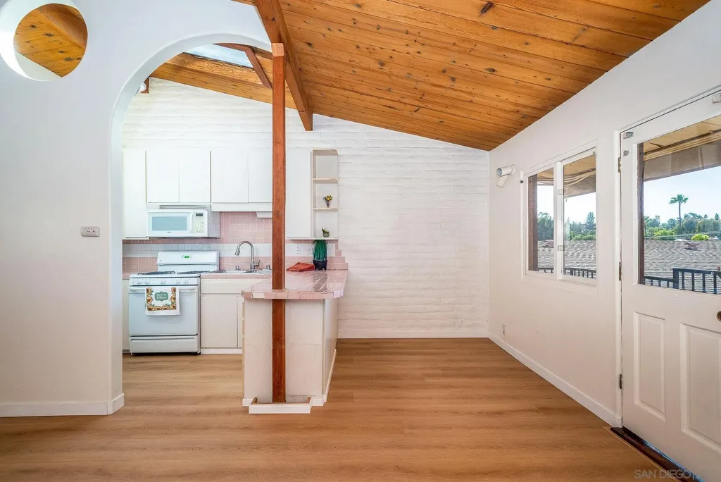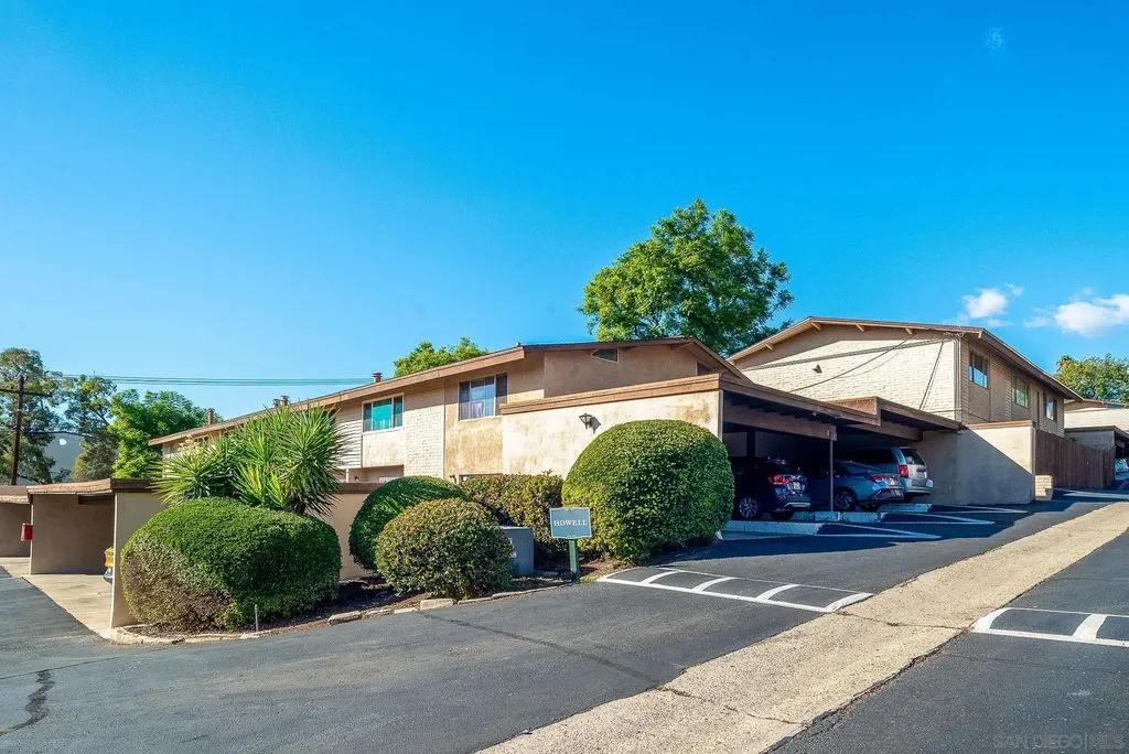 La MESA Probate Sale.. Make your offer today! Highly Desirable Grossmont Village Complex is FHA approved !! This light and bright 1 bedroom end unit comes with a 1 car end unit carport,(L) . The condo screams w/openness, loads of light & east/west facing(+excellent breeze!) upstairs unit. Spacious with wood beamed ceilings, skylights, builtins, wood trimmings throughout. Garden pool and sunset views, all from your private West facing patio over looking the courtyard. Very unique! and Bargain price! A Great beginning home! or investment.. New paint and Vinyl plank flooring, New Furnace, Water heater, Dishwasher and Garbage disposal yet Still room for your dreams touches. Common area has several pools and mature landscaping. Laundry room is in pool area very close by.