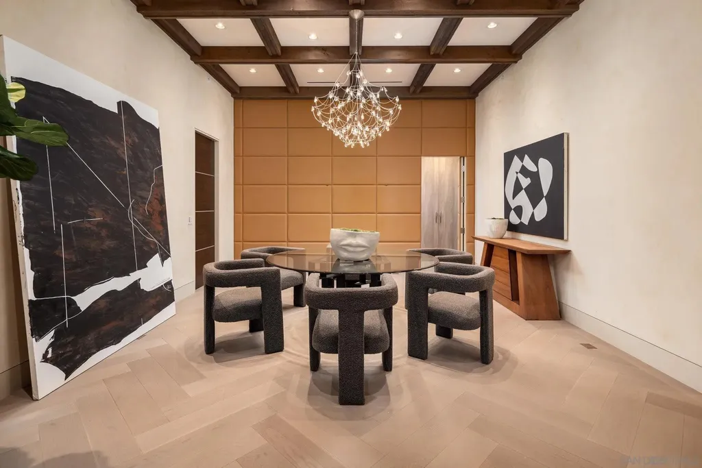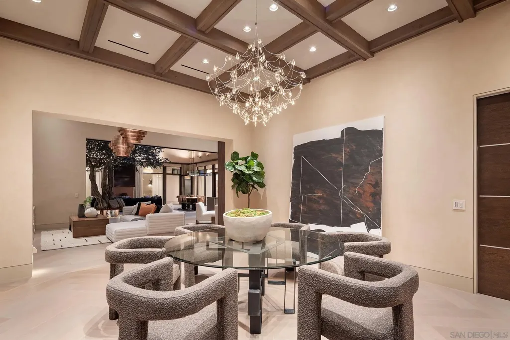 Designed by renowned local architect Trip Bennett, this gated one-acre La Jolla estate masterfully blends harmonious architecture with cutting-edge sustainability. Enter through a striking courtyard featuring a fully retractable roof that brings the outdoors in. This home is LEED Gold Certified and equipped for off-grid living, showcasing more than 8,000 square feet of intentional home design, single-level layout, fully ADA accessible, private guest suite with separate entrance, top-tier appliances, smart home technology, Italian Lapitec natural stone countertops, fire-hardened exterior, locally sourced materials, a four-car garage, temperature-controlled wine storage for nearly 700 bottles, and an expansive flat lawn. For complete energy resilience, the home includes a dual-fuel generator, a 1,000-gallon propane tank, solar hot water supported by geothermal heating, and an array of 80 owned solar panels. A reverse osmosis water filtration system and independently climate-controlled zones ensure personalized comfort and efficiency throughout. This is sustainable luxury at its finest.