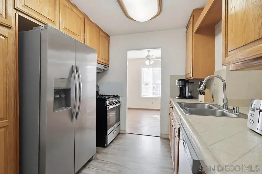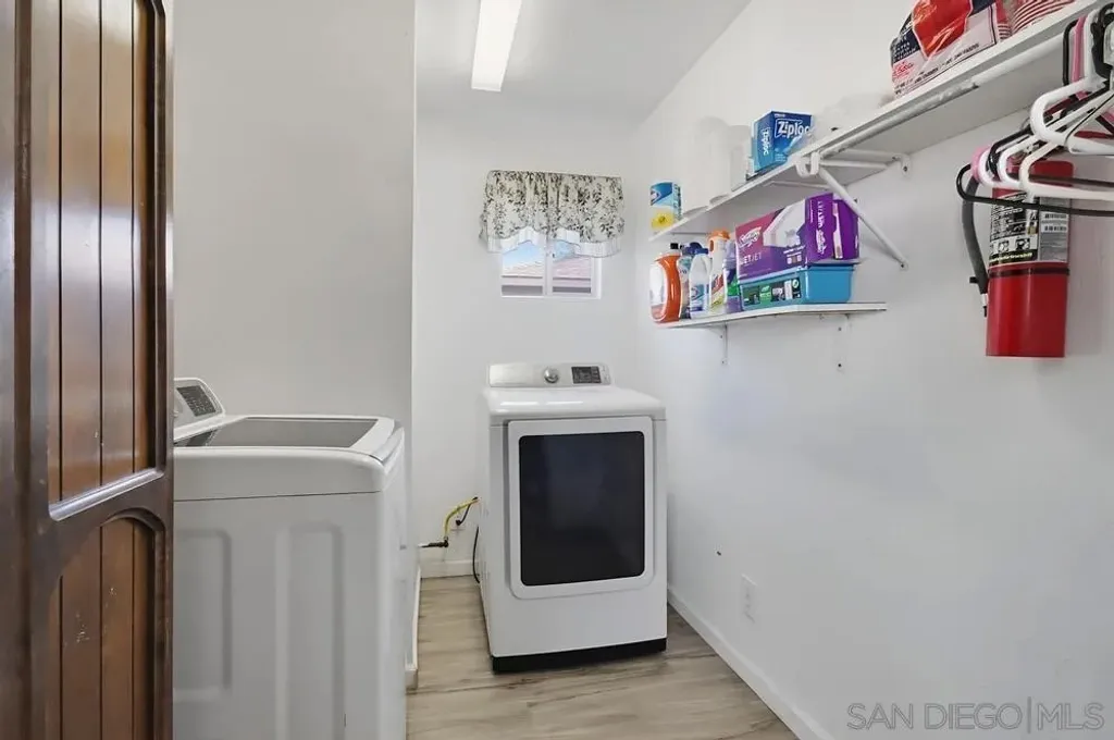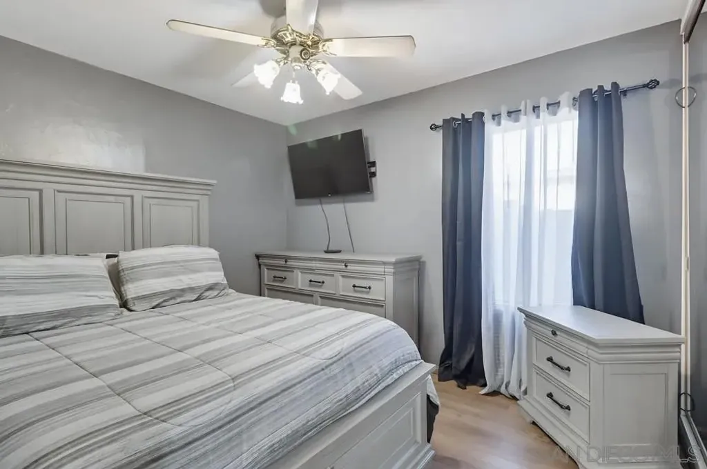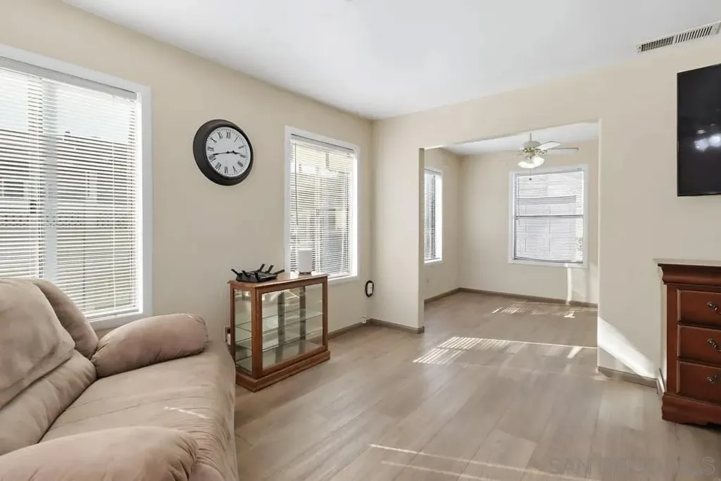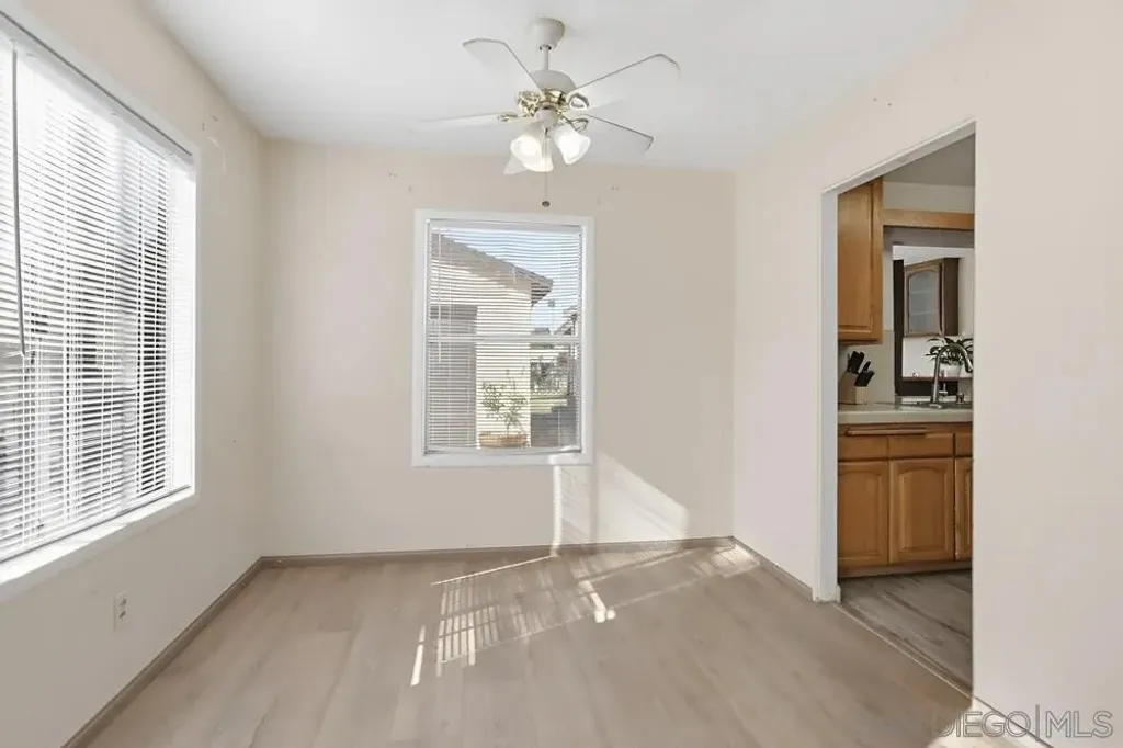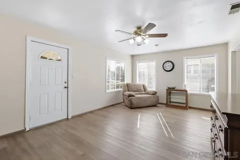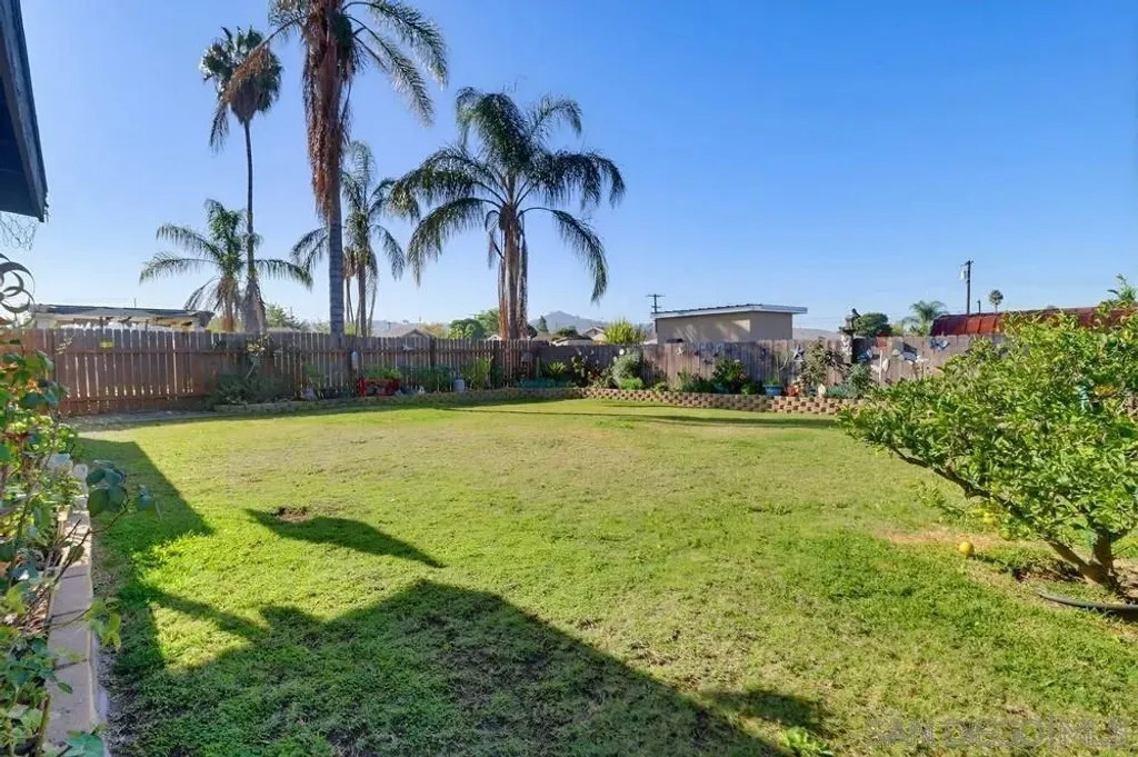Welcome to this single-story 2 bed/2 bath home with a spacious family room, located in the heart of El Cajon. Filled with natural light, this home features updated laminate flooring throughout, newer bathrooms, recessed lighting, new central heating and AC, a new water heater, and a separate indoor laundry room. Large family room with a wet bar and a fireplace, ideal for entertaining or relaxing. A detached garage and a long driveway perfect for additional parking including room for an RV. Built in shed. Step outside to a beautiful backyard with a covered patio and a flower bed, great for gardening, relaxing, or hosting outdoor gatherings. Carefully maintained and ready for you, this home combines comfort, charm, and opportunity - don't miss your chance to make it yours!