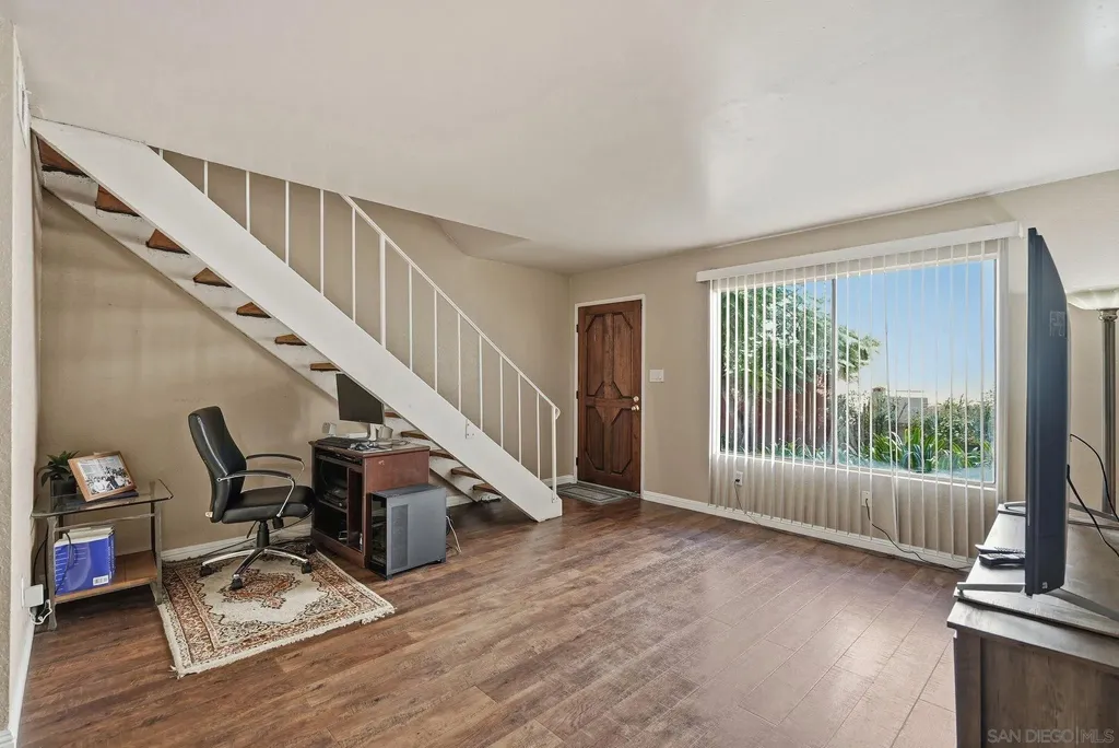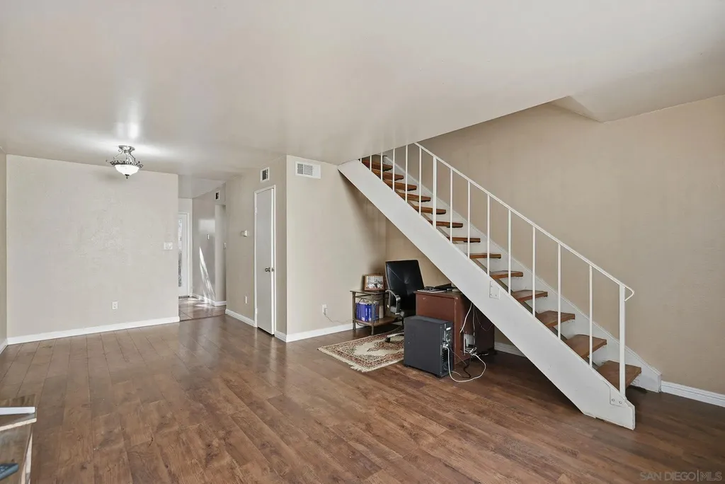 Corner-unit townhome in a gated community with the largest private yard, private balcony, and upgrades throughout! This 2-bed, 1.5-bath home offers an open floor plan, bright kitchen, and in-unit laundry. The spacious yard is perfect for entertaining, pets, or relaxing - a rare find under $500K! Enjoy low HOA fees, added security, and a prime El Cajon location near parks, shopping, dining, and freeway access.