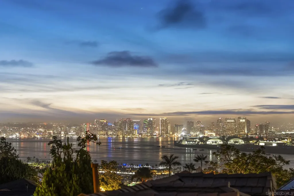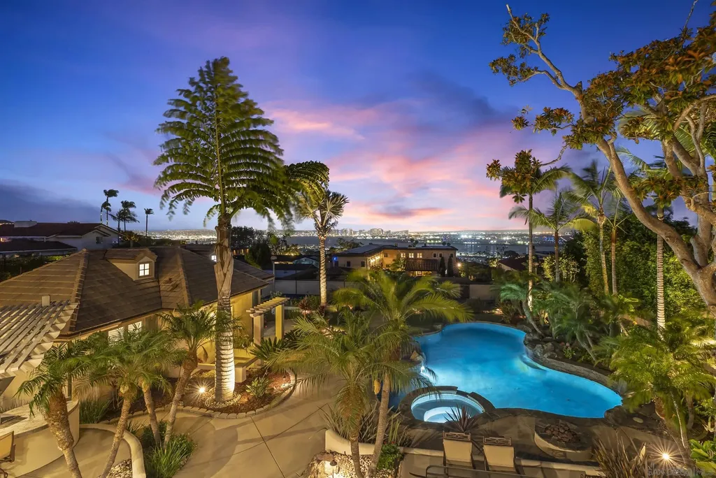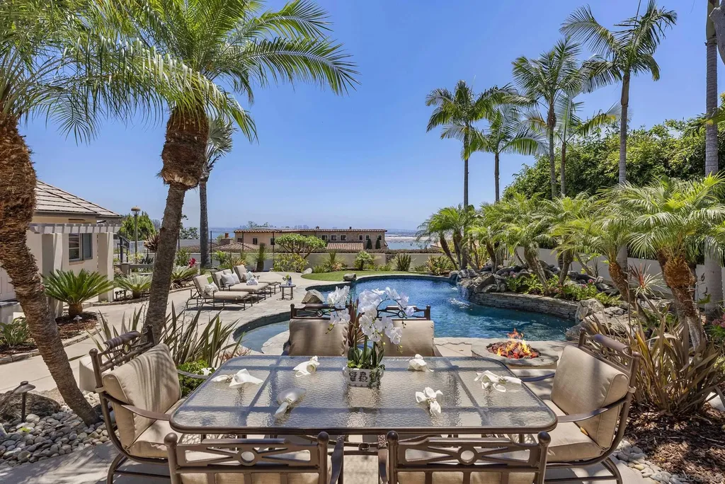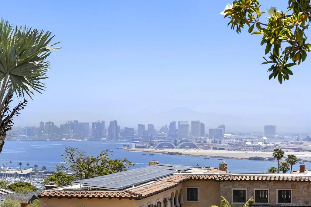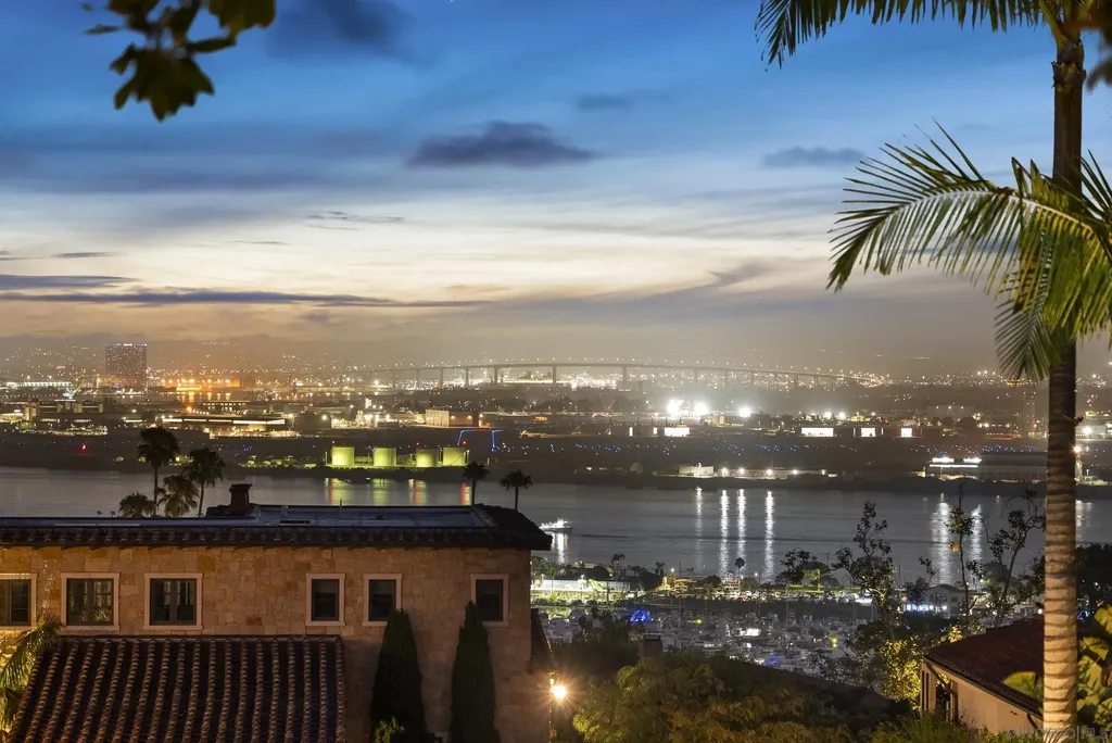 Just Reduced! Discover coastal luxury at 617 Gage Drive, an exceptional home in Point Loma's coveted La Playa and Wooded Area. Set on a rare -acre lot, this 4-bedroom, 4.5-bath residence with a detached guest house offers breathtaking south-facing views of Coronado, San Diego Bay, and the downtown skyline from nearly every room. Each bedroom includes an en-suite bath and walk-in closet, while the open, light-filled layout features original hardwood floors and a modern chef's kitchen with stainless-steel appliances and custom finishes. Two upper-level balconies invite seamless indoor-outdoor living and panoramic views. Step outside to a resort-style backyard oasis with a sparkling pool and waterfall, spa, outdoor fireplace, basketball court, putting green, and multiple areas for dining and lounging - perfect for entertaining or relaxing in the sun. The home also offers solar panels, a Tesla charger, and a 3-car garage. Located on a quiet, tree-lined street just minutes from Liberty Station, Sunset Cliffs, the bay, and top-rated schools, this property combines timeless elegance with modern comfort. With its protected view corridor and premier location, 617 Gage Drive presents a rare opportunity to own a truly exceptional piece of coastal San Diego real estate. Elegant. Private. Distinctly La Playa.