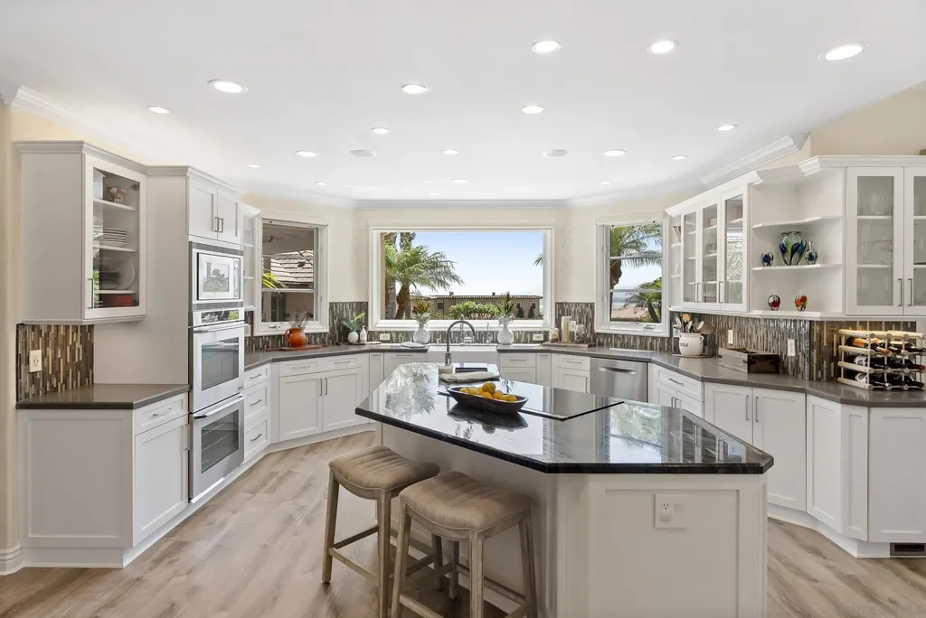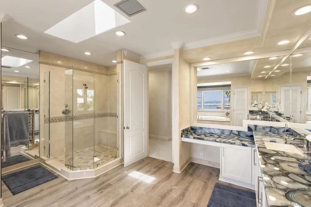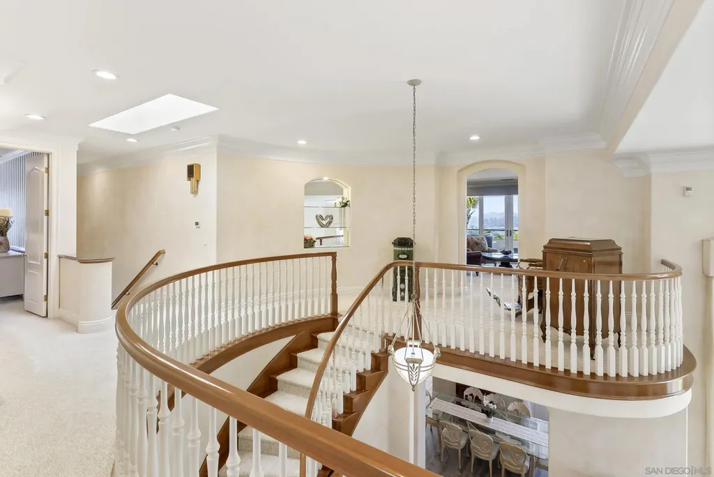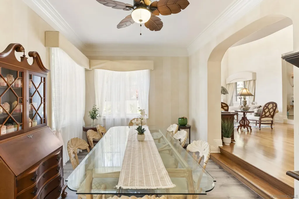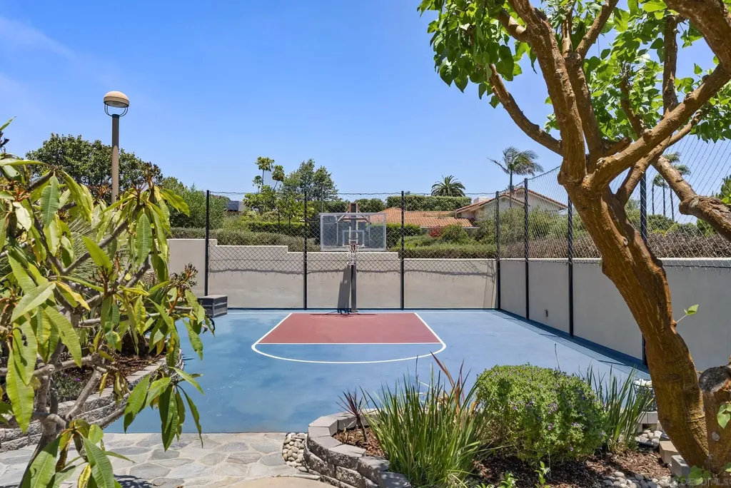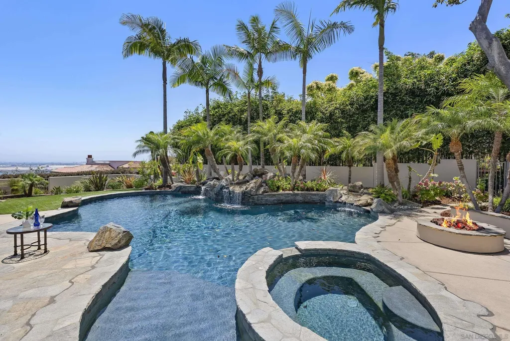 Just Reduced! Discover coastal luxury at 617 Gage Drive, an exceptional home in Point Loma's coveted La Playa and Wooded Area. Set on a rare -acre lot, this 4-bedroom, 4.5-bath residence with a detached guest house offers breathtaking south-facing views of Coronado, San Diego Bay, and the downtown skyline from nearly every room. Each bedroom includes an en-suite bath and walk-in closet, while the open, light-filled layout features original hardwood floors and a modern chef's kitchen with stainless-steel appliances and custom finishes. Two upper-level balconies invite seamless indoor-outdoor living and panoramic views. Step outside to a resort-style backyard oasis with a sparkling pool and waterfall, spa, outdoor fireplace, basketball court, putting green, and multiple areas for dining and lounging - perfect for entertaining or relaxing in the sun. The home also offers solar panels, a Tesla charger, and a 3-car garage. Located on a quiet, tree-lined street just minutes from Liberty Station, Sunset Cliffs, the bay, and top-rated schools, this property combines timeless elegance with modern comfort. With its protected view corridor and premier location, 617 Gage Drive presents a rare opportunity to own a truly exceptional piece of coastal San Diego real estate. Elegant. Private. Distinctly La Playa.