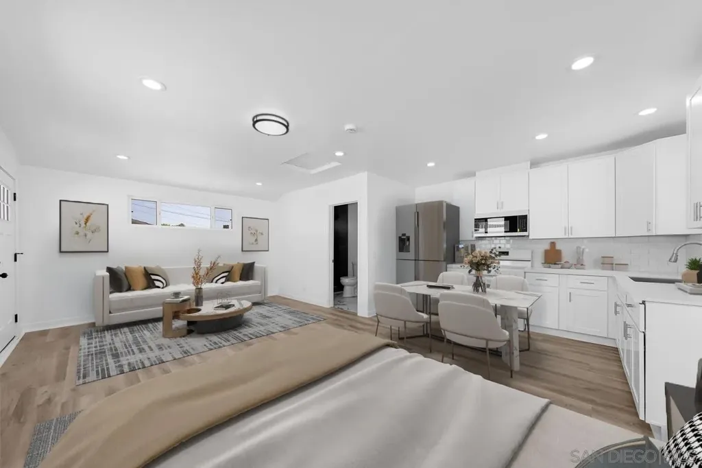 3 Homes in 1 on a 7,400 sq.ft. corner lot near multitudes of convenience! Options, options, options...from investment perspectives such as living in one and renting the others or live in one, work in one, rent one, or if you are needing the perfect solution to a multi-generational living situation, this property is PERFECT! This house has a solution for everyone! The entire property was COMPLETELY remodeled with permits in 2025, Each unit has separate entrances, separate addresses & separate electrical meters. Main house features 2 bedrooms/2bathrooms with an ensuite primary, formal dining room and oversized living area with beautiful luxury vinyl plank wood floors, custom designed kitchens and bathrooms, newer appliances, full size laundry area, split wall A/C & Heat, private backyard area with turf, wood deck and it's own storage shed. ADU is approximately 460esf. with A/C & Heat, custom designed kitchen & bathroom with walk-in shower and private yard area. JADU is approximately 260esf. with A/C & Heat, custom designed Kitchen & bathroom, shower w/tub and private yard with turf and separate storage unit. OVER 8-10 potential parking spaces, RV parking or Boat storage. Fully fenced with the exception of the driveway entrance and exit. Within minutes, you can explore the Chula Vista Mall, enjoy dining at neighborhood restaurants, or unwind at one of the area's local breweries. Perfect for those who value accessibility and community, this home is surrounded by shopping, entertainment, and everyday amenities.