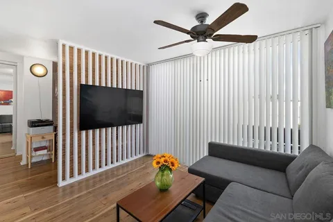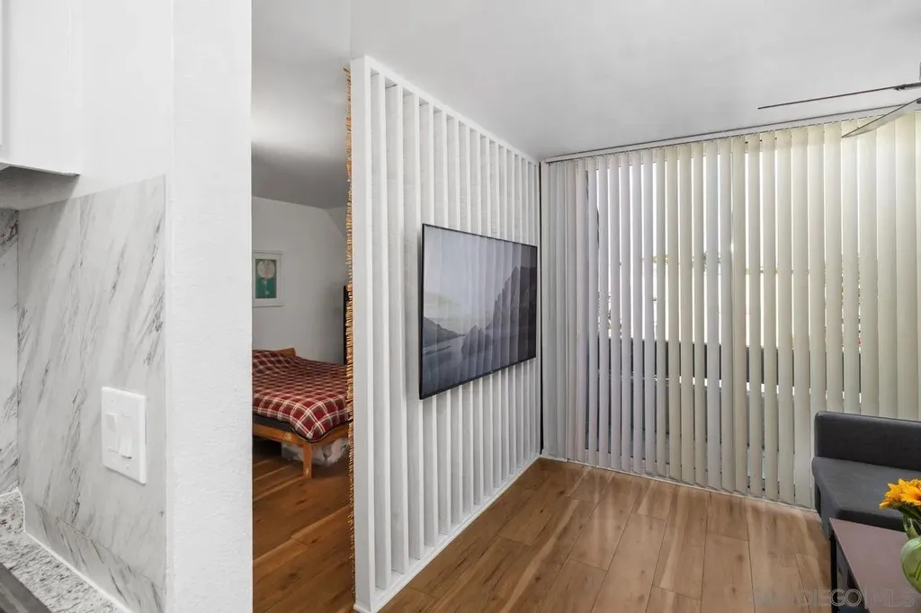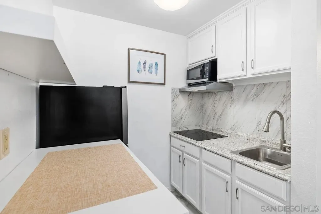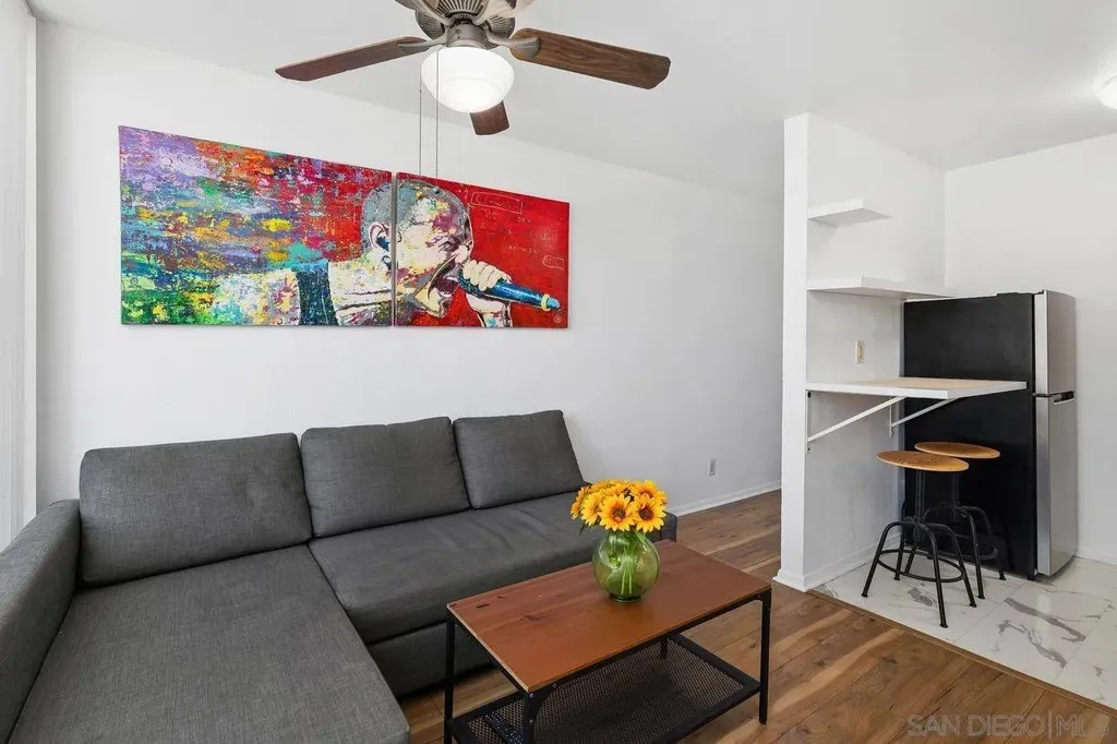 Located in the heart of Clairemont, this light and bright Studio apartment is just minutes from the beach and offers easy access to freeways, shopping, and dining. Situated on the top floor of the gated Blossom Walk community, this well-kept unit features an open living space, newer flooring, and dual pane slider door. The living room opens to a private balcony, perfect for relaxing in the sun. The galley kitchen features a built-in smooth top stove and microwave and small sitting area/workspace. Blossom Walk offers great amenities, including two pools, a fitness center, and community laundry. With schools, shops, and the beach nearby, this condo is the perfect spot to enjoy both convenience and comfort.