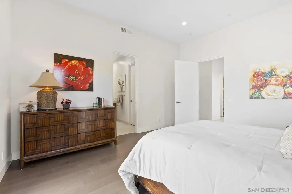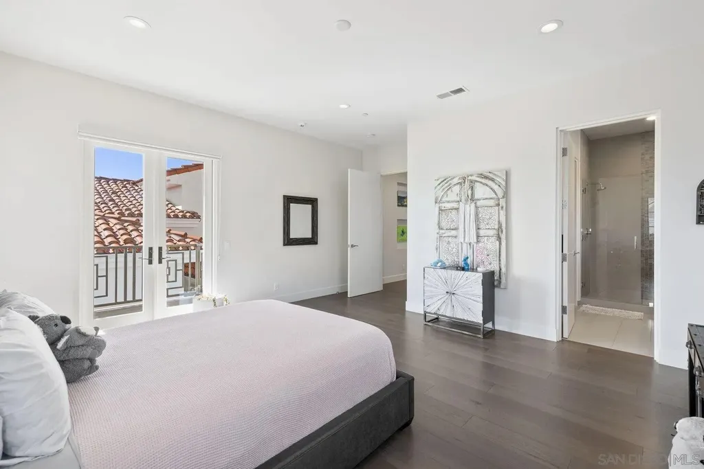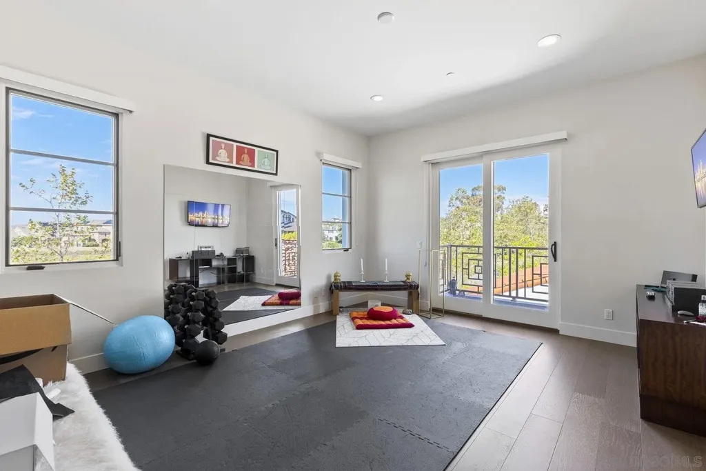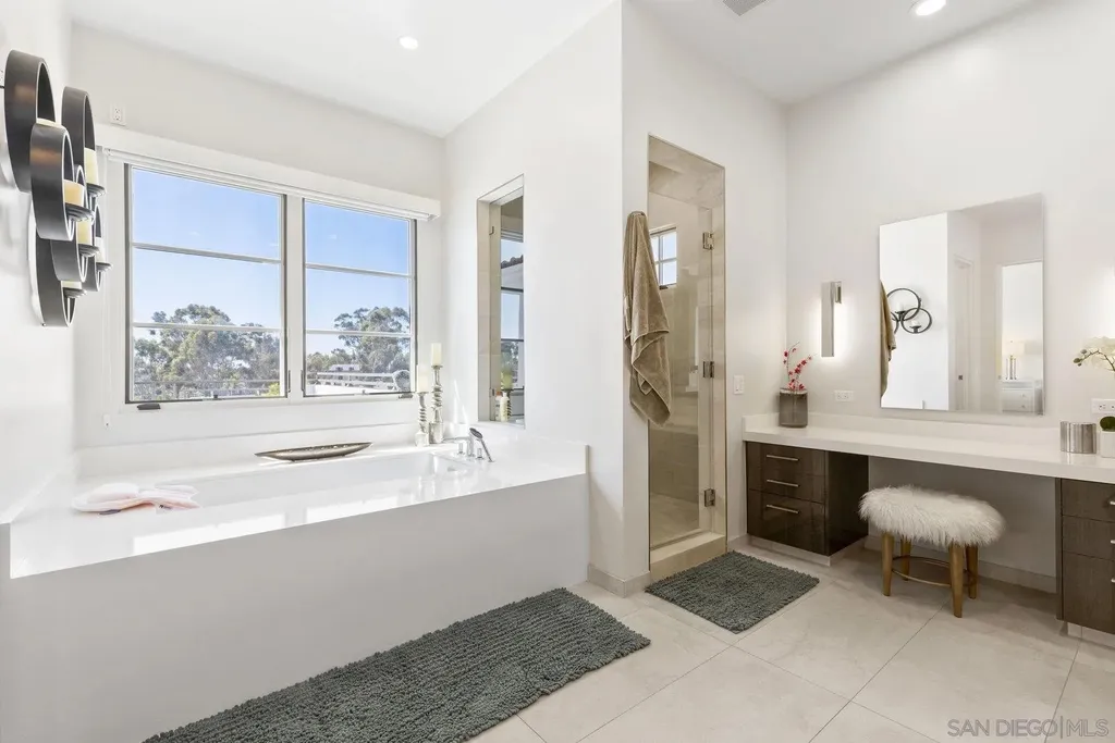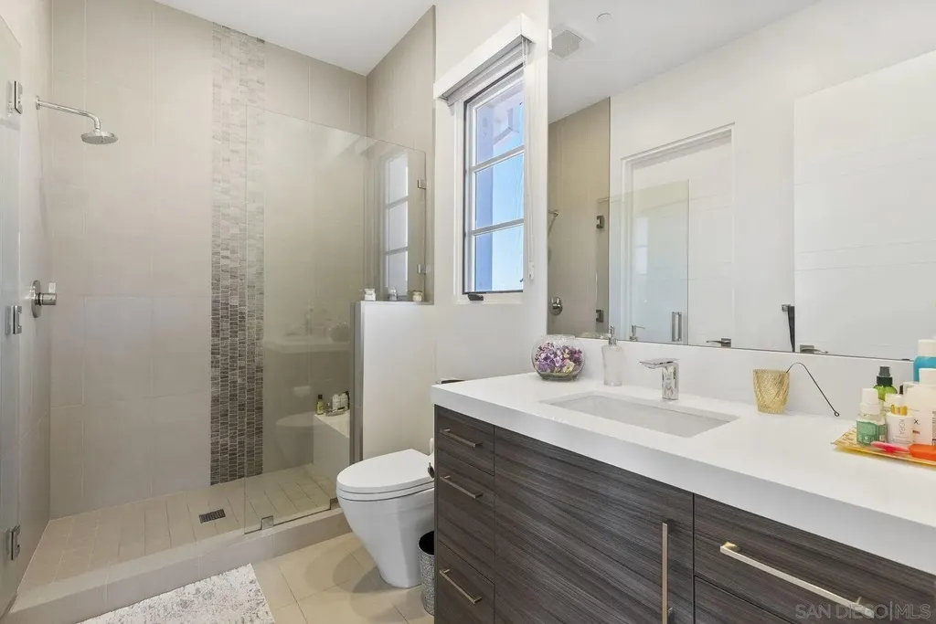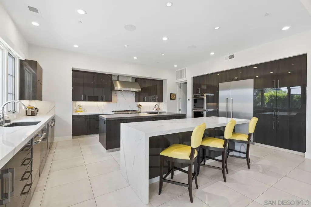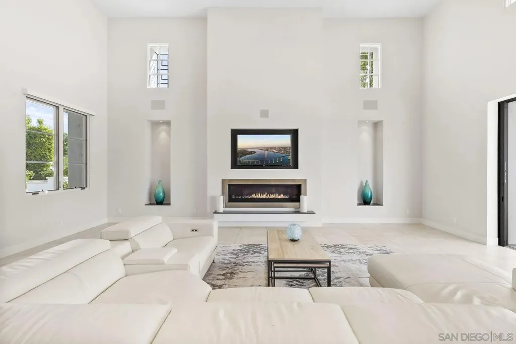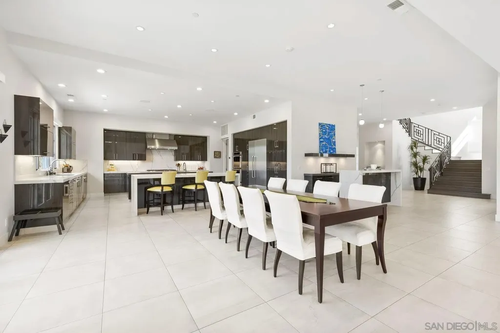 This spectacular Spanish Contemporary estate offers 7,016 SF of modern luxury on nearly an acre in the gated enclave of The Ridge Estates in Del Mar Mesa. Thoughtfully designed with extraordinary attention to detail, the home features 5 spacious ensuite bedrooms plus an office with full bath (optional 6th bedroom). A seamless blend of modern design and eco-conscious materials creates a sophisticated yet comfortable retreat. Floor-to-ceiling cantina doors open to true indoor-outdoor living: a covered loggia, sparkling pool, expansive turf play area, outdoor kitchen, and privacy hedges. The chef's kitchen boasts Thermador appliances, dual islands, and a walk-in pantry. The primary suite offers a spa-inspired bathroom, elegant custom closet system, sleek fireplace, and private deck with 180 panoramic northern and westerly views. Additional highlights include rooftop solar, a 4-car garage with epoxy floors and abundant storage, soaring ceilings, oversized hallways, and designer finishes throughout. Nestled among Del Mar Mesa's rolling landscapes yet just minutes from shopping, dining, and freeway access, this rare estate combines elegance, privacy, and breathtaking views - defining luxury living in North County San Diego.
